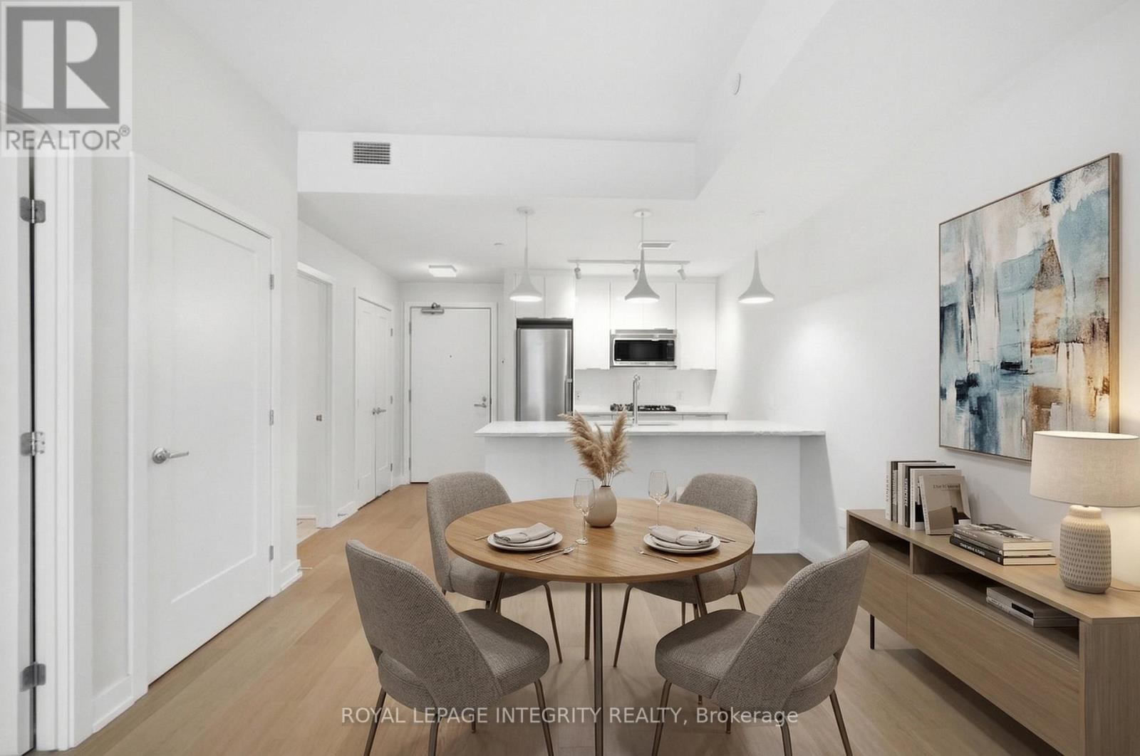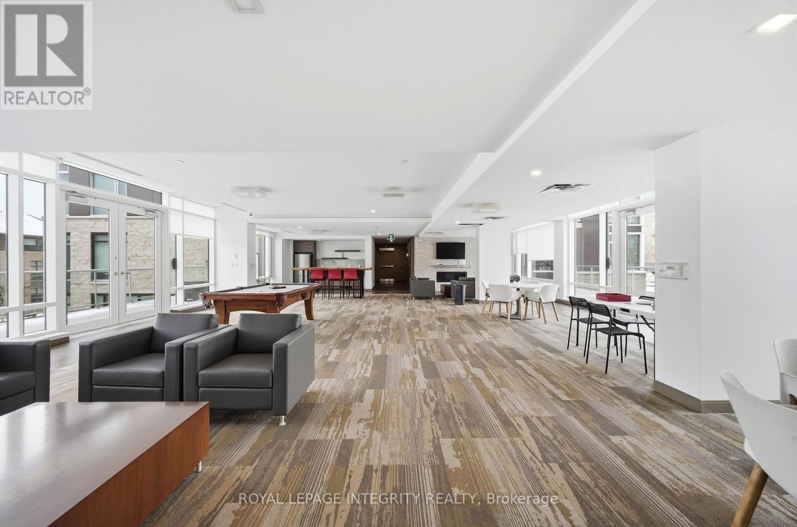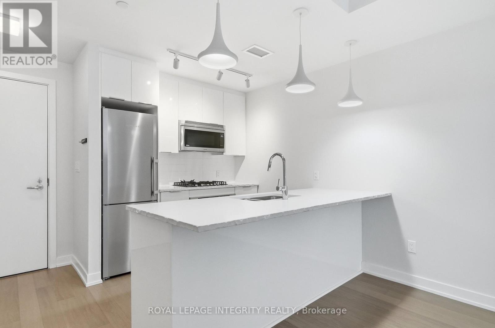 Welcome to 530 De Mazenod, Unit 612, in sought-after The River Terraces at Greystone Village, one of Old Ottawa East's premier waterfront communities! Perfectly positioned between the Rideau Canal and Rideau River, and just steps to walking and biking paths, shops, public transit, restaurants, and everyday amenities, this location offers an exceptional lifestyle. This lightly lived-in unit showcases a modern, well-designed layout that balances style, comfort, and functionality. Upon entry, you're welcomed into a bright, contemporary space featuring hardwood flooring and quality finishes throughout. The kitchen is both sleek and practical, featuring white cabinetry, stainless steel appliances including a built-in gas range, granite countertops with a live edge, white subway tile backsplash and a large island with seating seamlessly open to the dining and living areas, filled with natural light from the patio doors leading to your private balcony complete with a natural gas BBQ. The bedroom is generously sized with a large closet and window, creating an airy retreat. The bathroom offers a vanity with ample storage and a tub/shower combination finished with clean white tile. Enjoy the added convenience of in-unit laundry, along with one underground parking space and a storage locker. Residents benefit from a great range of amenities, including a fitness centre, pet wash, car wash, lounge areas, party room, meeting room with kitchen, outdoor patio, billiards table, library, and yoga studio-extending your living space well beyond your unit. Surrounded by green space and scenic pathways along the Rideau River and Canal, this location blends nature with urban convenience. Immediate possession available! (id:64974)