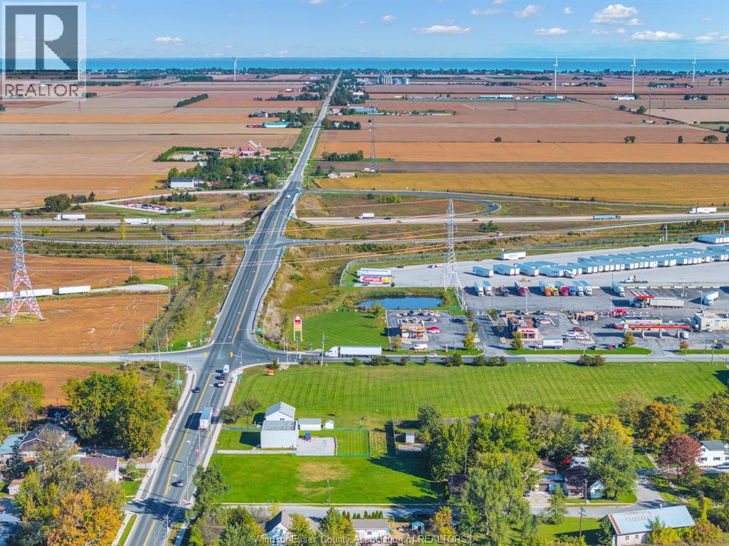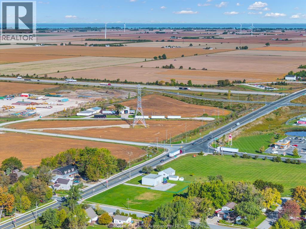 Prime commercial development opportunity located directly off Highway 401 Exit 48 (Hwy 77) in Comber, offering exceptional visibility and high daily traffic exposure. This corner lot spans approximately 30,881 sq. ft. and is zoned C1 commercial, allowing for a wide variety of permitted uses including restaurants, drive-through establishments, auto sales and service, financial institutions, retail services, pharmacies, fitness centres, greenhouses and other commercial developments. Surrounded by established and growing businesses such as Tim Hortons, A&W, Esso Truck Stop and Petro Gas Bar, this property benefits from strong commercial traffic and regional accessibility. Strategically positioned 30 minutes to Windsor or Chatham and approximately 20 minutes to Leamington, making it an ideal location for businesses seeking highway exposure and convenient regional access. Servicing available at the lot line. Buyer to verify zoning, services and development potential. HST applicable. (id:64974)