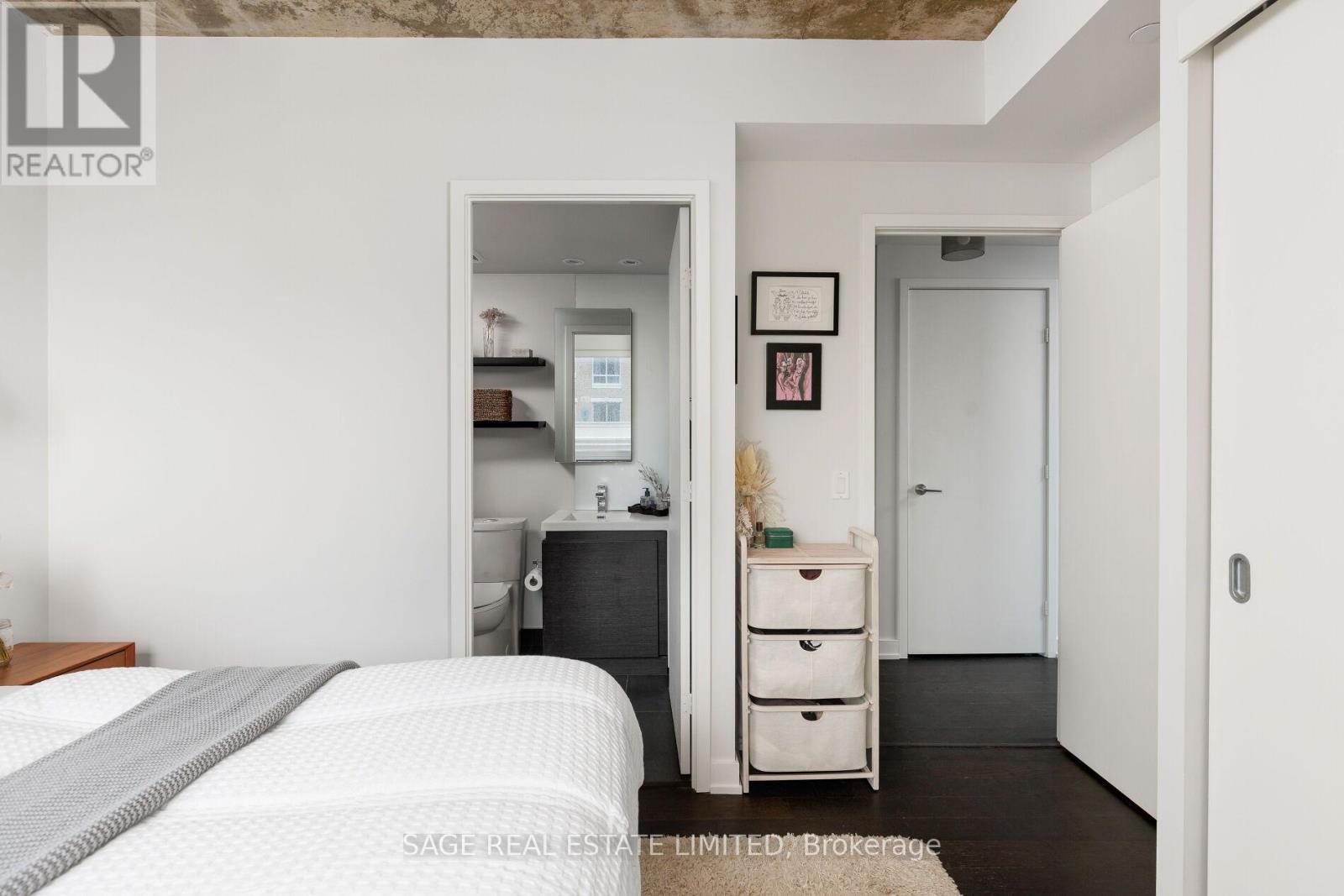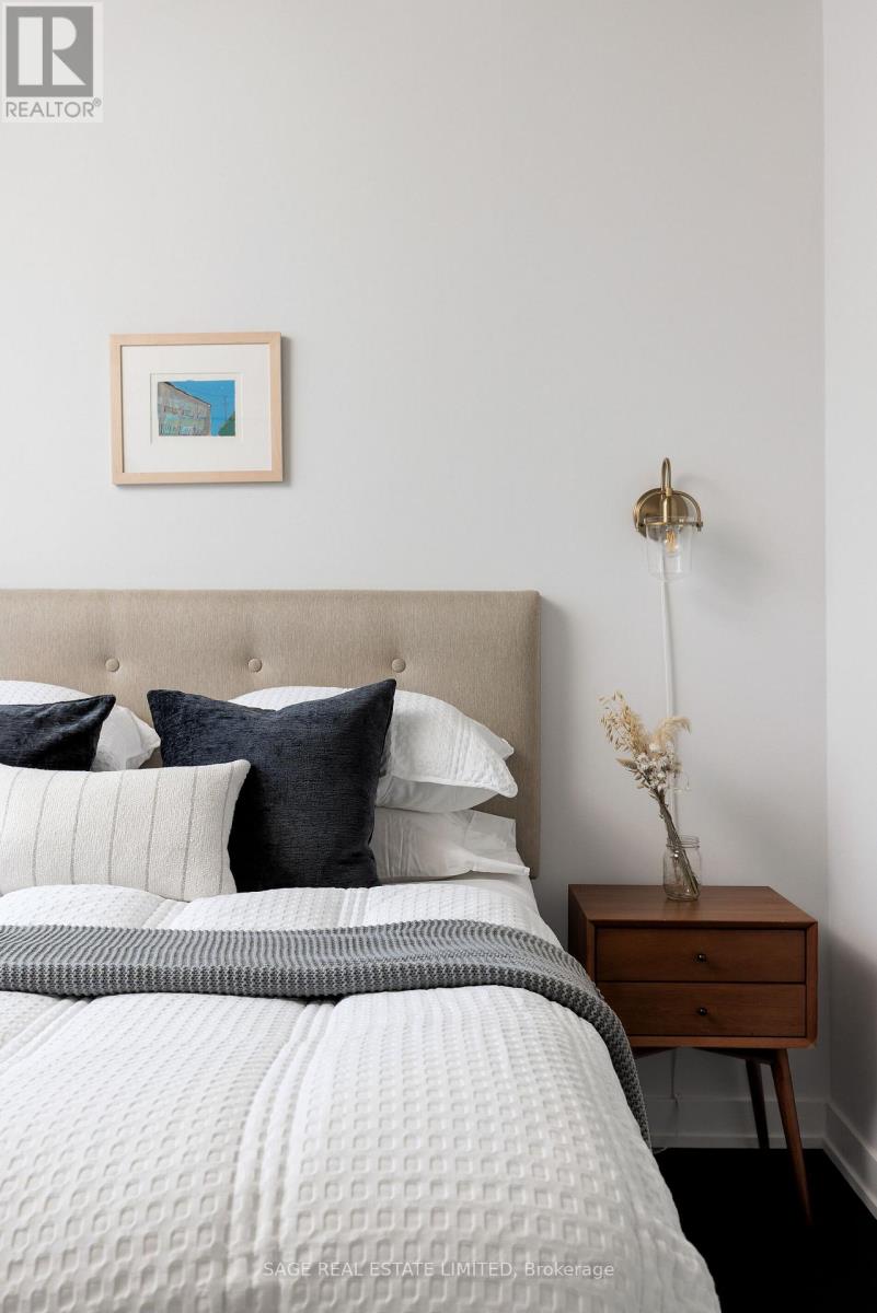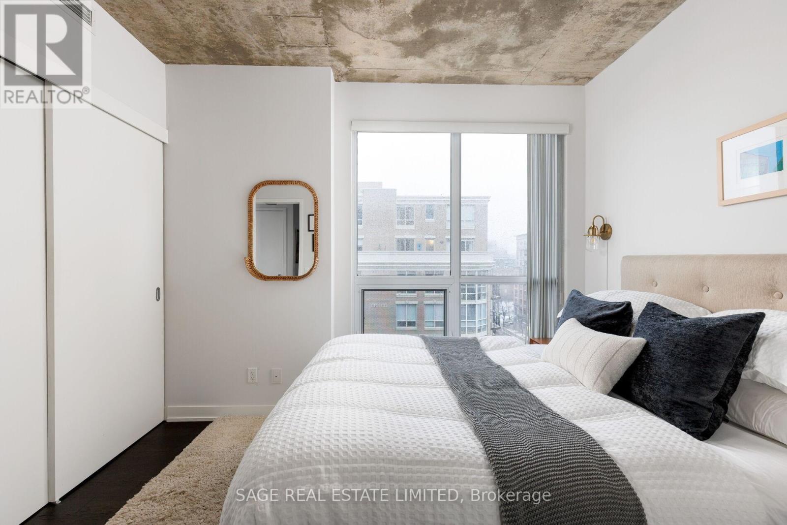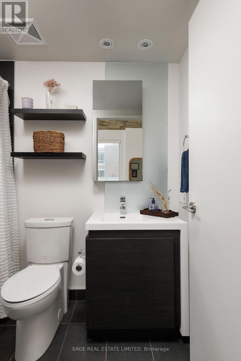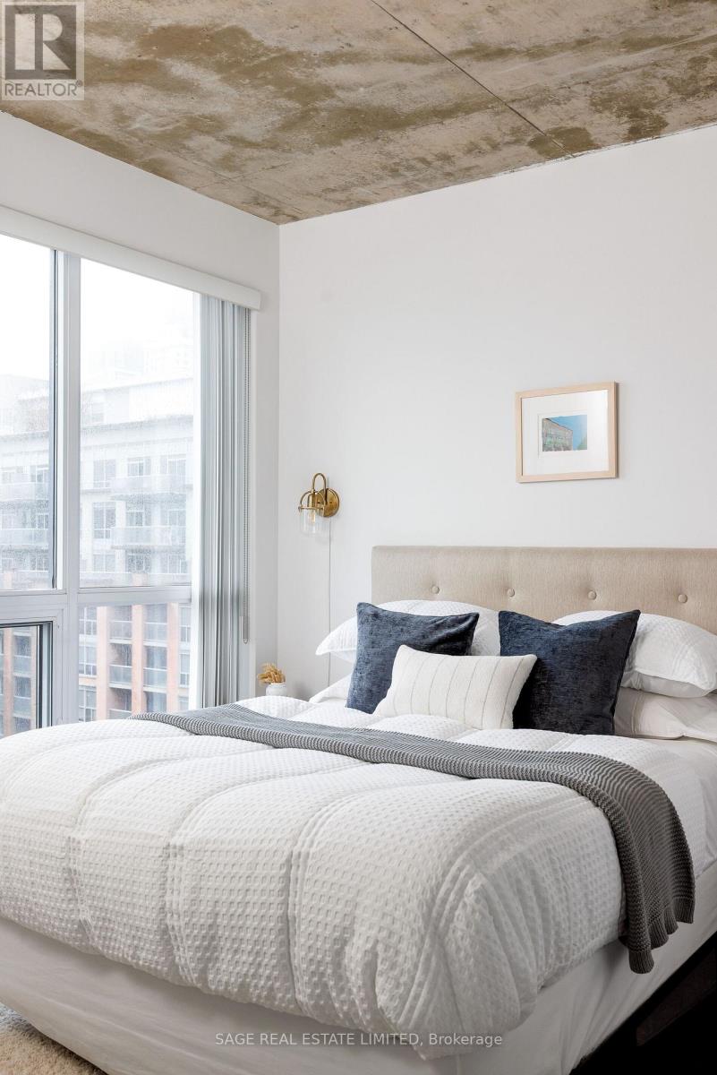 Bright. Airy. Effortlessly cool. This north east corner 2 bedroom, 2 bathroom suite blends modern design with a distinct loft aesthetic and exceptional everyday livability. Featuring 9 foot ceilings, exposed concrete, and expansive windows, the space is flooded with natural light and framed by leafy residential views over Queen West, lush and green in the summer, with a subtle skyline in the distance. The open-concept layout is anchored by a sleek kitchen with an island and seating, perfect for morning coffee, casual dinners, or hosting friends before a night out. Thoughtfully designed for everyday ease, the suite offers a functional split-bedroom layout and upgraded closet built-ins that add both style and smart storage. Set within DNA3, one of the area's most desirable and well-managed buildings, residents enjoy 24 hour concierge and an impressive suite of amenities including a fully equipped gym, yoga studio, theatre room, party room, and beautifully designed outdoor lounge areas. Pet friendly and community oriented, the building has become a standout choice for those who value design, convenience, and connection. Located directly on the King streetcar line, access to the Financial and Entertainment Districts is effortless, while Queen West, Ossington, Trinity Bellwoods, Stanley Park, and Garrison Common are all within walking distance. A grocery store right in the building adds everyday convenience to an already exceptional lifestyle. With a 96 Walk Score and 91 Transit Score, this is urban living without compromise. For those who want downtown energy, green space for weekend coffee walks, and a refined space to come home to, this is the one. (id:64974)