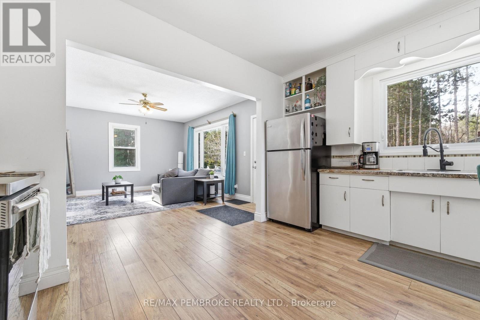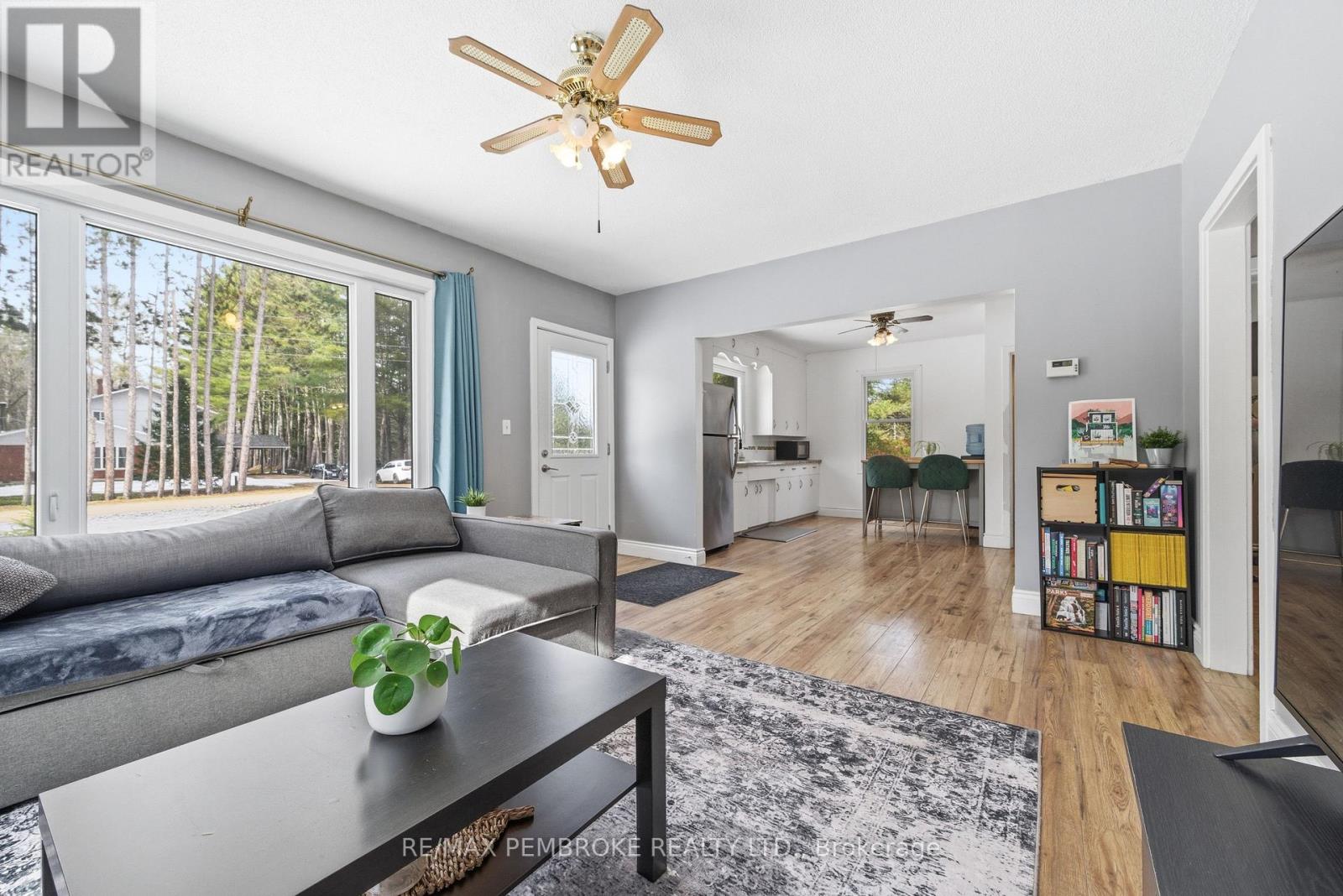 Discover the privacy and space you've been looking for-just 5 minutes to Petawawa and 10 minutes to Pembroke. This charming 2 bedroom, 1 bathroom home sits on a generous 1-acre lot, offering beautiful scenery, minimal traffic, and only a handful of neighbors. This property provides ample room for an oversized garage or workshop, plus a paved driveway with plenty of space for recreational vehicles, trailers, and outdoor toys. The home features a single attached garage with an enclosed breezeway-ideal for rainy or snowy days-and a full unfinished basement ready for your personal layout and future development. Additional highlights include forced-air propane heating and excellent potential for a possible lot severance (buyer to verify).A great opportunity for those seeking space, privacy, and convenience. 48 hour irrevocable on all offers (id:64974)