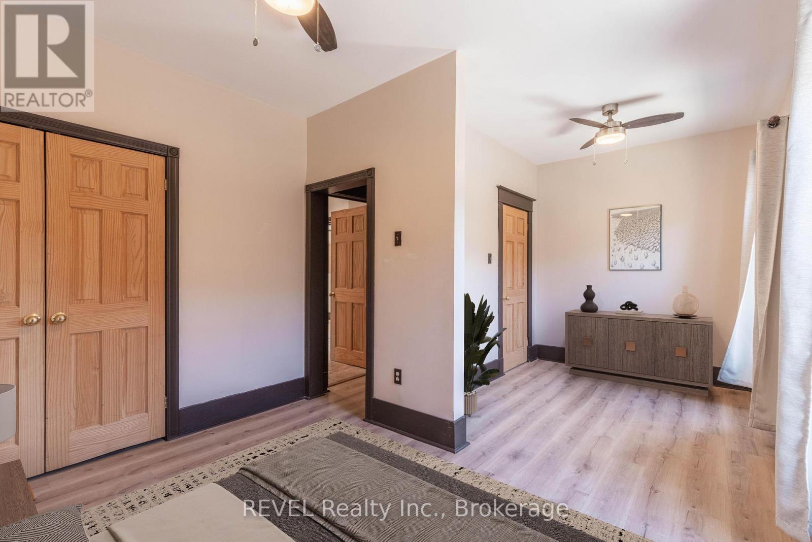 Welcome to a unique opportunity in the centre of downtown Niagara Falls. An income-generating duplex full of character and future potential. Positioned on an oversized 40' x 141' lot offering opportunity for possible expansion or an ADU. This property includes two self-contained units and a versatile detached garage that could easily serve as a workshop, hobby space, or studio. The home retains its original charm with timeless details such as solid wood trim, elegant pocket doors, and an inviting foyer. The main-level unit offers a generous 1 bedroom, 1 bath layout with an open kitchen and living space, in-suite laundry, and direct access to a large, private backyard. It can also be converted back to its former 2-bedroom configuration if desired. The upper-level unit is bright and welcoming, featuring 1 bedroom, 1 bath, in-suite laundry, and access to an unfinished attic that provides excellent storage or potential for further expansion. Recent updates to the furnace, A/C, electrical, windows, siding, and roof provide peace of mind, while the enclosed front porch adds extra functional space. With its size, layout, and location, this property appeals to a wide range of buyers-investors, multi-generational families, or anyone looking to live in one unit while renting out the other. Situated steps from transit and minutes to the Falls, Hospital, entertainment district, University of Niagara Falls, the Niagara River, and the U.S. border, this is a rare chance to secure a flexible property in a great area. (id:64974)