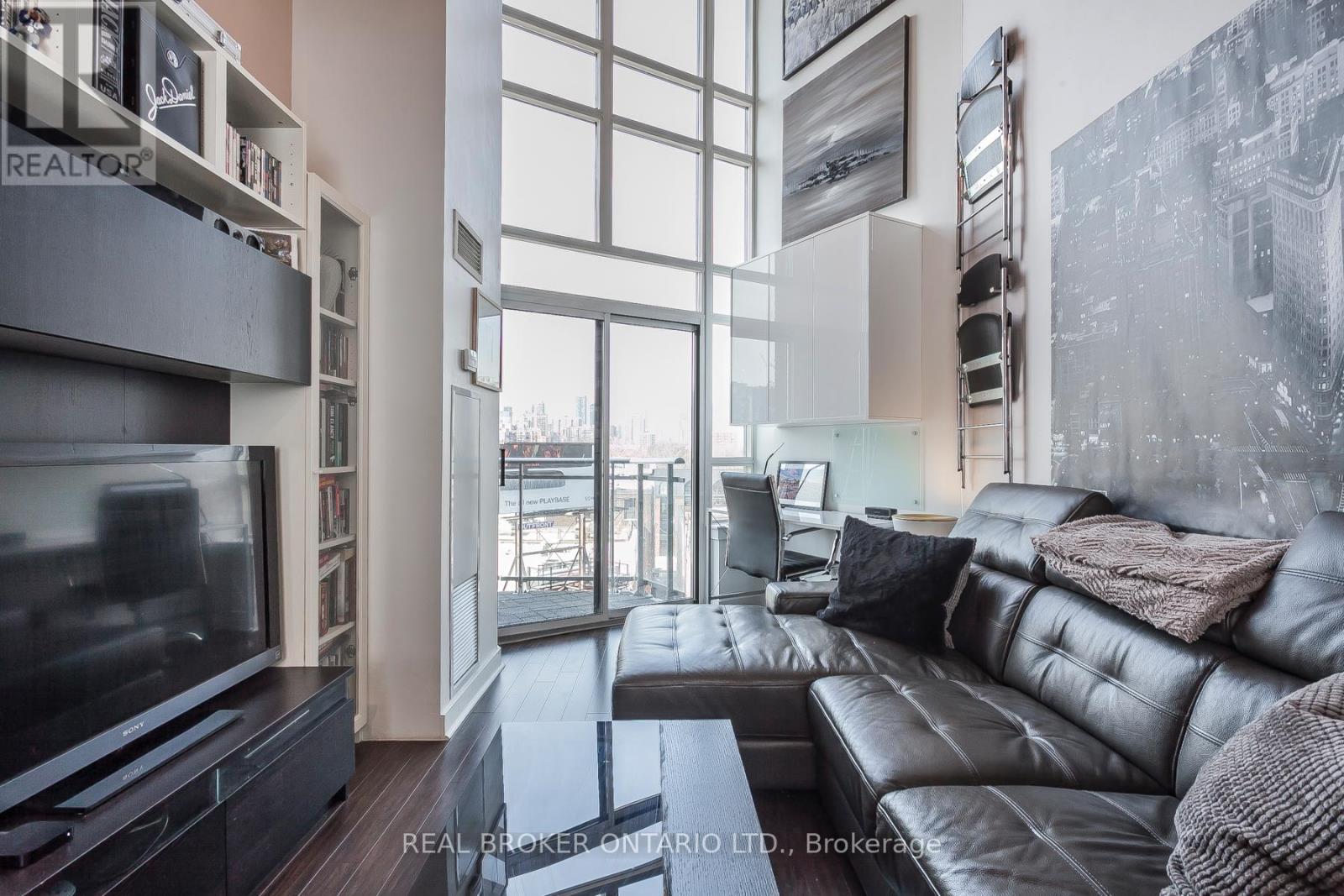 Stop scrolling - your dream downtown loft just hit the market. Live above it all in this stunning 2-storey loft offering 570 sqft of modern, open-concept living. This bright 1-bedroom suite features soaring 16-ft floor-to-ceiling windows, rich wood flooring, and unobstructed city views that flood the space with natural light. The sleek contemporary kitchen is perfect for entertaining, while ensuite laundry adds everyday convenience. Unbeatable location - walk to George Brown, the Financial District, Eaton Centre, St. Lawrence Market, top restaurants, cafés, and shops. Enjoy premium building amenities including 24-hour security, gym, party room, guest suite, and visitor parking. Urban style. Prime location. Exceptional lifestyle. (id:64974)