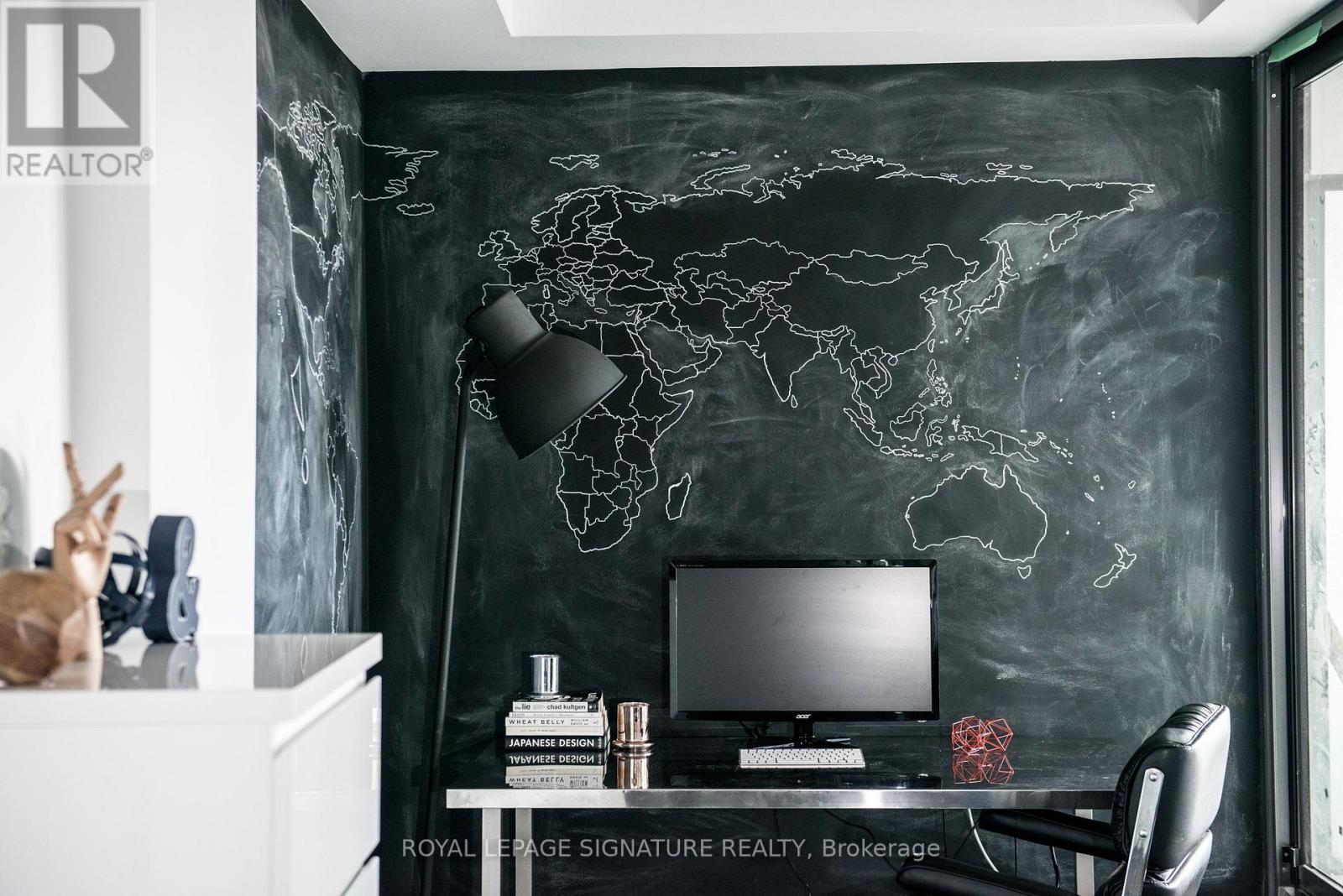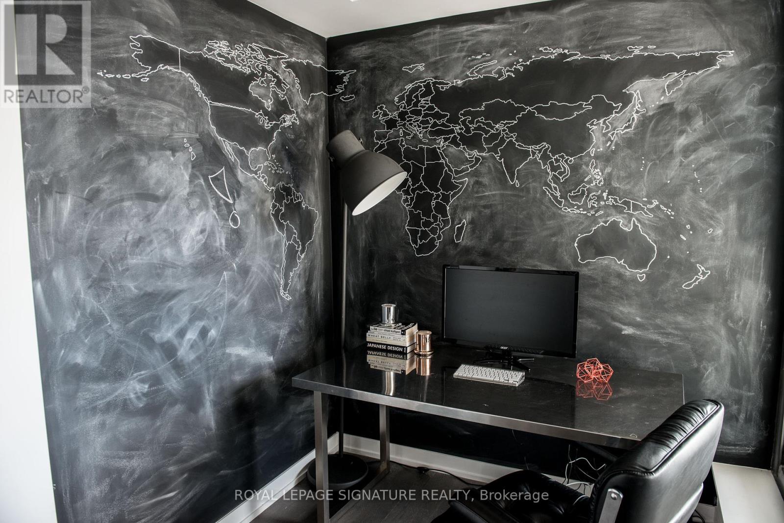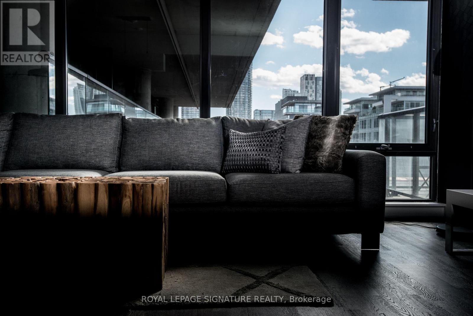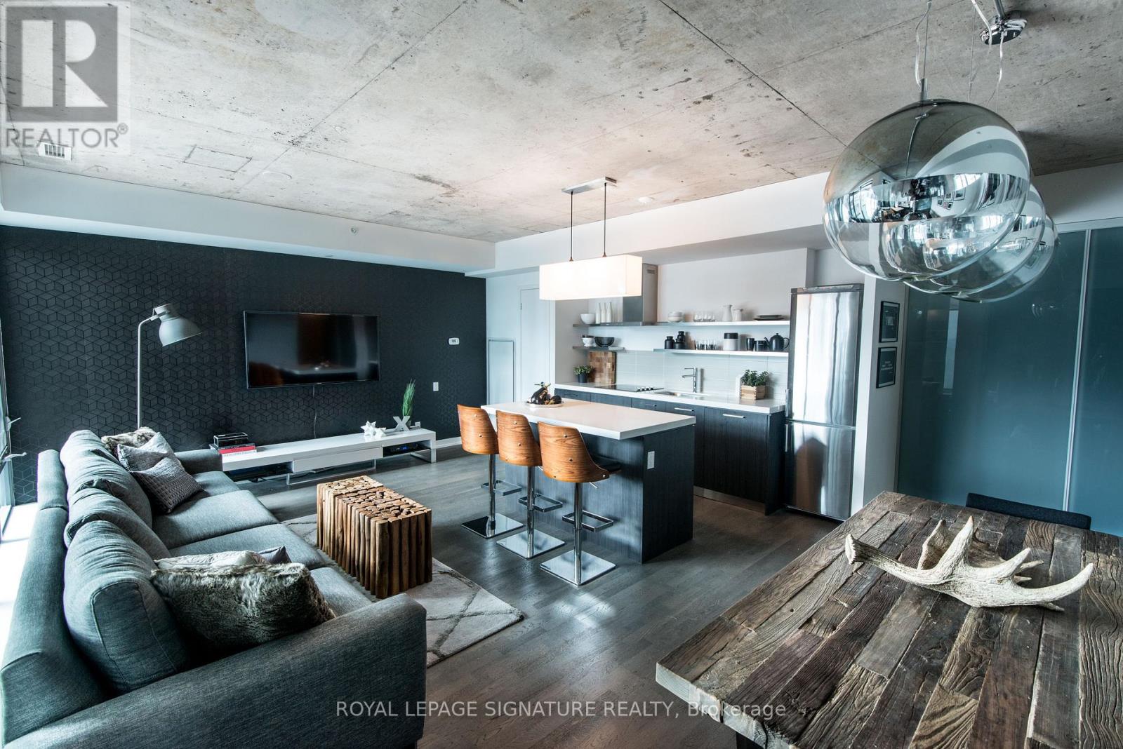 Welcome to stylish urban living at the iconic Fashion House the heart of King West. This oversized, south-facing 1+den, 2-bath condo offers 947 sq ft of thoughtfully designed living space, combining modern finishes with authentic loft character. Soaring concrete ceilings and expansive floor-to-ceiling windows flood the unit with natural light while showcasing vibrant city views. The open-concept layout features a sleek, modern kitchen, flowing seamlessly into the spacious living and dining areas-perfect for both everyday living and entertaining. The versatile den provides an ideal work-from-home, while the generously sized primary bedroom includes ample closet space and a private ensuite. Located in one of Toronto's most sought-after neighbourhoods, Fashion house residents enjoy access to one of the best amenity packages in the city, including a stunning rooftop terrace with an outdoor heated infinity pool, loungers and cabanas, a 24-hour concierge, fully equipped fitness centre, party room and more-all just steps to King West's best dining, shopping, nightlife, and transit. Experience the perfect blend of luxury, location, and lifestyle in this exceptional loft offering. (id:64974)