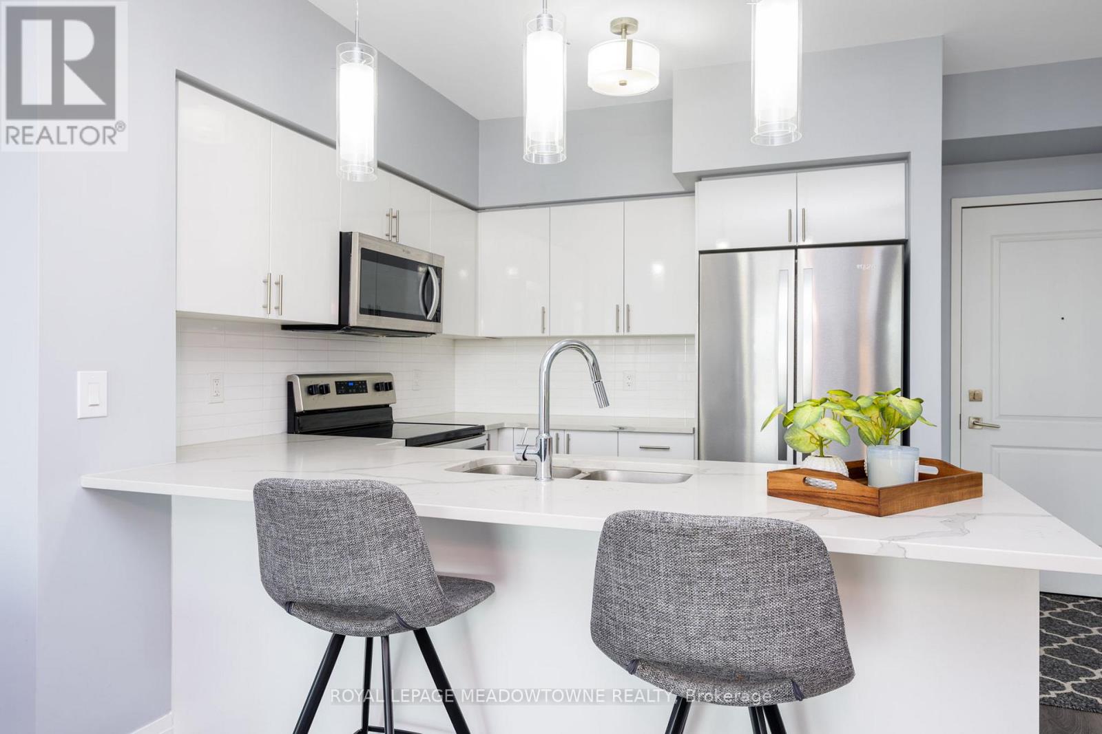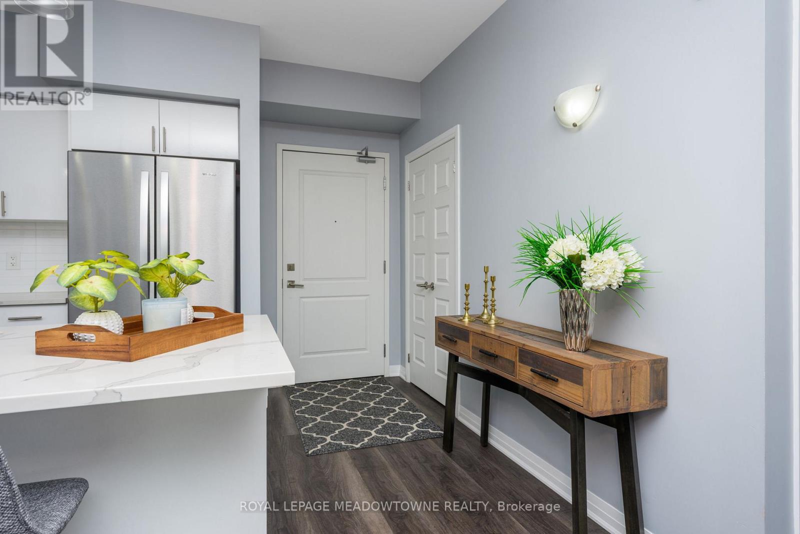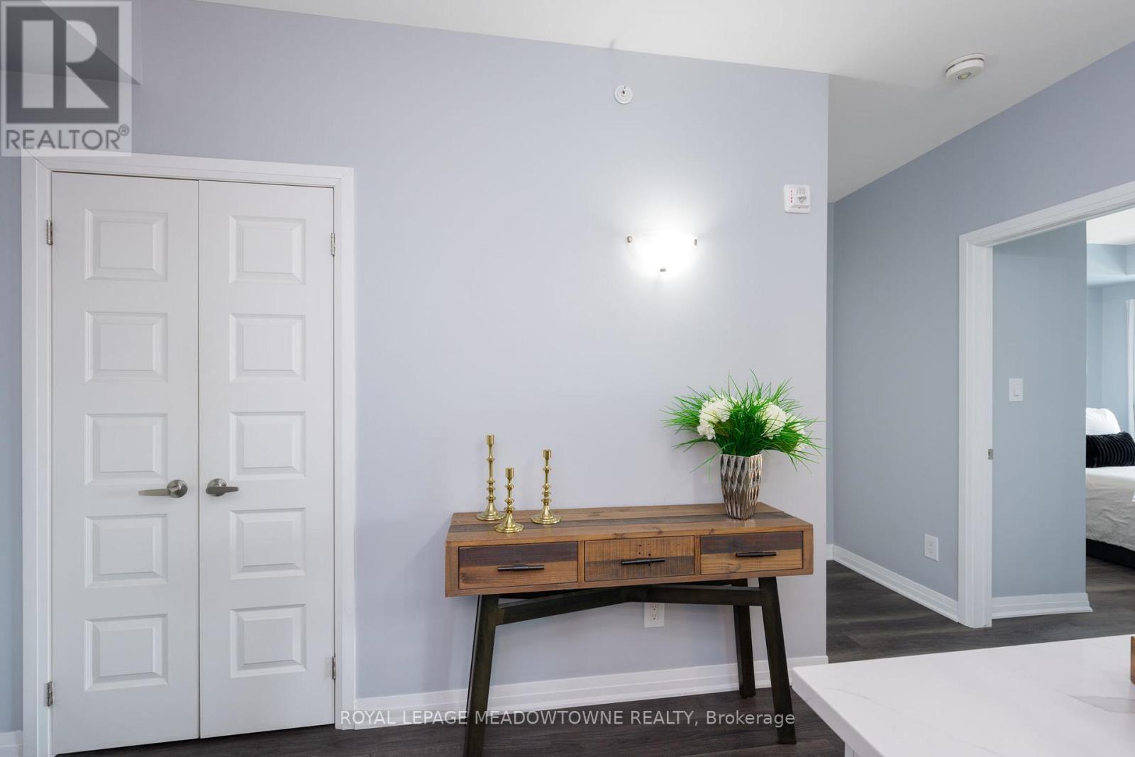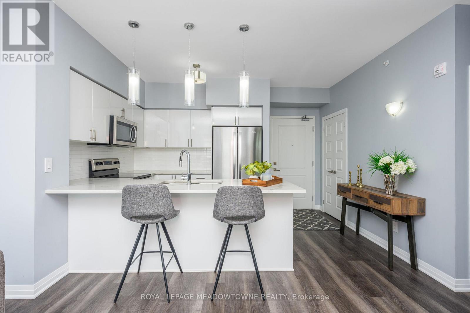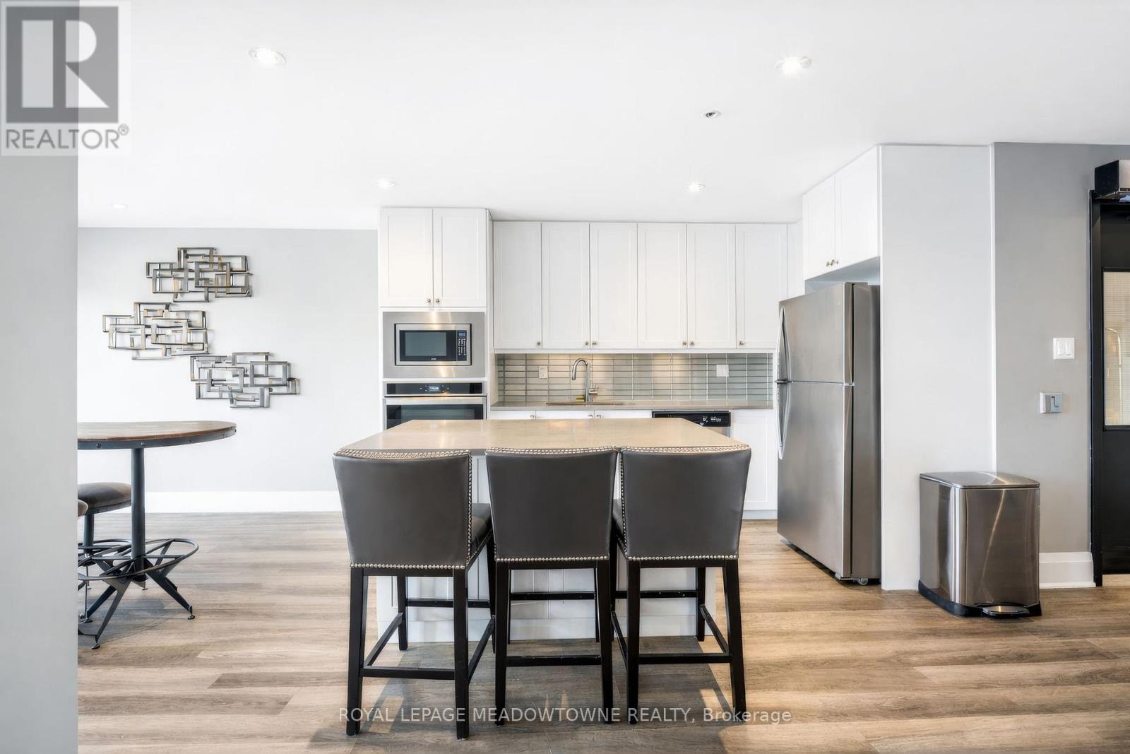 **Option for unit to be rented fully furnished at $2,200.00/mth* Luxury & convenience with an incredible view! Welcome to unit #614 at 610 Farmstead within the stunning 6Ten Condominiums building next door to the Milton District Hospital. Near restaurants, walking paths, parks, the Milton Sports Centre and transit, the walkability of Milton's WI Willmott neighbourhood does not disappoint, it is also a short drive to the 400 series highways - perfect for commuters. This 1-bedroom, 1 bathroom unit is located on the penthouse floor in a central location of the building close to elevators and refuse chute and showcases an incredible escarpment view from the oversized balcony which can be accessed by both the living room and bedroom. Bright and open, this layout is perfect for a single occupant or couple. The unit features a large kitchen with stainless steel appliances, oversized breakfast bar with seating for 4 and ample storage looks over the combined living and dining room, a Queen-sized bedroom with large, double closet, in-suite laundry and a large 3-piece bathroom with tiled shower and oversized vanity. The entire unit boasts luxury vinyl flooring, 9 foot ceilings and has ample storage. This unit also comes with 1 assigned parking spot and the unit of an assigned storage locker. Building amenities include a gorgeous party room with kitchen - perfect for larger gatherings, an underground car washing bay within the parking garage and a well stocked private gym. (id:64974)