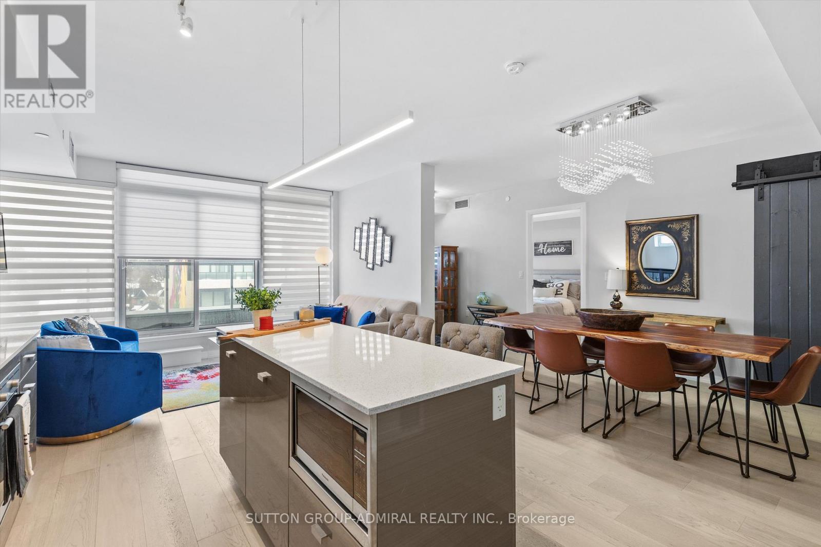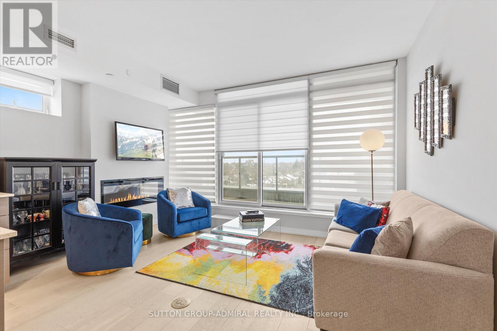 Welcome to the coveted Nest building! This beautifully appointed 2 bedroom + convertible den,2 bathroom residence offers the perfect blend of style, comfort, and convenience. Spanning 948 sq ft, this bright,sun-filled suite features a highly functional layout and a stunning 200 sqft extra-wide terrace-ideal for relaxing, entertaining, and enjoying seamless indoor-outdoor living. Inside, you'll find designer finishes throughout, including custom crystal light fixtures, Electric Fireplace, built-in closet systems, and neutral modern décor that creates a sophisticated yet inviting atmosphere. The versatile convertible den is perfect for a home office, nursery, or guest space, adding flexibility to suit your lifestyle. This immaculate condo is in pristine, move-in-ready condition-there is truly nothing to do but call the movers! Residents enjoy premium building amenities including 24-hour concierge and security,two party rooms, and a spectacular communal rooftop with indoor and outdoor lounges with skyline views and outdoor kitchens-perfect for hosting and relaxing with friends and family.Located just steps from shopping, dining, and everyday conveniences, this is city living at its finest. Show and sell! (id:64974)