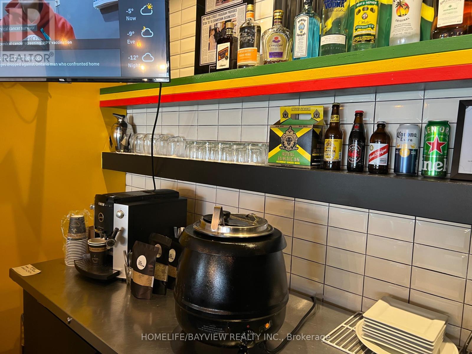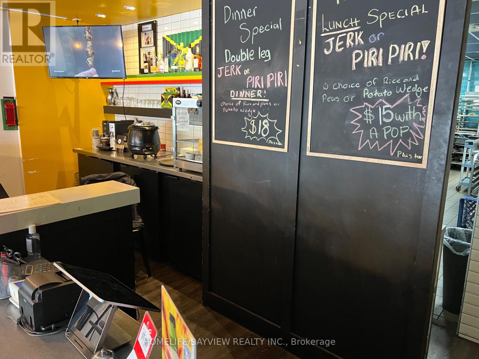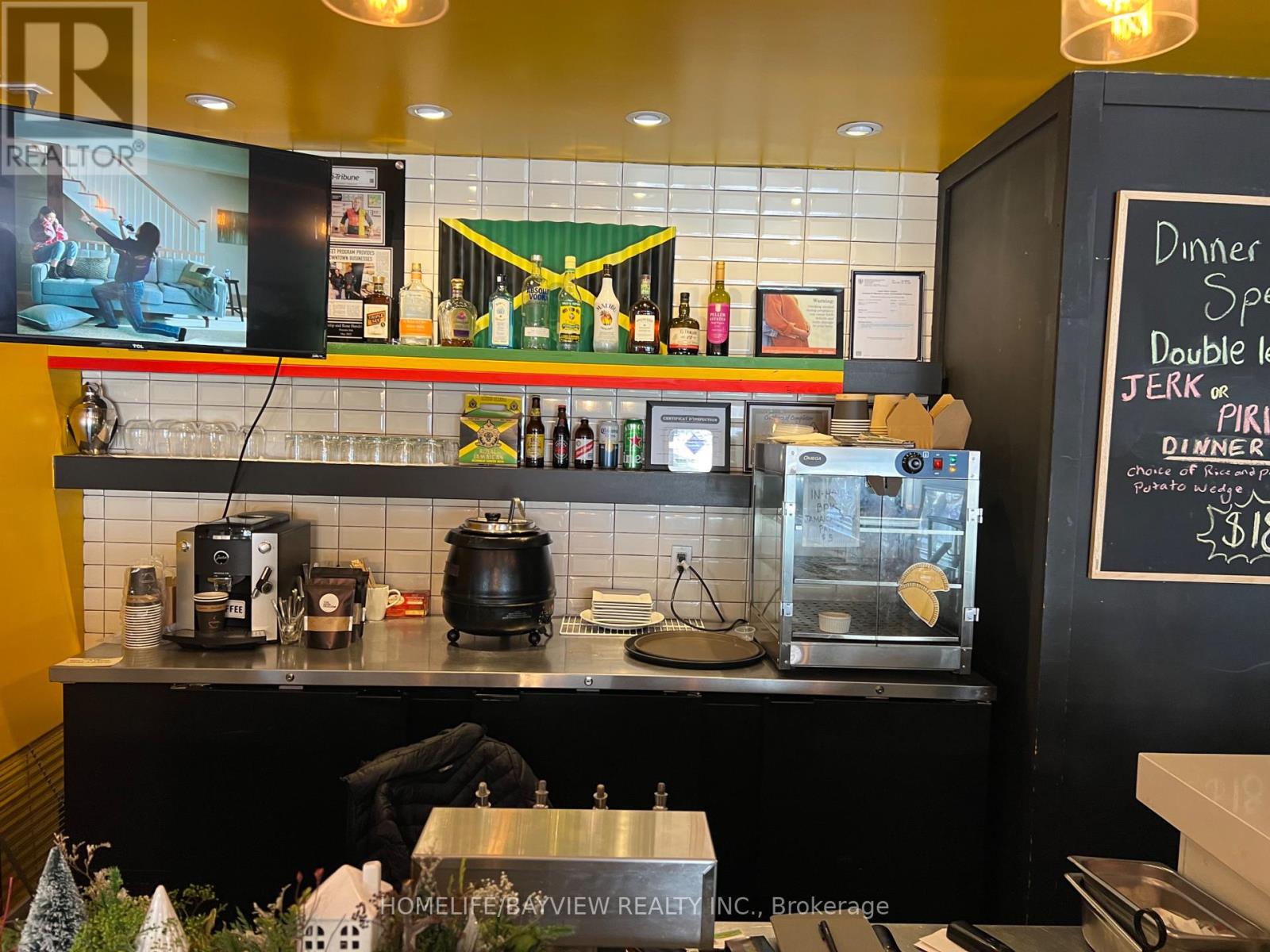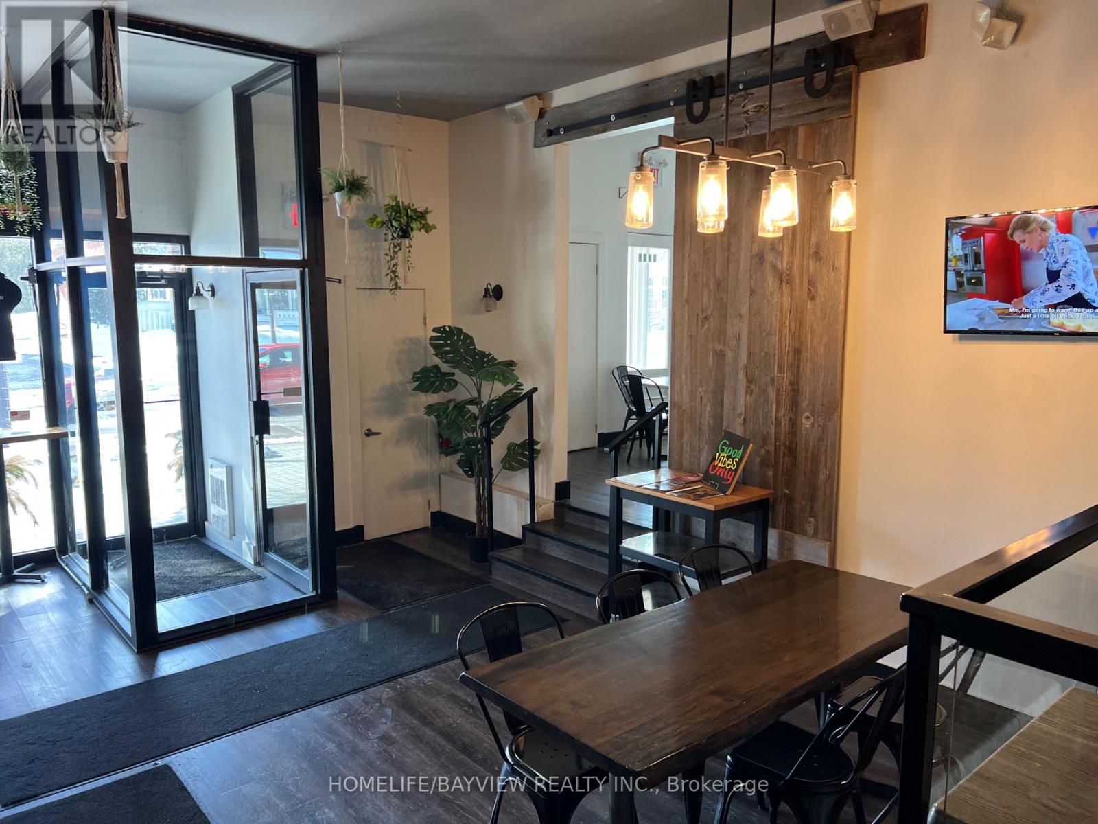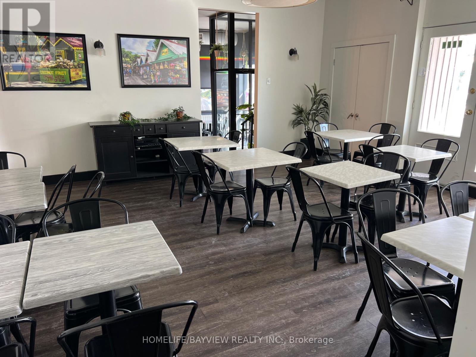Amazing opportunity to take over this established restaurant located on popular Main St in downtown Stouffville. Fully-equipped restaurant and bar complete with grill, exhaust hood, prep tables, freezers, etc. L.L.B.O. for 56 seats. Currently serving best-tasting Jamaican BBQ cuisine including jerk chicken. Could easily be converted to any type of cuisine. Bright, spacious, & modern decor. Includes 700 SF basement with storage, office, & walk-in cooler. Lease until 2027 + 5 years option to renew. Rent $4844/month includes TMI & HST. Strong & steady sales. Owner will train. Don't miss this fantastic opportunity to have a profitable, turn-key restaurant in a high-demand area. (id:64974)
