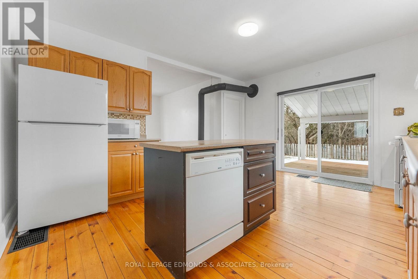 Terrific home on a rare double lot in Pembroke! This well cared for 3 bedroom, 1.5 bathroom home offers great curb appeal with attractive landscaping, a spacious fully fenced yard, and a fantastic partially covered back deck perfect for relaxing or entertaining. Step inside through the front entrance and you're welcomed by warmth and charm, highlighted by beautiful pine floors, updated light fixtures, and an abundance of natural light pouring in through the many windows. The main level features a large, functional kitchen complete with a centre island, a generous living room, a formal dining area with a cozy wood stove ideal for taking the chill off on cooler days and a updated powder room that adds convenience to this level. Upstairs, you'll find a well sized primary bedroom with a walk-in closet, two additional bedrooms, and a beautifully updated 4 piece bathroom. For those looking to expand their living space, the unfinished loft offers incredible potential to be transformed into a master suite, hobby room, or play area. The lower level provides a dedicated laundry room along with plenty of storage space. With its combination of character, updates, and an oversized lot, this property is a fantastic opportunity to enjoy comfortable living both inside and out. (id:64974)