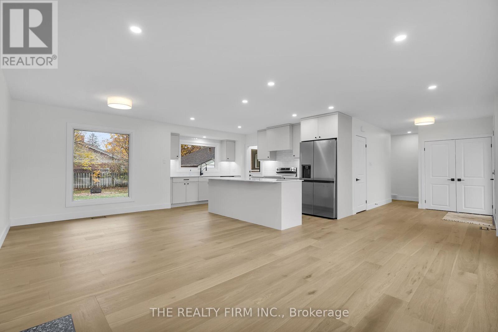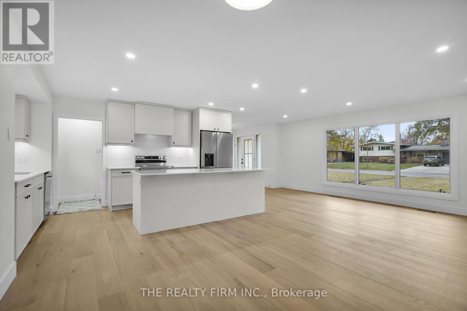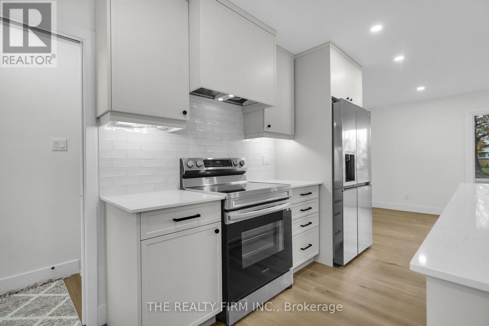 Welcome to 615 Santa Monica, a beautifully renovated Oakridge bungalow offering 4 bedrooms (3 on the main plus 1 in the lower level) and 3 full bathrooms, including a rare 3-piece ensuite. The main floor has engineered hardwood throughout, a brand new kitchen with quartz countertops and backsplash, and fully renovated bathrooms. The fully finished lower level features a spacious rec-room, living room, two new egress windows, a large bedroom, a 4-piece bath, and a bright finished laundry room. Corner lot with single carport and a great backyard for entertaining. Excellent school district with John Dearness Public, St. Nicholas Catholic, STA only a 5 minute walk, and Oakridge Secondary also close by. (id:64974)