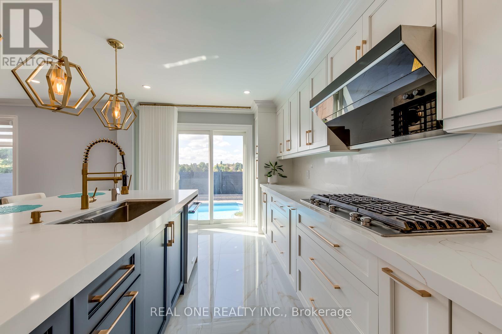 A rare find fully updated detached property in sought after East Credit. Extensively updated from top to bottom, inside and outside, front and back. Close to 2700 sqt above ground. Open concept. Bright and Spacious. On the ground level, inviting living area combined with dinning area, family room with electric fireplace, dream kitchen with huge island and Kitchenaid appliances, walking out to the back yard with a inground pool. The backyard is backing onto school green land. On the second level, spacious four bedrooms and 3washrooms. Basement apartment with two bedrooms, two washrooms, large living/entertaining area, kitchen, laundry and separate entrance. Extra wide driveway can park 3 cars. Prime Convenient Location. Minutes From Heartland Town Centre With Easy Access To Hwys. Walking Distance To Parks ,Golf Course, Schools & All Kind Of Shops In Heartland &Much More! (id:64974)