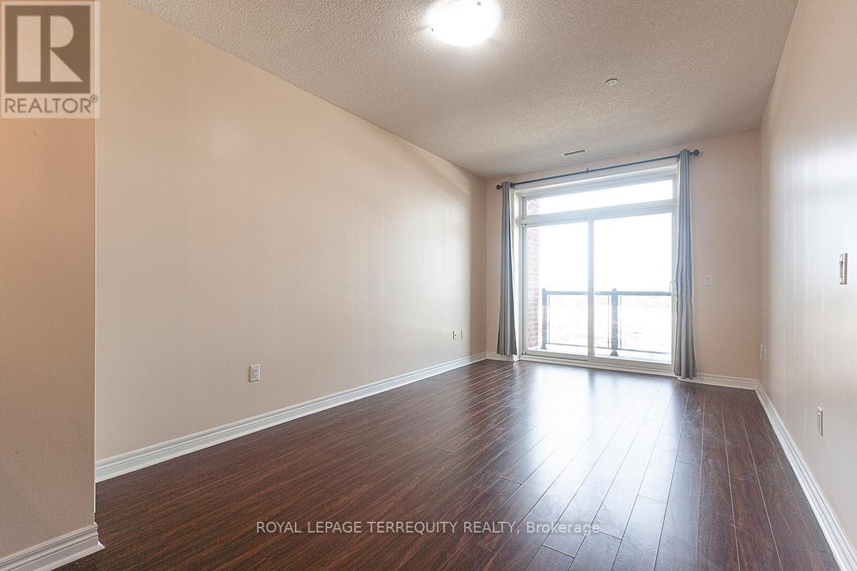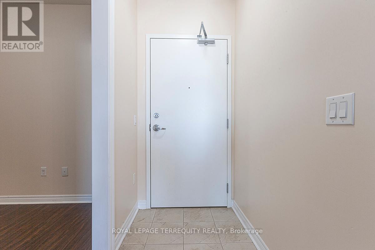Premium Location! Immaculate 1 Bedroom + Den located on the 6th floor featuring no carpet and modern finishes throughout. Conveniently situated within walking distance to shopping, Home Depot, Beer Store & LCBO, Canadian Tire, Costco, restaurants, transit, and major highways.Interior features include freshly painted walls, 9-ft ceilings, laminate flooring throughout, and a contemporary kitchen with granite countertops, breakfast bar, and stainless steel appliances. Spacious living room with walkout to an open balcony. Includes ensuite laundry, one underground parking space, and a storage locker.Building amenities include a fully equipped exercise room/gym, games room, party room, and ample visitor parking. (id:64974)
