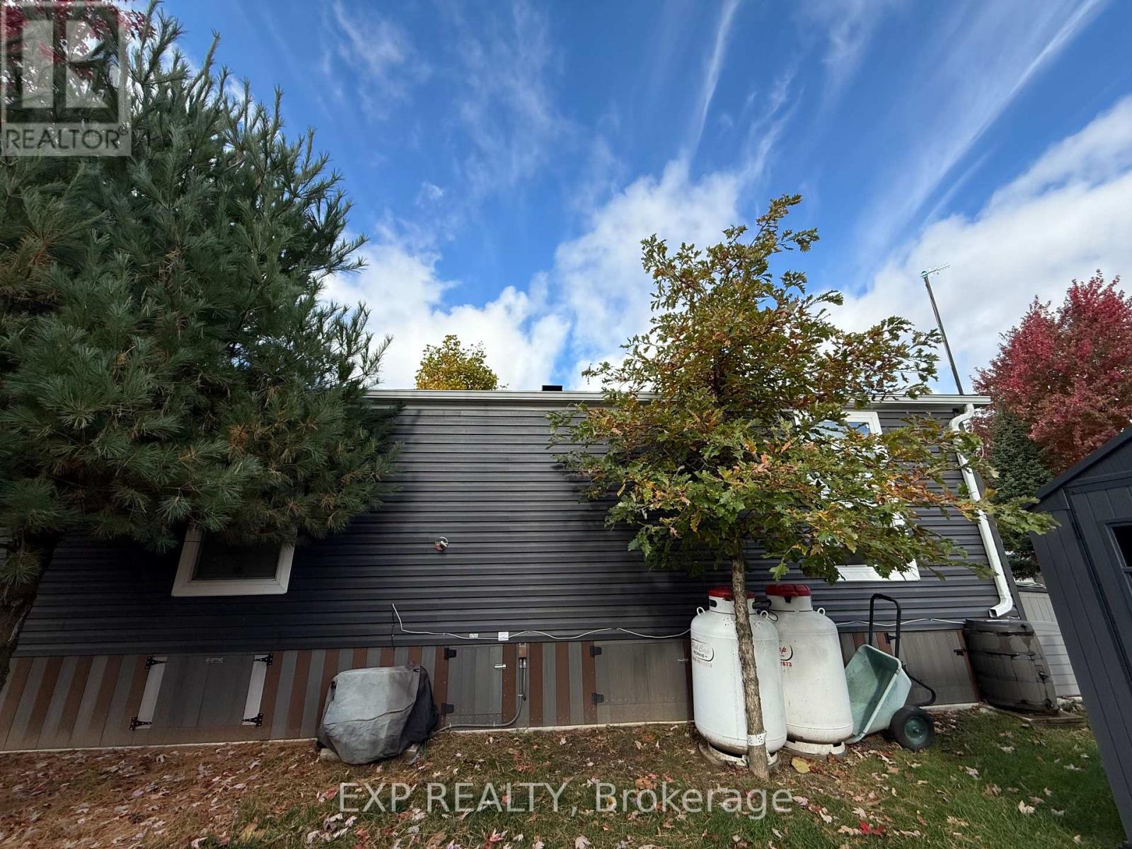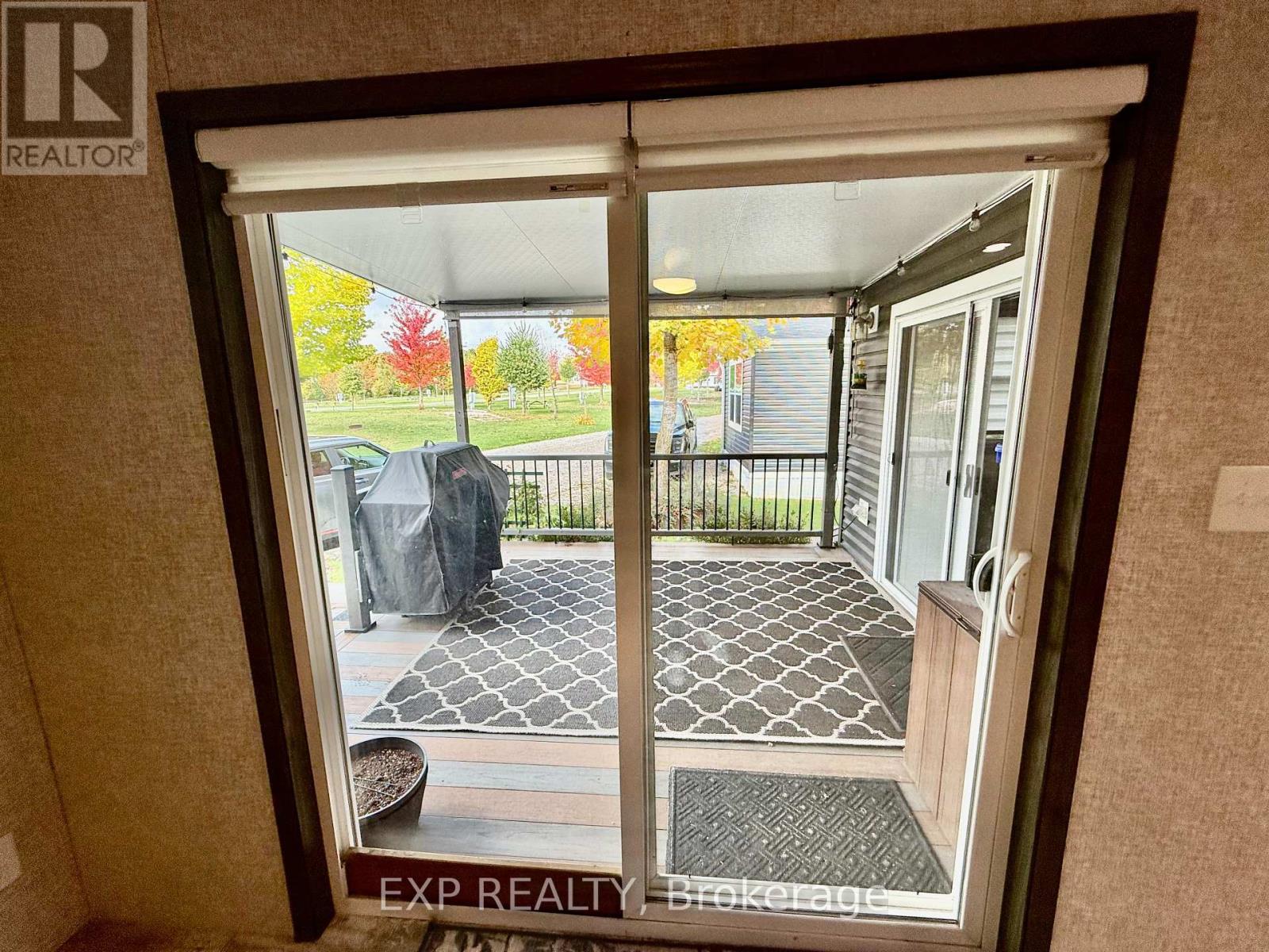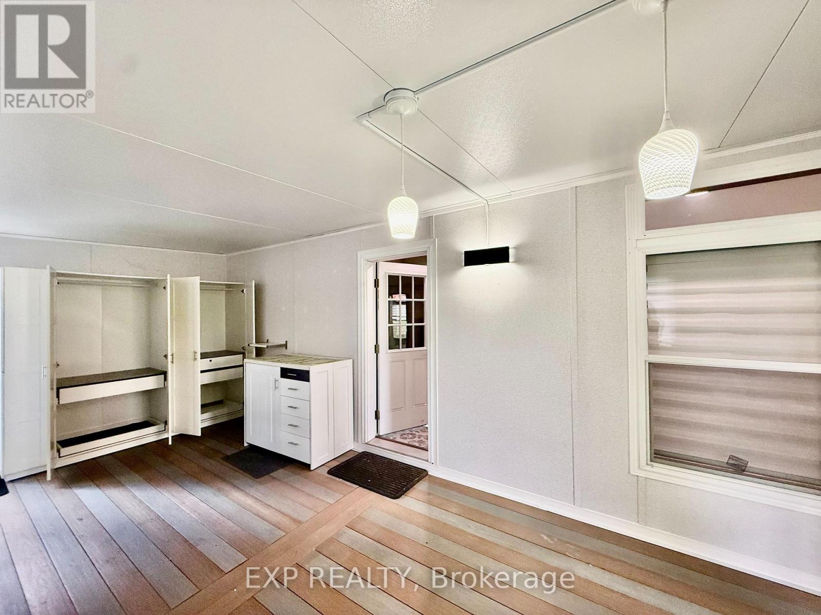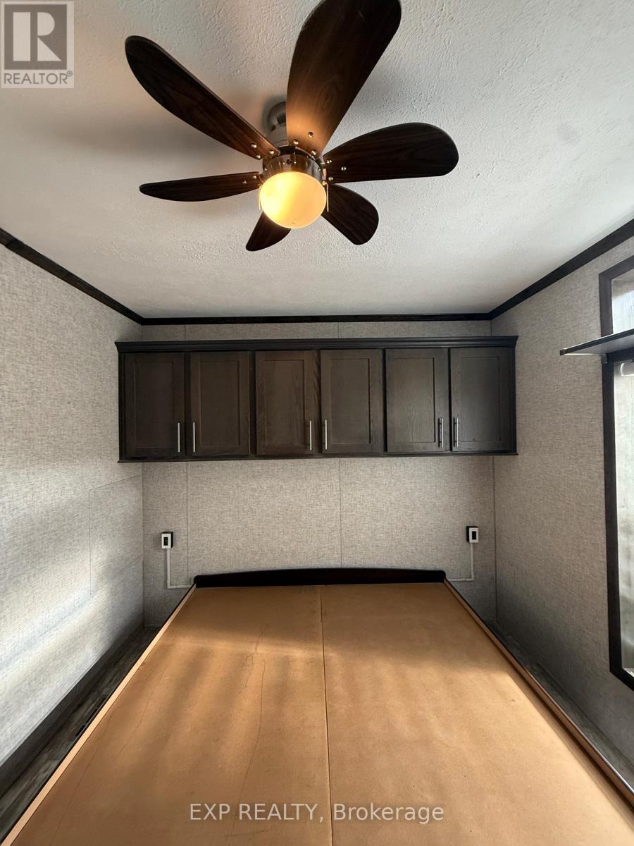 Located in 9 month section of award winning Happy Hills Resort. Gorgeous Custom Built 2021 Commodore Park Model with Additional Sunroom (16 x 42 and 12 x 20). 8ft ceilings throughout allow for extra large double hung windows and transoms. Zebra blinds on all. Eye catching composite deck and skirting with hard top coverage. Sunroom also has composite flooring with loads of added storage, 3 ft windows and pendant lighting. Open concept kitchen has new fully upgraded stainless steel appliances including a higher end gas stove with air fryer and grill, fridge with ice cube maker, a dishwasher, microwave and farm house sink. Solid oak cupboards, and pull out drawer storage including unique pull out storage in "dead space corner". Cupboards are pulled over the fridge and gabled. 3 Stage Home Filter System and higher particle filter for kitchen sink and ice maker. Electric Fireplace in the living room. Both bathrooms have granite vanities and marble flooring. Built in dressers and extra storage in the master bedroom. The laundry is located in the closet in the second bedroom. Both bedrooms fit king size beds. Cement pad and insulated spray foam under both modular and sunroom. 7 x7 shed with hydro. BBQ included on front deck and there is another composite deck off the back door. Lovely castor planters with Blue Spruce in front. Newer lawn mower stays. A truly beautiful location with a large heated family swimming pool, children's splash pad, heated adult's only swimming pool, a 9 hole golf course and driving range, Bocce Ball, Lighted Tennis court, Pickleball, Volleyball, Basketball, Shuffleboard, Horseshoe pits, Daily children's crafts/activities, hayrides, bingos, movies, special tournaments, mini animal farm, hiking trails, several playgrounds, lighted skateboard and bicycle activity center and more. Get in on this lovely lifestyle early! Contact listing agent for fees, deposit and occupancy requirements. 15 minutes to the 401and 10 minutes to amenities. (id:64974)