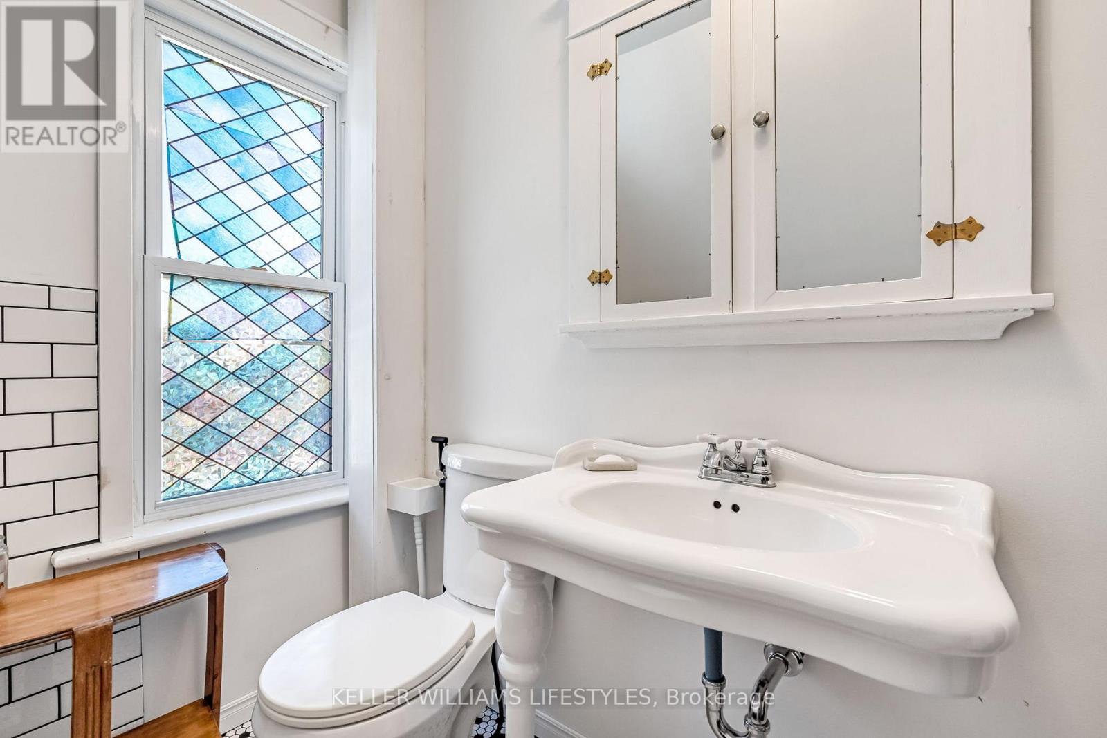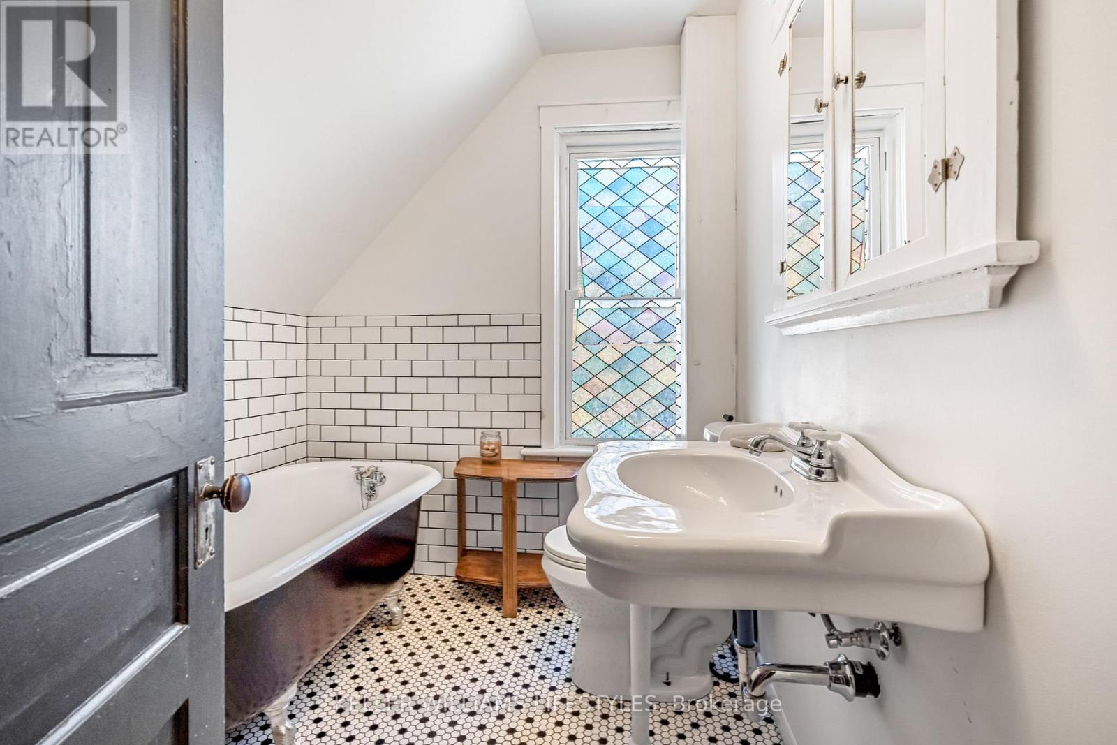 Welcome to this charming two-storey family home in Carling Heights. Situated on a corner lot just steps from Old East Village, this 3+1 bedroom, 2 bathroom home has been well maintained and updated. Walk up to the front entrance and you'll be greeted with a large covered porch, perfect for a morning coffee or evening glass of wine. Step inside to the generous foyer, a perfect space to keep your jackets, shoes, bags and more tucked away. The main floor is open and bright, with a living room attached to your spacious dining and kitchen area. The perfect spot to entertain! The bonus room off the kitchen can be used for a den, office, additional bedroom and more. Upstairs are three good sized bedrooms and a three piece bathroom, featuring a claw foot soaker tub, pedestal sink and timeless white and black hexagon floor tiles. The unfinished basement has plenty of storage space, laundry and a workbench. The backyard has a large deck to enjoy summer days and nights, and a play area for growing families. Loads of amenities are close by like Western Fair, Markets, craft breweries, several parks as well as local primary schools including East Carling, Lousie Arbour and Blessed Sacrament. Book your showing today! (id:64974)