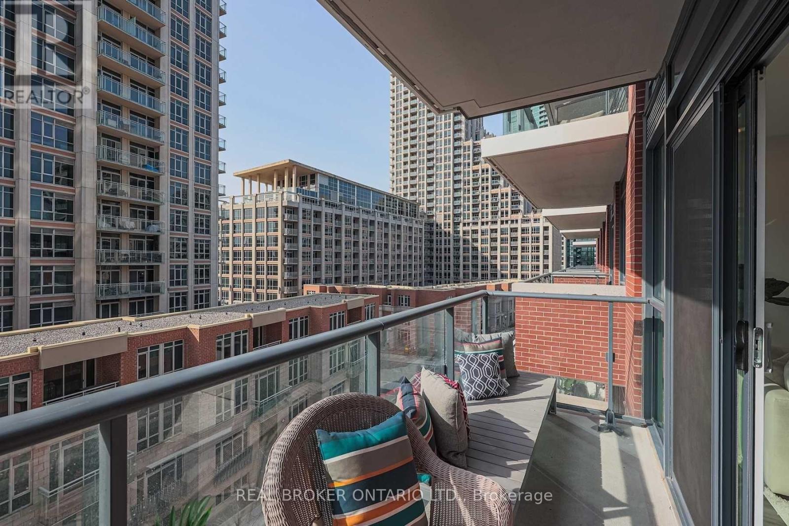Perfectly-sized 585 sf south facing 1+1 unit w/ parking. Enjoy a book under the sun on the balcony during the day or under the upgraded potlights throughout the space in the evening. Kitchen features built-in appliances, stone countertops and a thoughtfully designed island that has storage and seats 4. The den is ideal for a work from home space or extra room for a guest. Luxury Amenities Incl. Lobby Cafe, Courtyard, Gym, Wellness Centre, Party Rm & Theatre. (id:64974)