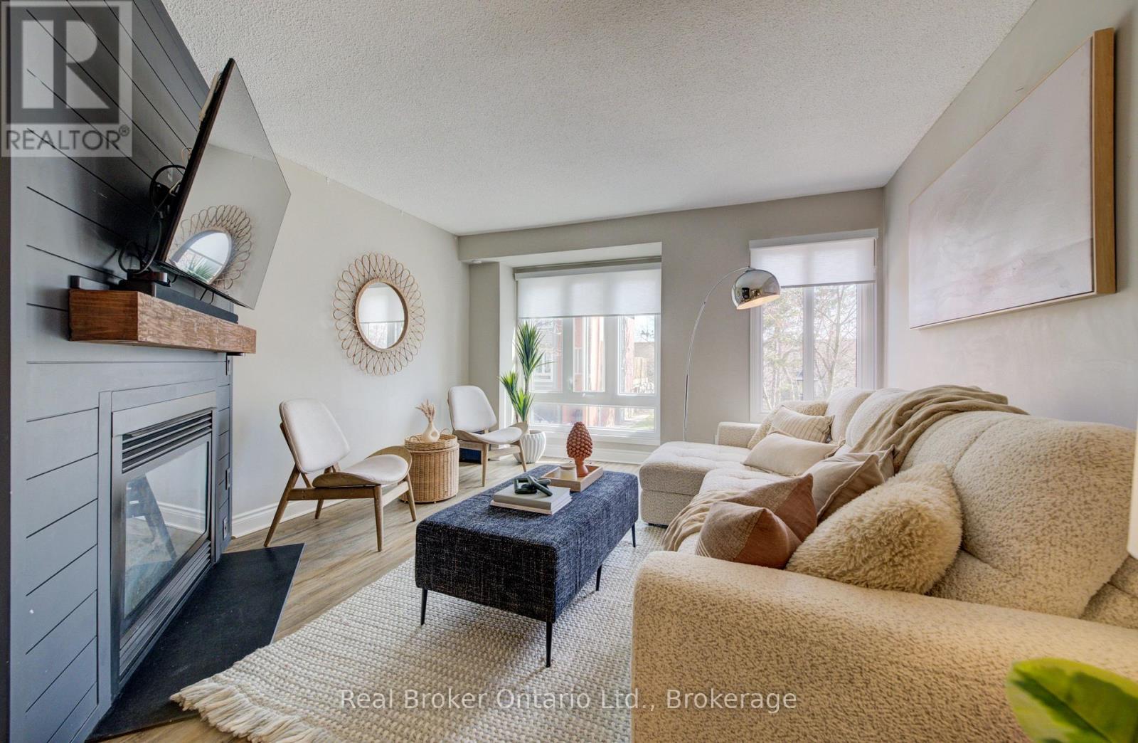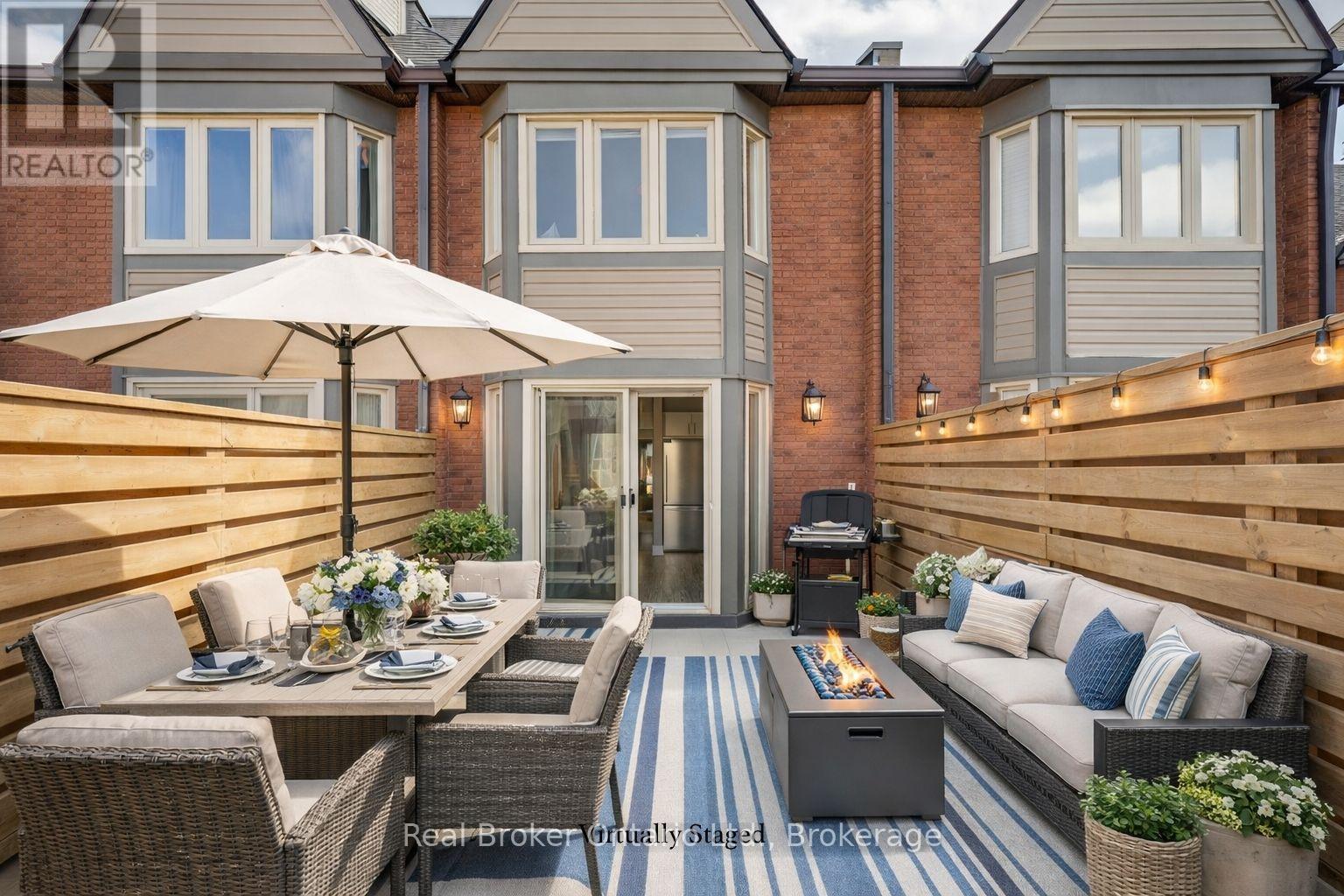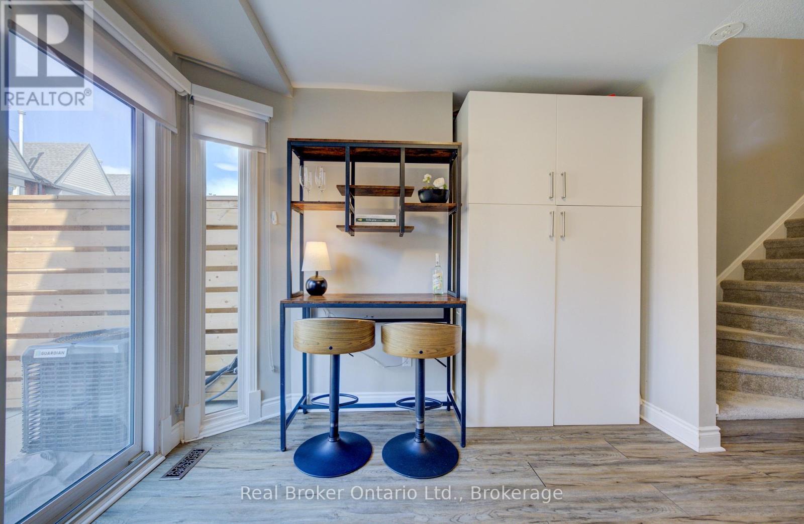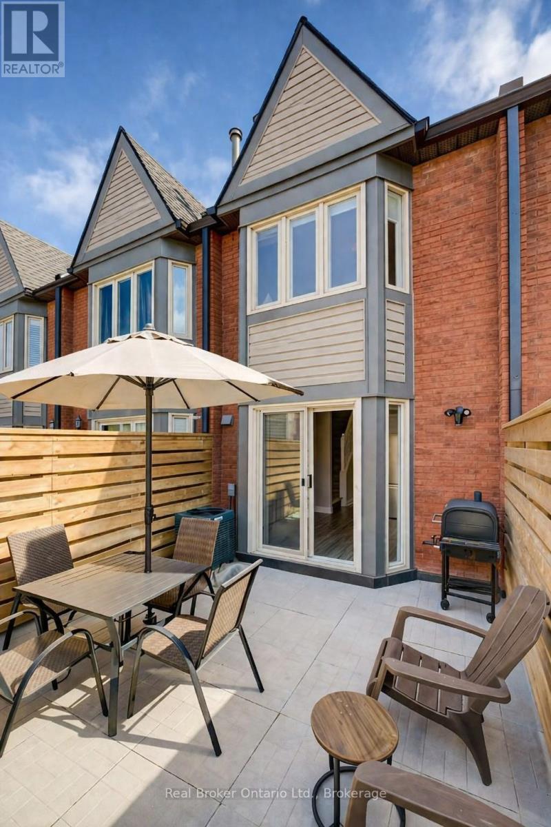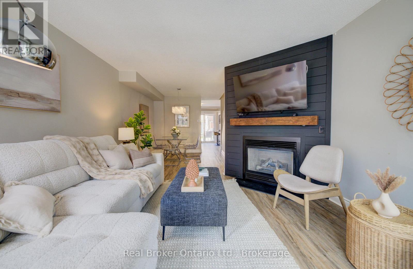 Tucked quietly at the back of The Brownstones, this executive townhome offers the perfect blend of privacy, function, and location - with 1,446 sq ft of total living space designed to fit your lifestyle. Step inside from your own private driveway and garage into a thoughtfully designed entry level featuring a powder room, laundry, and a versatile flex space - ideal as a home office, guest room, or third bedroom. Upstairs, the main living area is warm and inviting with an open-concept layout, anchored by a cozy gas fireplace and feature wall - the kind of space that just feels good to be in. The updated kitchen is both functional and stylish, with easy access to a bright rear patio for morning coffee or relaxed evenings. The upper level offers two generous bedrooms and a beautifully renovated 5-piece bathroom with double sinks. All of this in one of Burlington's most convenient locations - just steps to shopping, groceries, and everyday essentials, with easy access to downtown Burlington, the GO Train, and major highways, and within walking distance to great schools. A home that truly fits your life - whether you're starting out, simplifying, or somewhere in between. (id:64974)