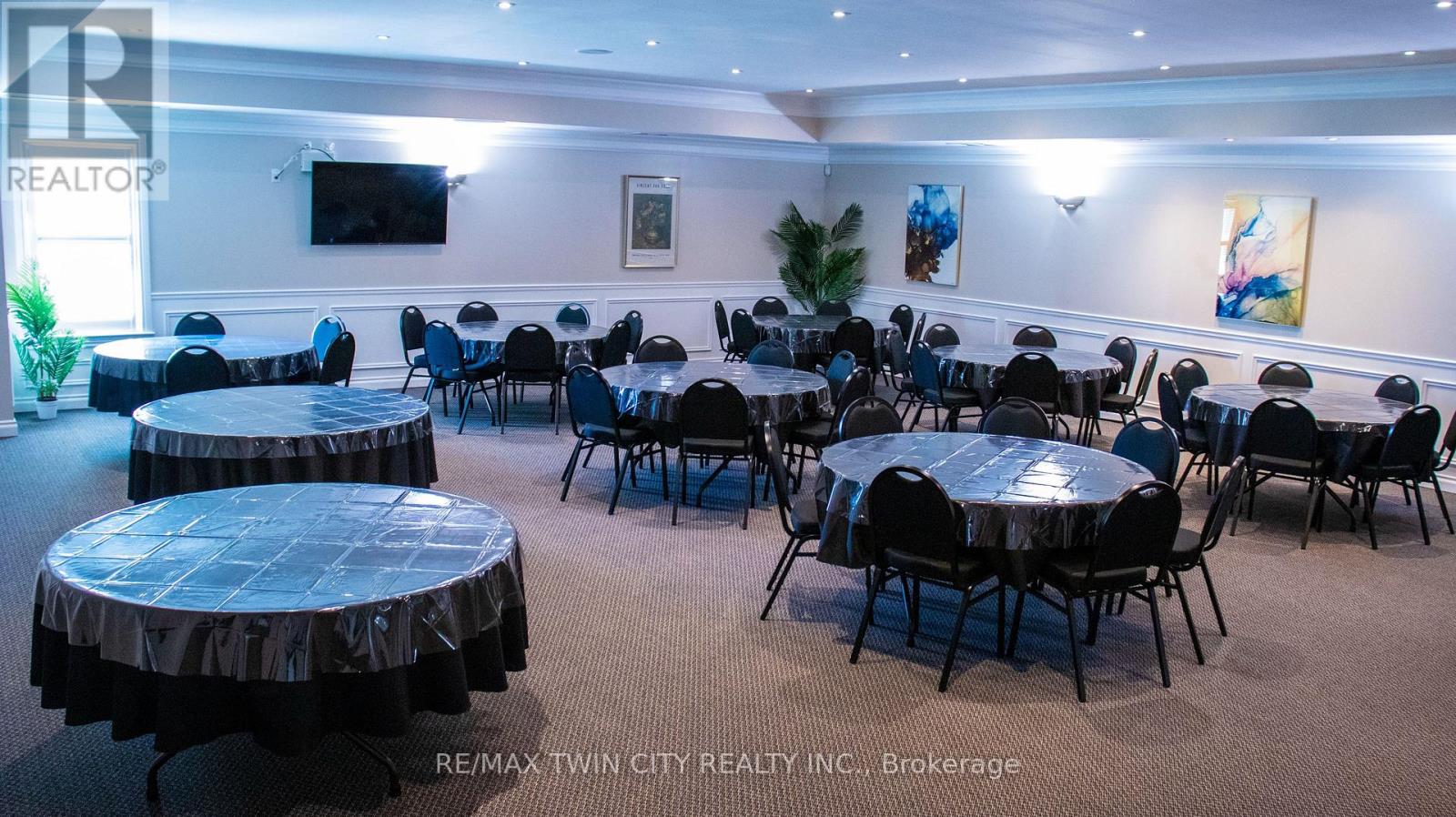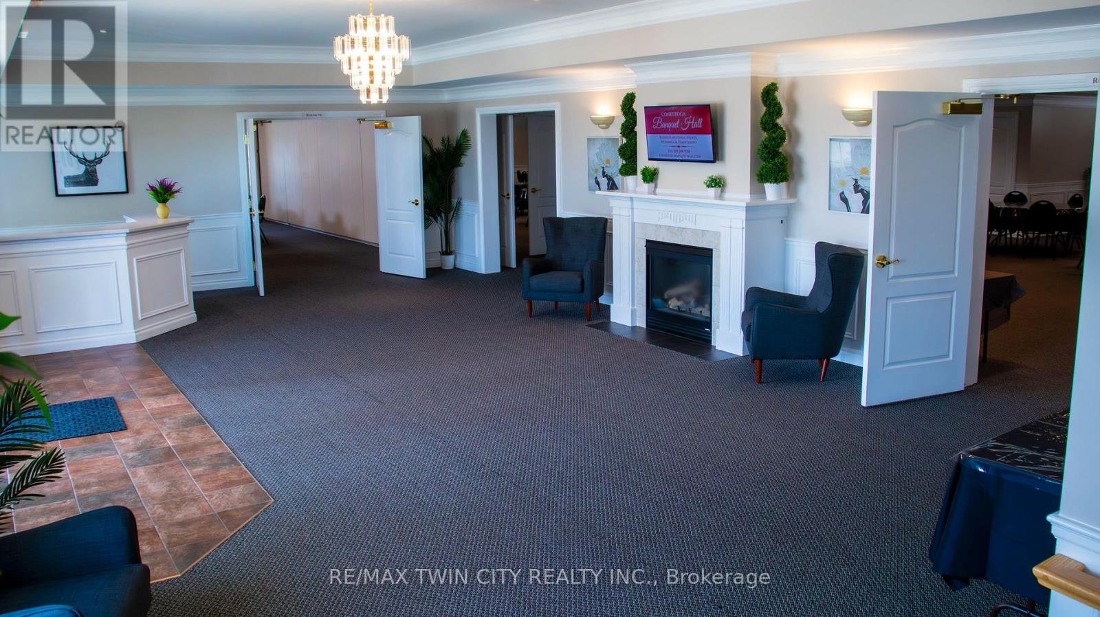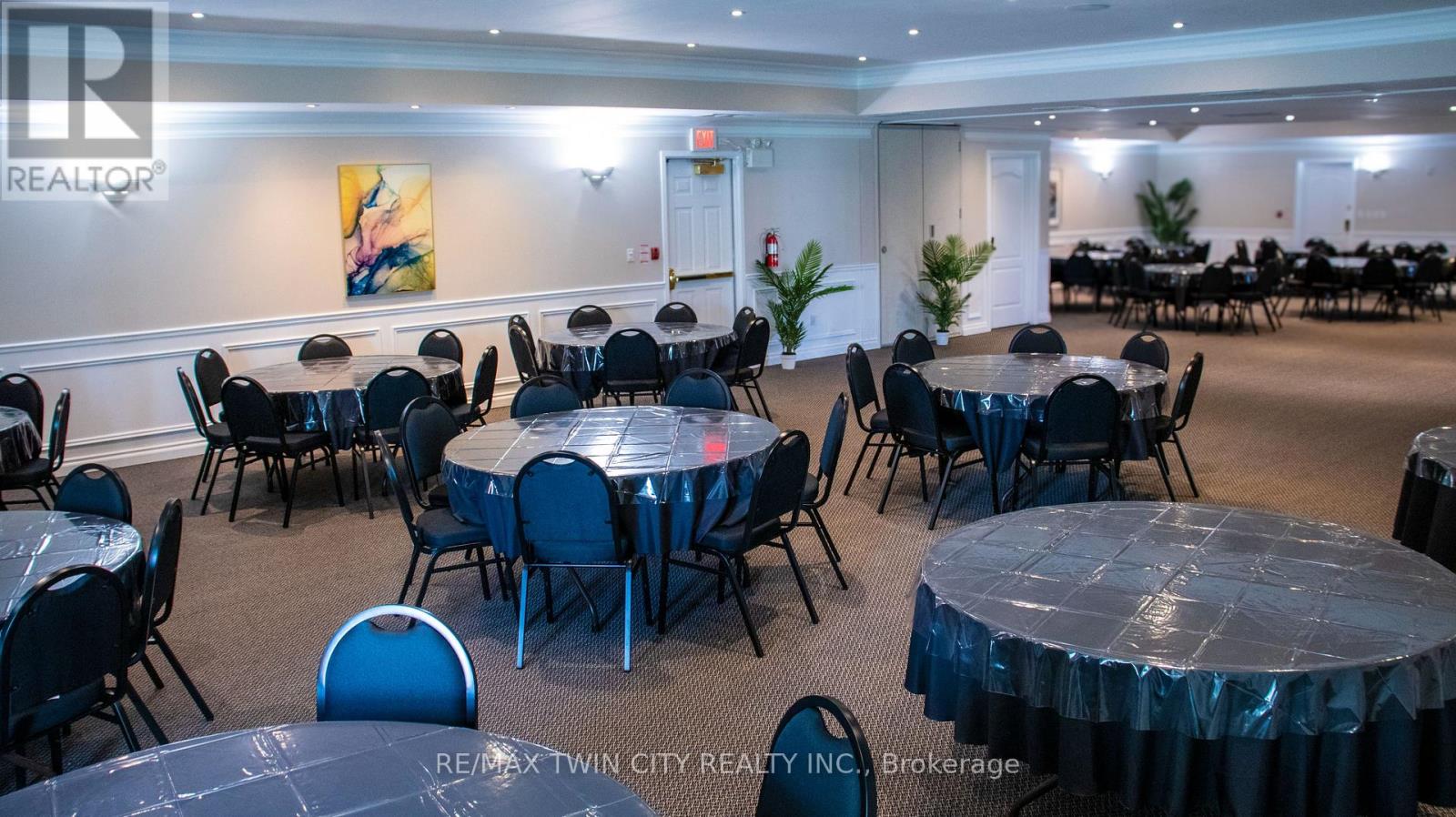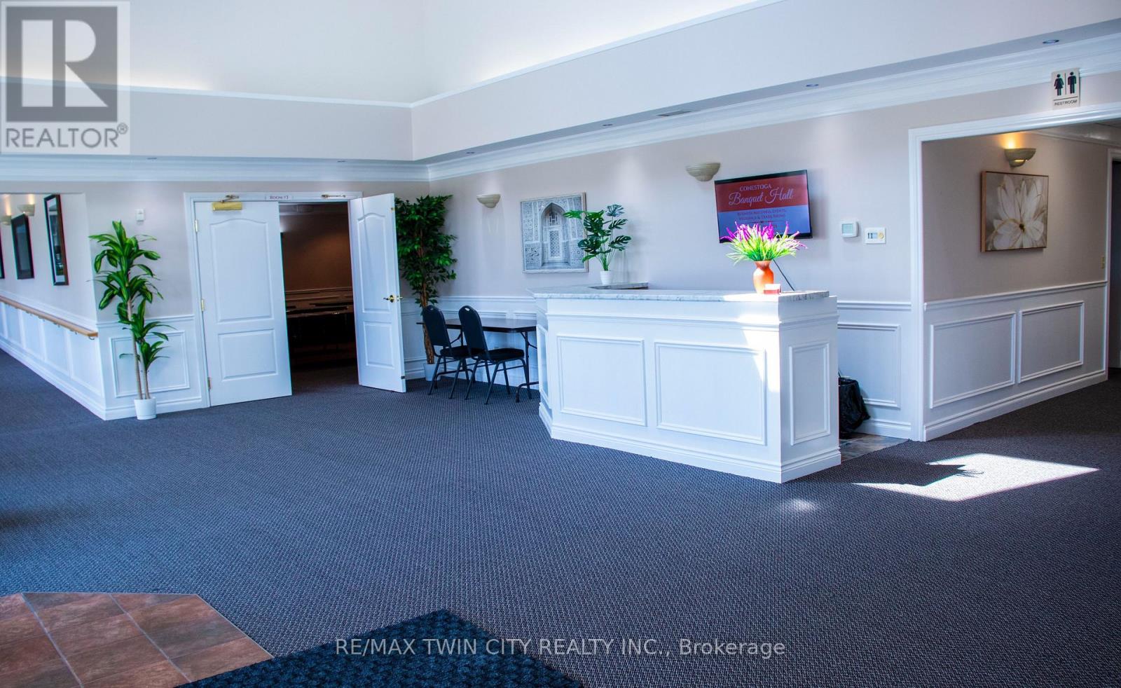 VTB possible. Beautiful Banquet Hall approx. 15,500 sf building sitting on Approx. 1.50 acres with 4 halls (no kitchen/restaurant, but space available to add). Banquet Hall fully renovated last year. 75+ parking spaces. Banquet hall rooms renting on daily base and upcoming bookings already reserved. Site an also be looked at as a redevelopment as it's located in one of the most vibrant nodes of the region. Prime location with very large frontage on the main road and 3 entrances from main road. Large residential unit on second floor with separate entrance (can easily become 3 res units), 5 rooms, 2.5 bathrooms and kitchen with large dinning/lounge area. 1KM from highway 85. Located 500m down the street form Conestoga Mall and surrounded by all major retailers, hotels and big-box stores. VTB available up to 70% with flexible open terms. C5-81 Zoning allows most all retail uses if the current use is not of use to you. Current owner is retiring. (id:64974)