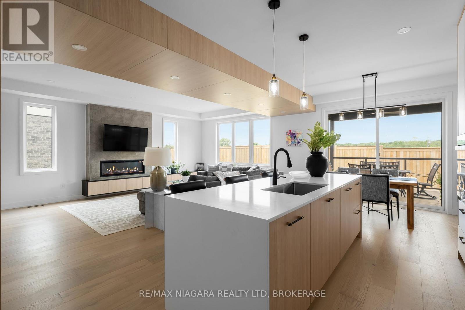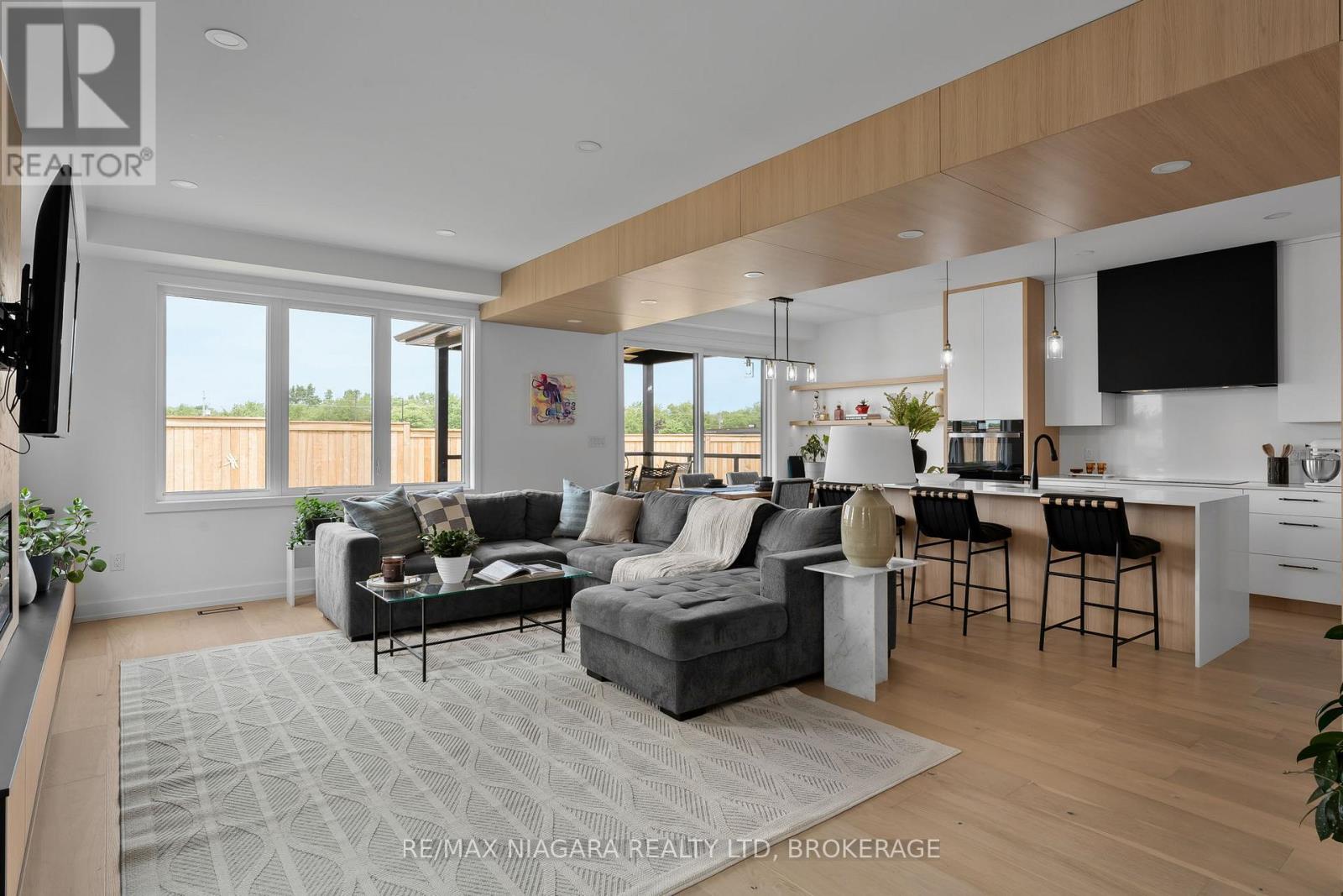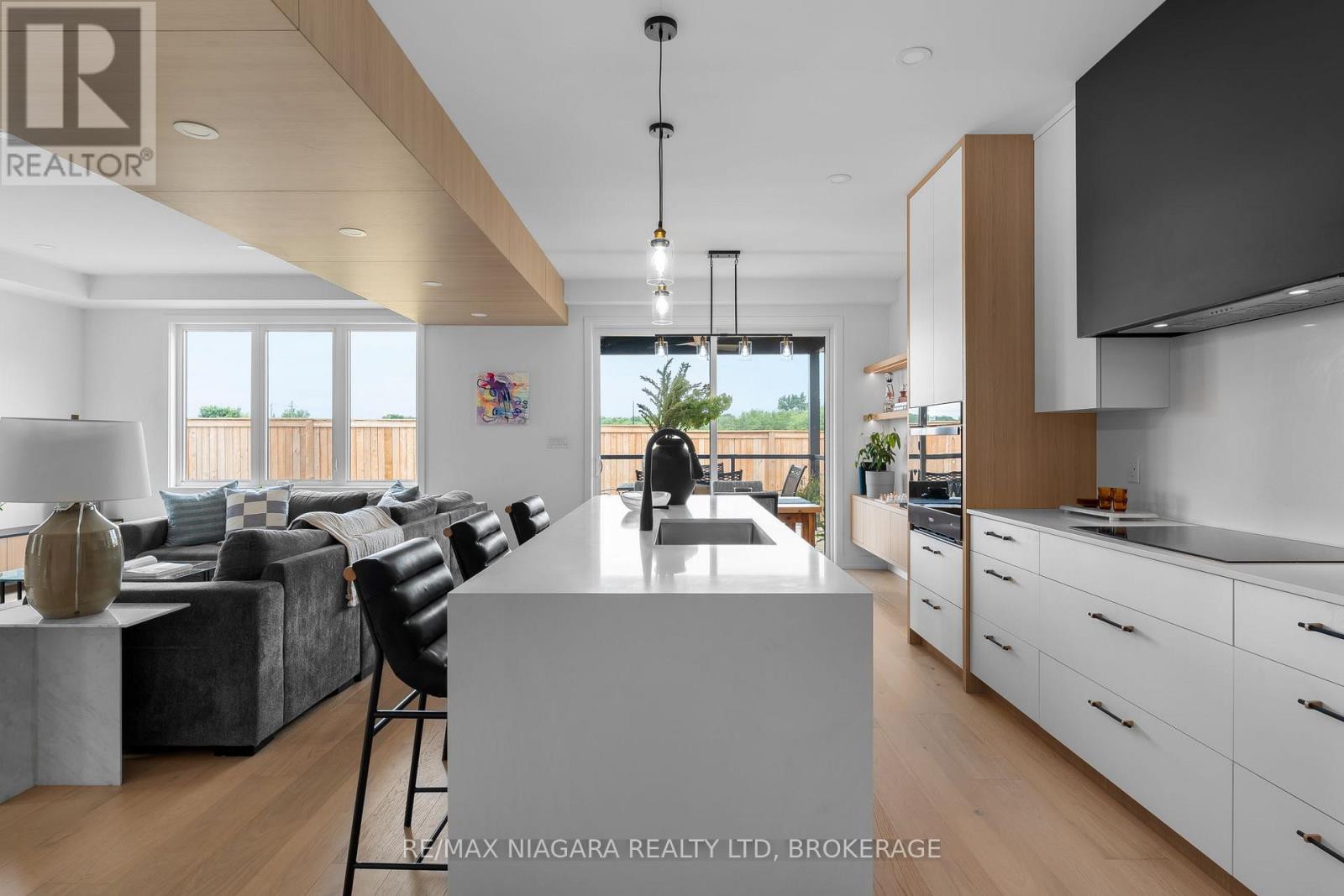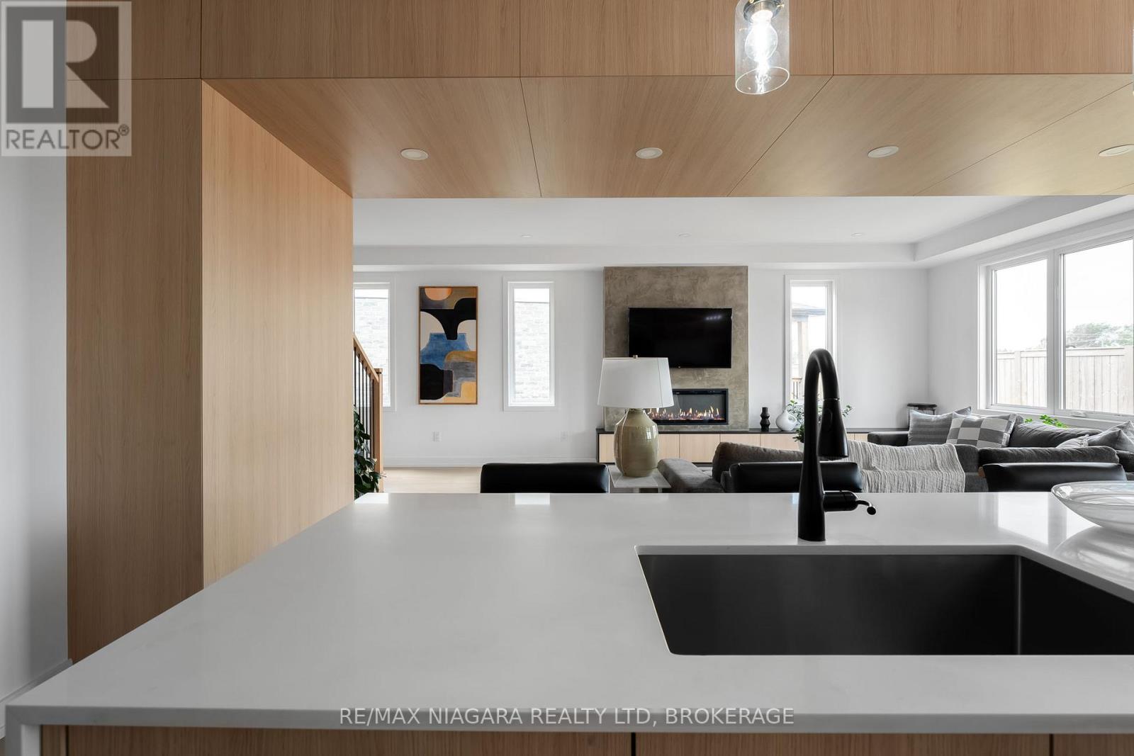 Elevated design. Exceptional versatility. Located on a quiet crescent in the sought-after Garner Estates, 6176 Curlin Crescent is a custom-built Scandinavian-inspired home that stands apart from the typical new build. With its modern stucco exterior and warm light oak finishes throughout, the home blends clean contemporary design with a calm, welcoming atmosphere. A key highlight is the fully finished lower level with its own separate entrance, offering a complete in-law suite with a full kitchen, bedroom, bathroom, living area, and laundry. Ideal for extended family, guests, or potential rental income, it adds valuable flexibility rarely found in homes in this area. The main floor features a bright open-concept layout with 9-foot ceilings, engineered hardwood floors, and a striking solid oak staircase. The designer kitchen pairs style and function with quartz countertops, a waterfall island, matte black fixtures, wall oven, sleek cooktop, soft-close cabinetry, and a walk-in pantry. The adjoining living and dining areas create a natural space for both entertaining and everyday living. Upstairs offers four spacious bedrooms and three full bathrooms, including two private ensuites, along with a versatile loft lounge perfect for a home office, media space, or playroom. The primary suite features double walk-in closets and a spa-inspired ensuite with a glass shower and double vanity. Minutes from Costco, excellent schools, highway access, and the growing amenities along Lundy's Lane, this home delivers thoughtful design, flexible living space, and lasting value in one of Niagara Falls' most desirable communities. (id:64974)