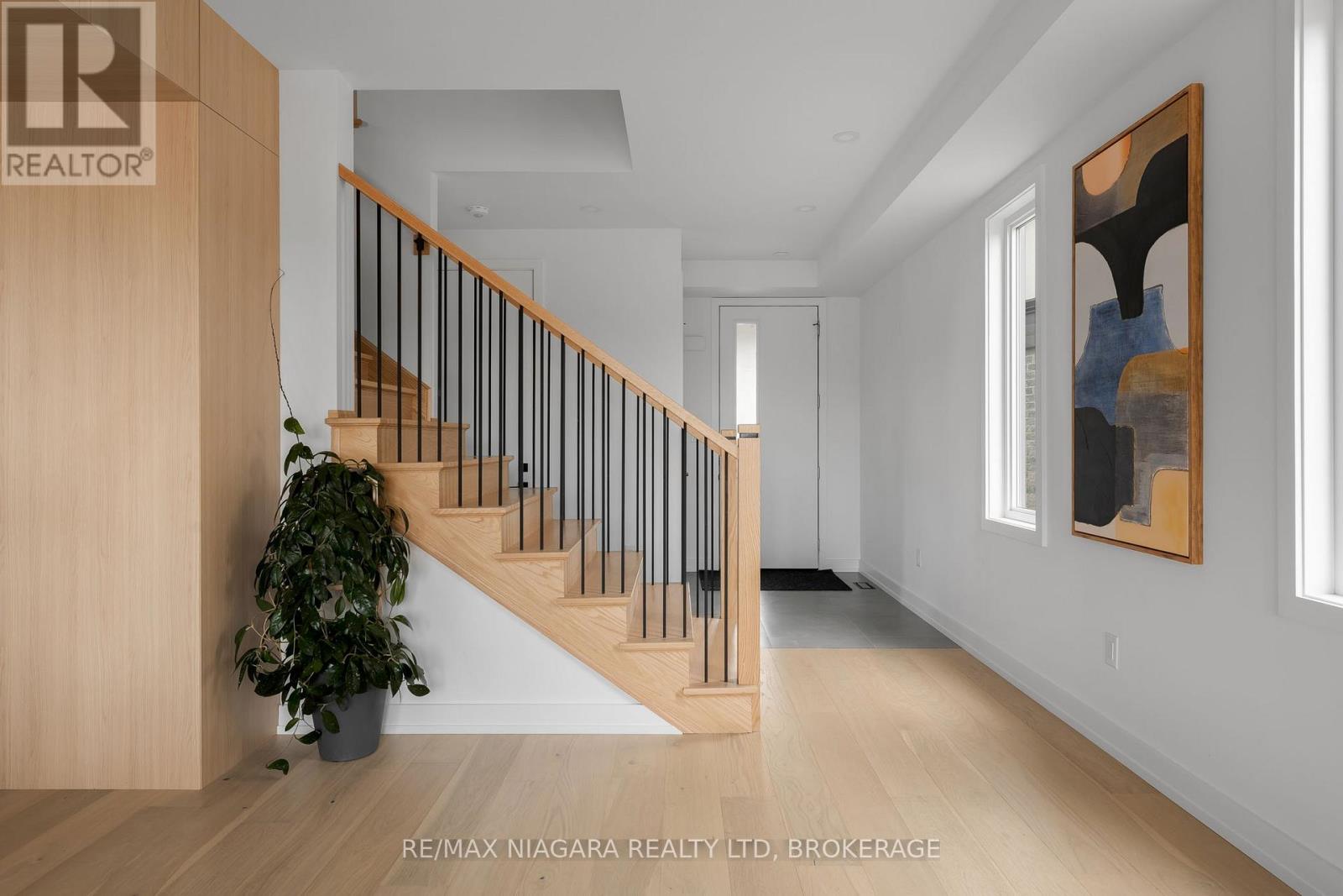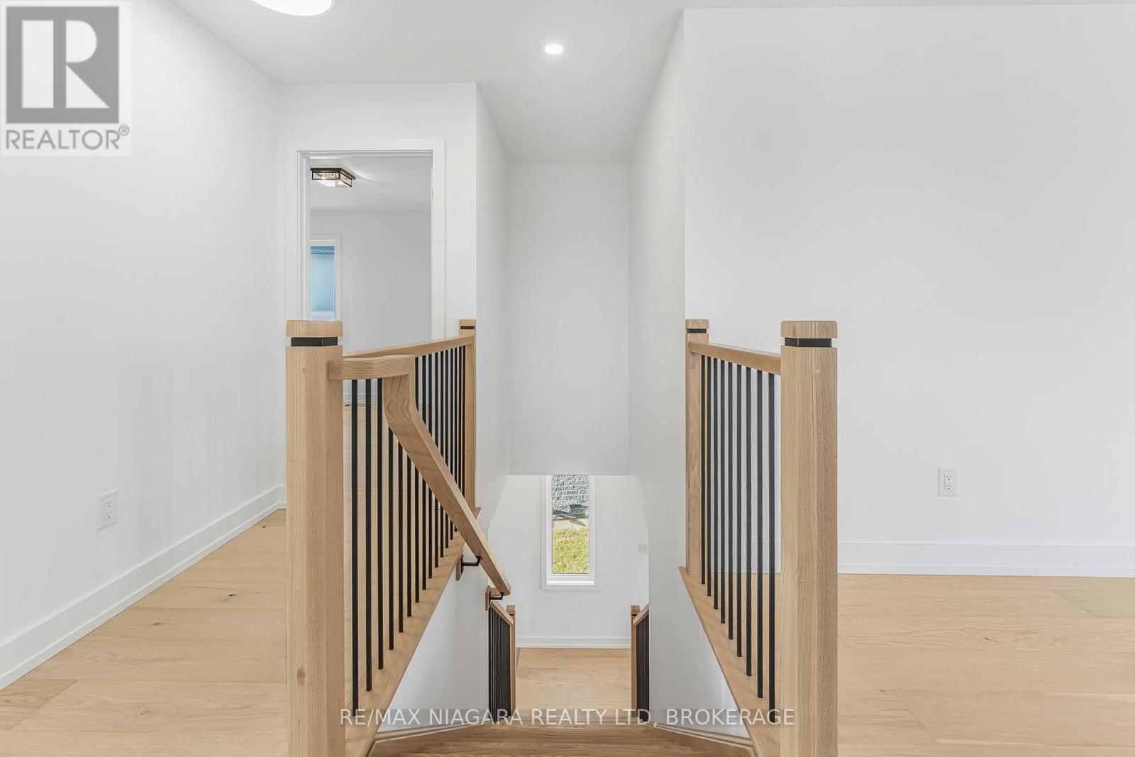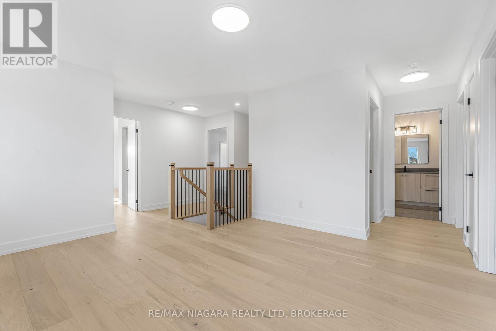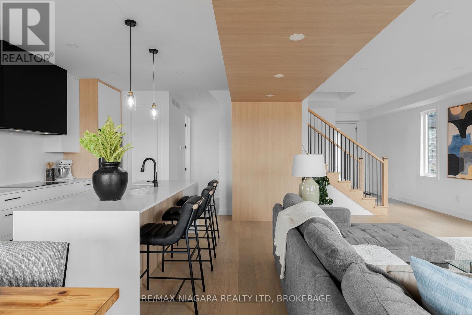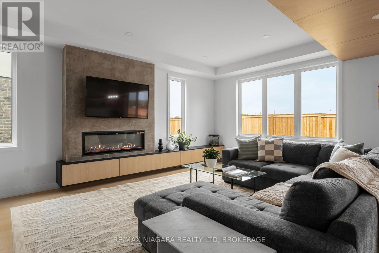 Elevated design. Exceptional versatility. Located on a quiet crescent in the sought-after Garner Estates, 6176 Curlin Crescent is a custom-built Scandinavian-inspired home that stands apart from the typical new build. With its modern stucco exterior and warm light oak finishes throughout, the home blends clean contemporary design with a calm, welcoming atmosphere. A key highlight is the fully finished lower level with its own separate entrance, offering a complete in-law suite with a full kitchen, bedroom, bathroom, living area, and laundry. Ideal for extended family, guests, or potential rental income, it adds valuable flexibility rarely found in homes in this area. The main floor features a bright open-concept layout with 9-foot ceilings, engineered hardwood floors, and a striking solid oak staircase. The designer kitchen pairs style and function with quartz countertops, a waterfall island, matte black fixtures, wall oven, sleek cooktop, soft-close cabinetry, and a walk-in pantry. The adjoining living and dining areas create a natural space for both entertaining and everyday living. Upstairs offers four spacious bedrooms and three full bathrooms, including two private ensuites, along with a versatile loft lounge perfect for a home office, media space, or playroom. The primary suite features double walk-in closets and a spa-inspired ensuite with a glass shower and double vanity. Minutes from Costco, excellent schools, highway access, and the growing amenities along Lundy's Lane, this home delivers thoughtful design, flexible living space, and lasting value in one of Niagara Falls' most desirable communities. (id:64974)