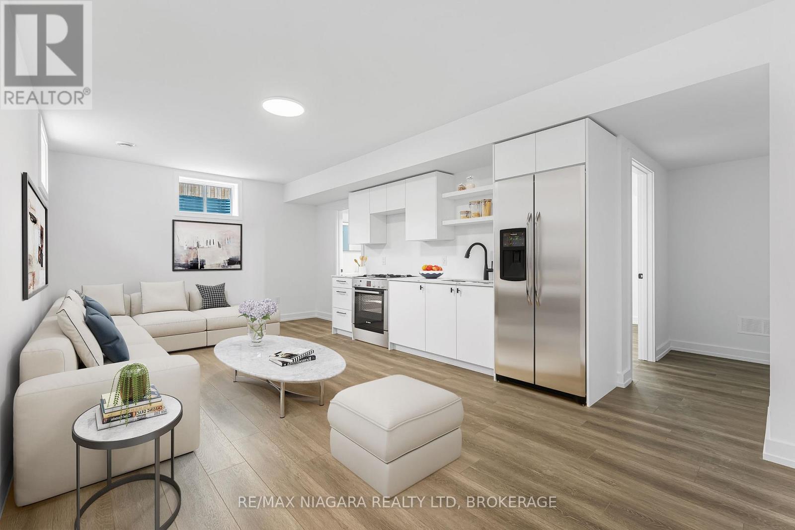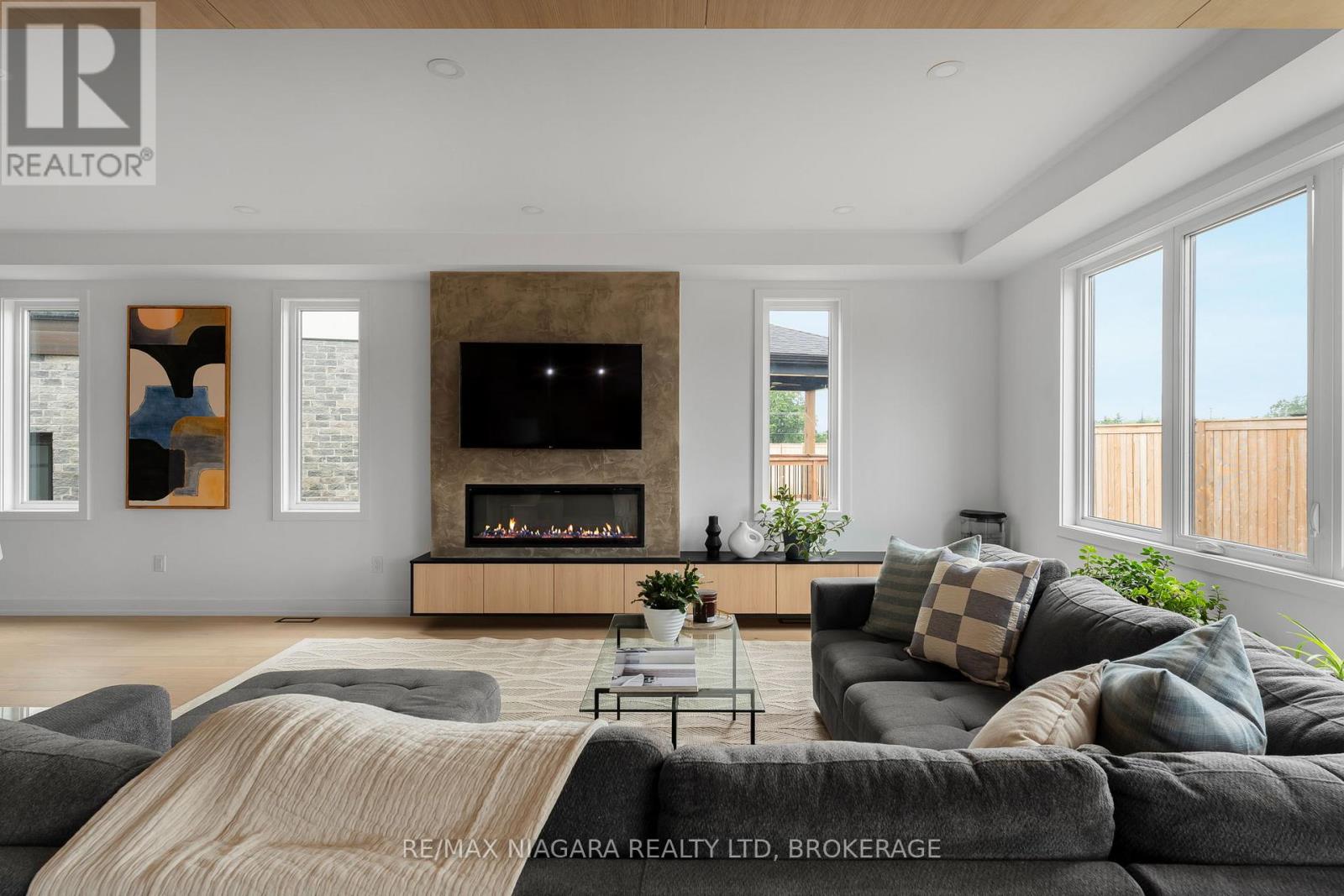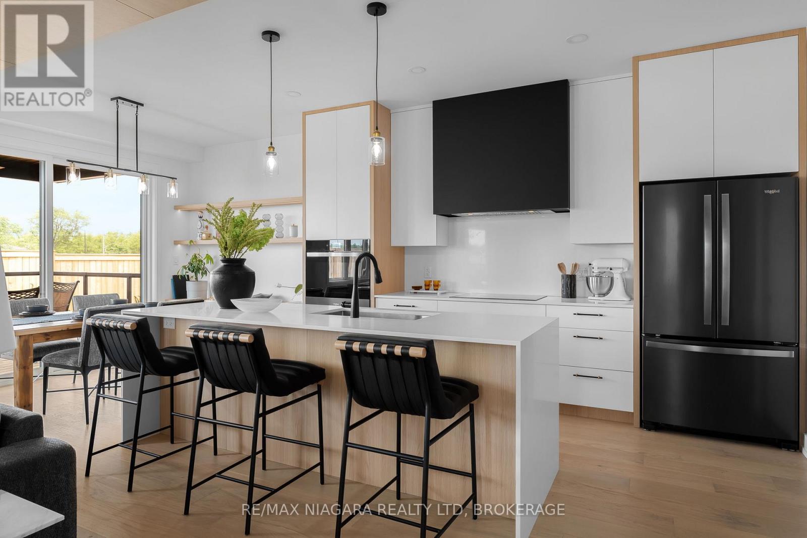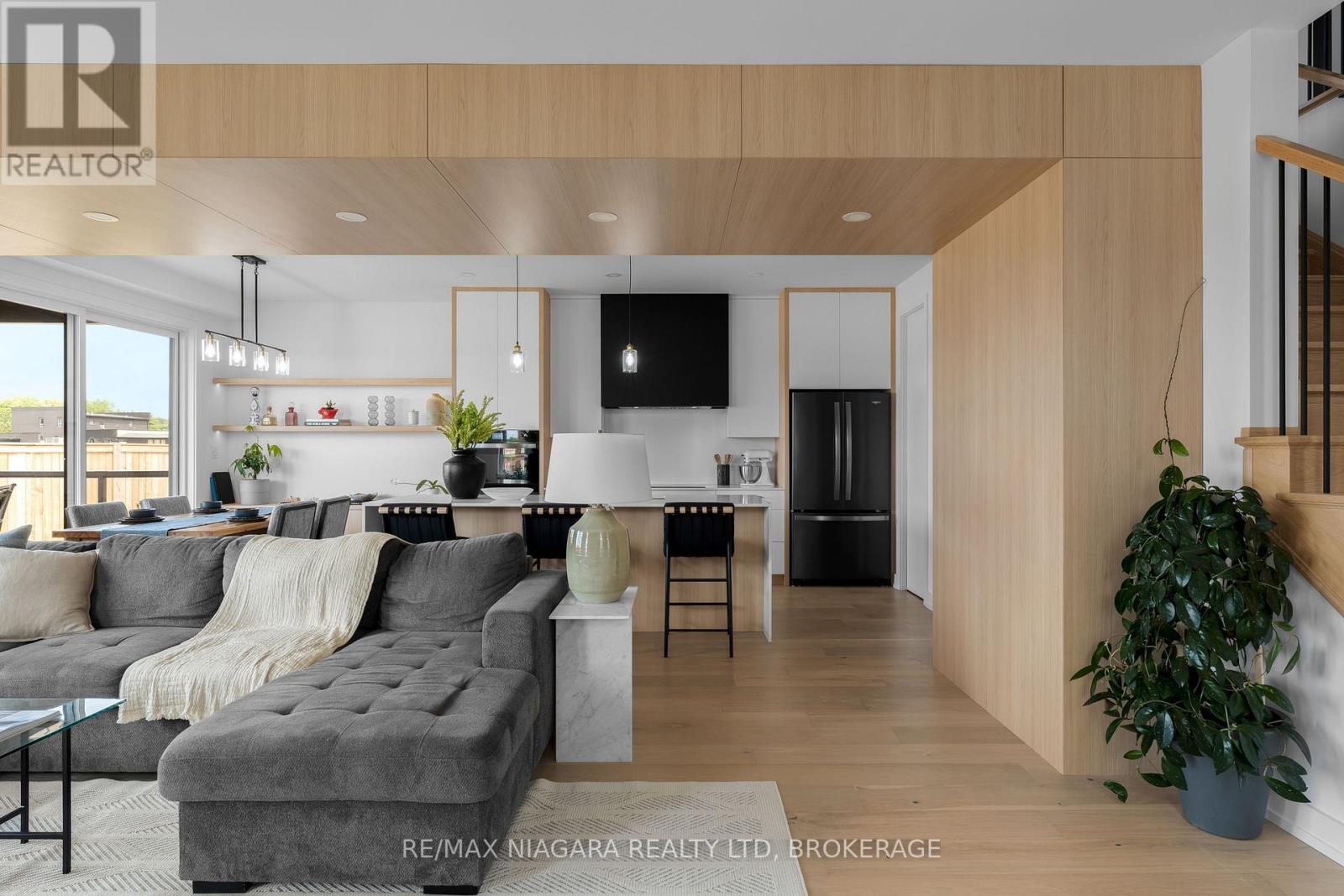 Elevated design. Exceptional versatility. Located on a quiet crescent in the sought-after Garner Estates, 6176 Curlin Crescent is a custom-built Scandinavian-inspired home that stands apart from the typical new build. With its modern stucco exterior and warm light oak finishes throughout, the home blends clean contemporary design with a calm, welcoming atmosphere. A key highlight is the fully finished lower level with its own separate entrance, offering a complete in-law suite with a full kitchen, bedroom, bathroom, living area, and laundry. Ideal for extended family, guests, or potential rental income, it adds valuable flexibility rarely found in homes in this area. The main floor features a bright open-concept layout with 9-foot ceilings, engineered hardwood floors, and a striking solid oak staircase. The designer kitchen pairs style and function with quartz countertops, a waterfall island, matte black fixtures, wall oven, sleek cooktop, soft-close cabinetry, and a walk-in pantry. The adjoining living and dining areas create a natural space for both entertaining and everyday living. Upstairs offers four spacious bedrooms and three full bathrooms, including two private ensuites, along with a versatile loft lounge perfect for a home office, media space, or playroom. The primary suite features double walk-in closets and a spa-inspired ensuite with a glass shower and double vanity. Minutes from Costco, excellent schools, highway access, and the growing amenities along Lundy's Lane, this home delivers thoughtful design, flexible living space, and lasting value in one of Niagara Falls' most desirable communities. (id:64974)