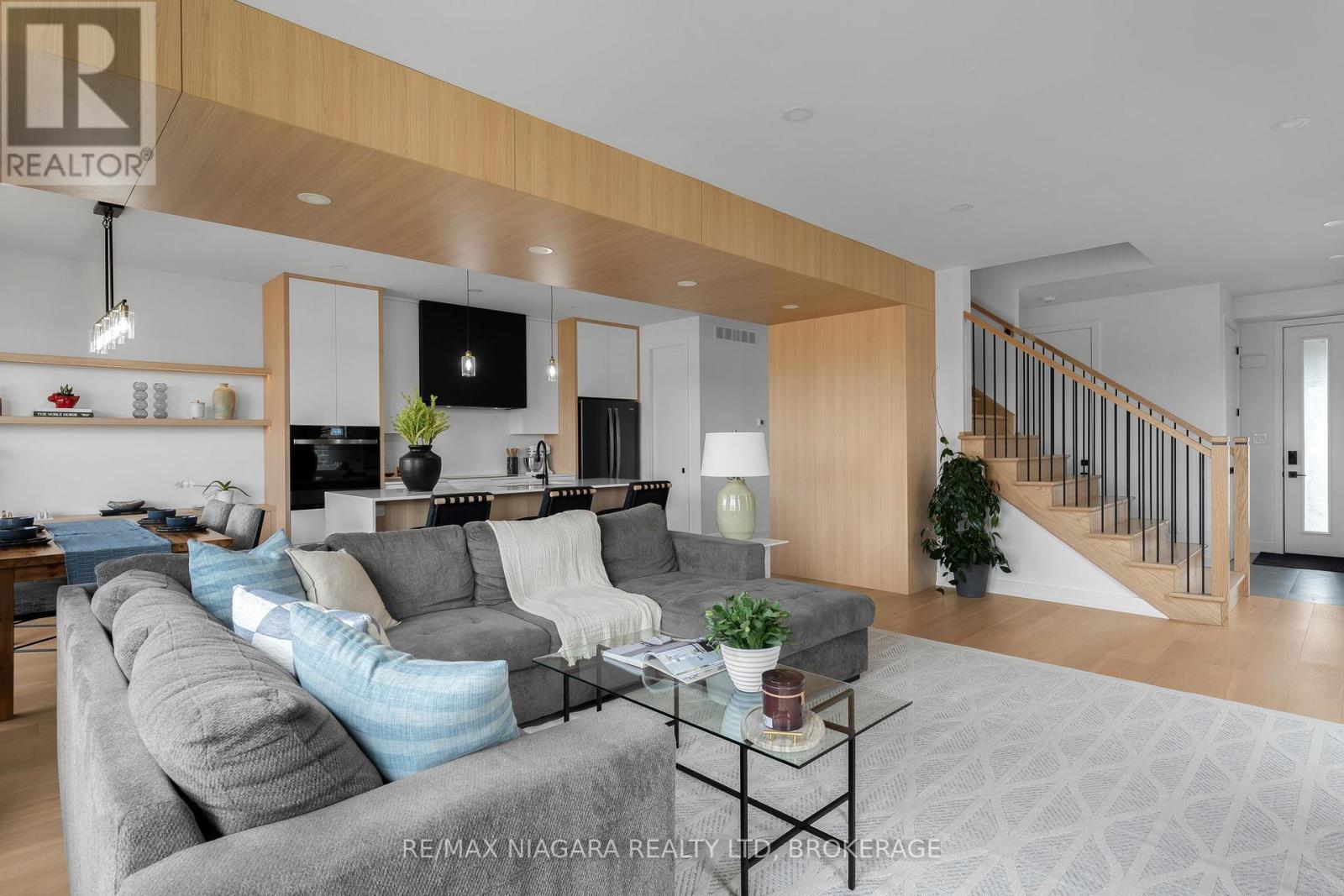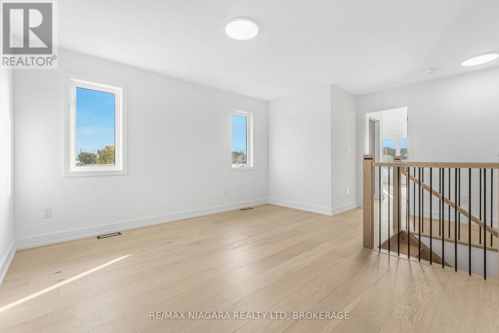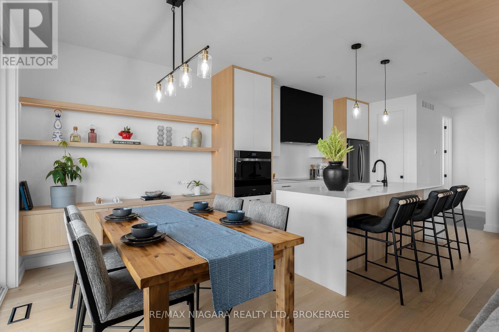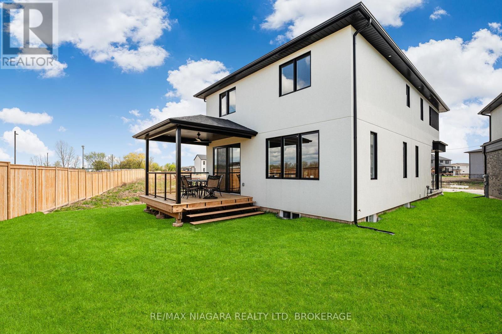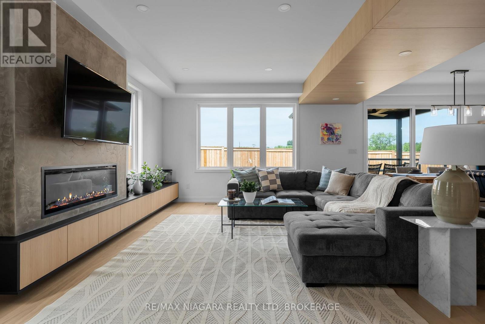Elevated design. Exceptional versatility. Located on a quiet crescent in the sought-after Garner Estates, 6176 Curlin Crescent is a custom-built Scandinavian-inspired home that stands apart from the typical new build. With its modern stucco exterior and warm light oak finishes throughout, the home blends clean contemporary design with a calm, welcoming atmosphere. A key highlight is the fully finished lower level with its own separate entrance, offering a complete in-law suite with a full kitchen, bedroom, bathroom, living area, and laundry. Ideal for extended family, guests, or potential rental income, it adds valuable flexibility rarely found in homes in this area. The main floor features a bright open-concept layout with 9-foot ceilings, engineered hardwood floors, and a striking solid oak staircase. The designer kitchen pairs style and function with quartz countertops, a waterfall island, matte black fixtures, wall oven, sleek cooktop, soft-close cabinetry, and a walk-in pantry. The adjoining living and dining areas create a natural space for both entertaining and everyday living. Upstairs offers four spacious bedrooms and three full bathrooms, including two private ensuites, along with a versatile loft lounge perfect for a home office, media space, or playroom. The primary suite features double walk-in closets and a spa-inspired ensuite with a glass shower and double vanity. Minutes from Costco, excellent schools, highway access, and the growing amenities along Lundy's Lane, this home delivers thoughtful design, flexible living space, and lasting value in one of Niagara Falls' most desirable communities. (id:64974)