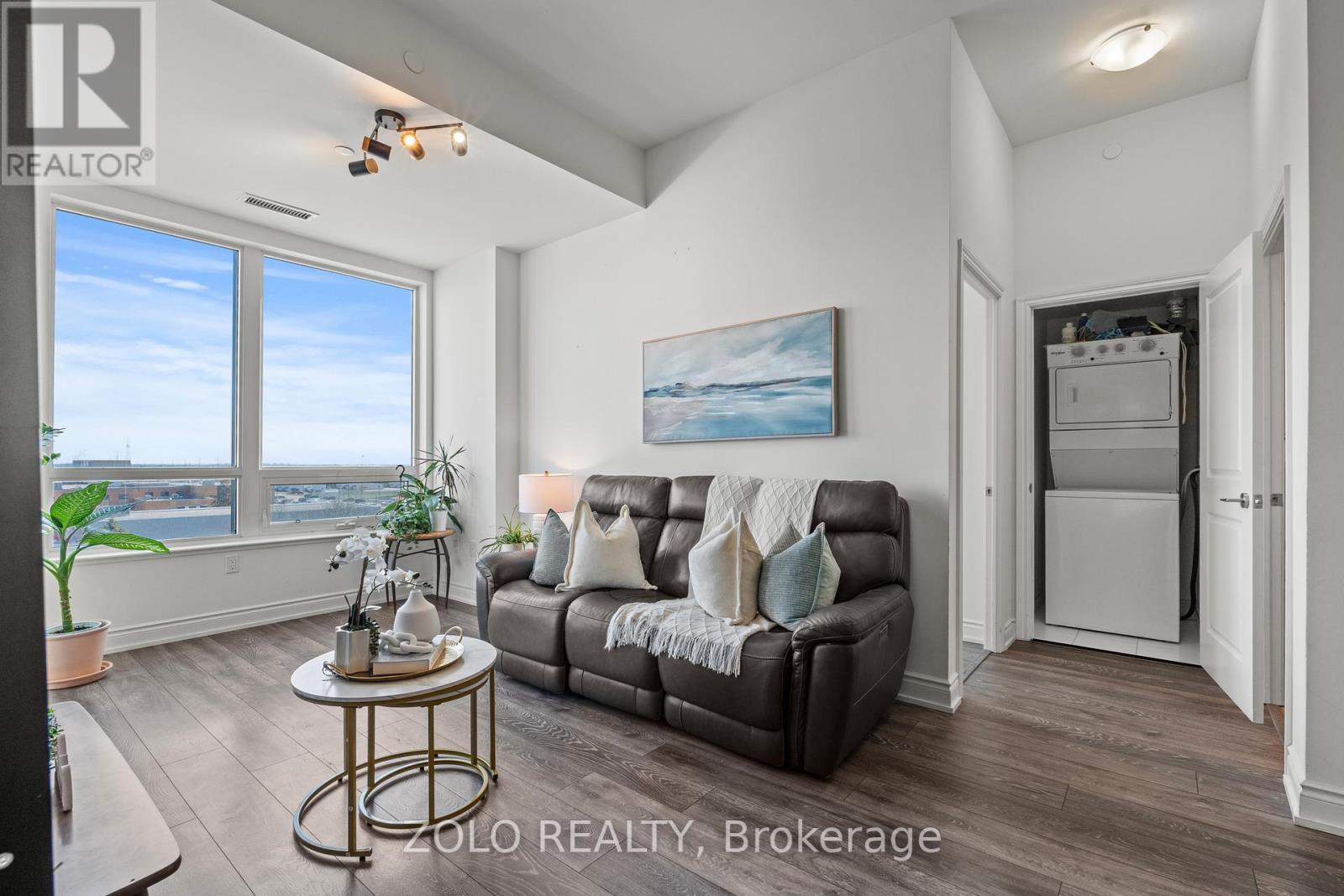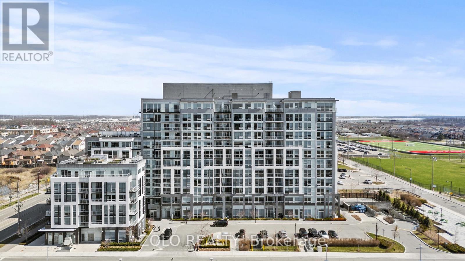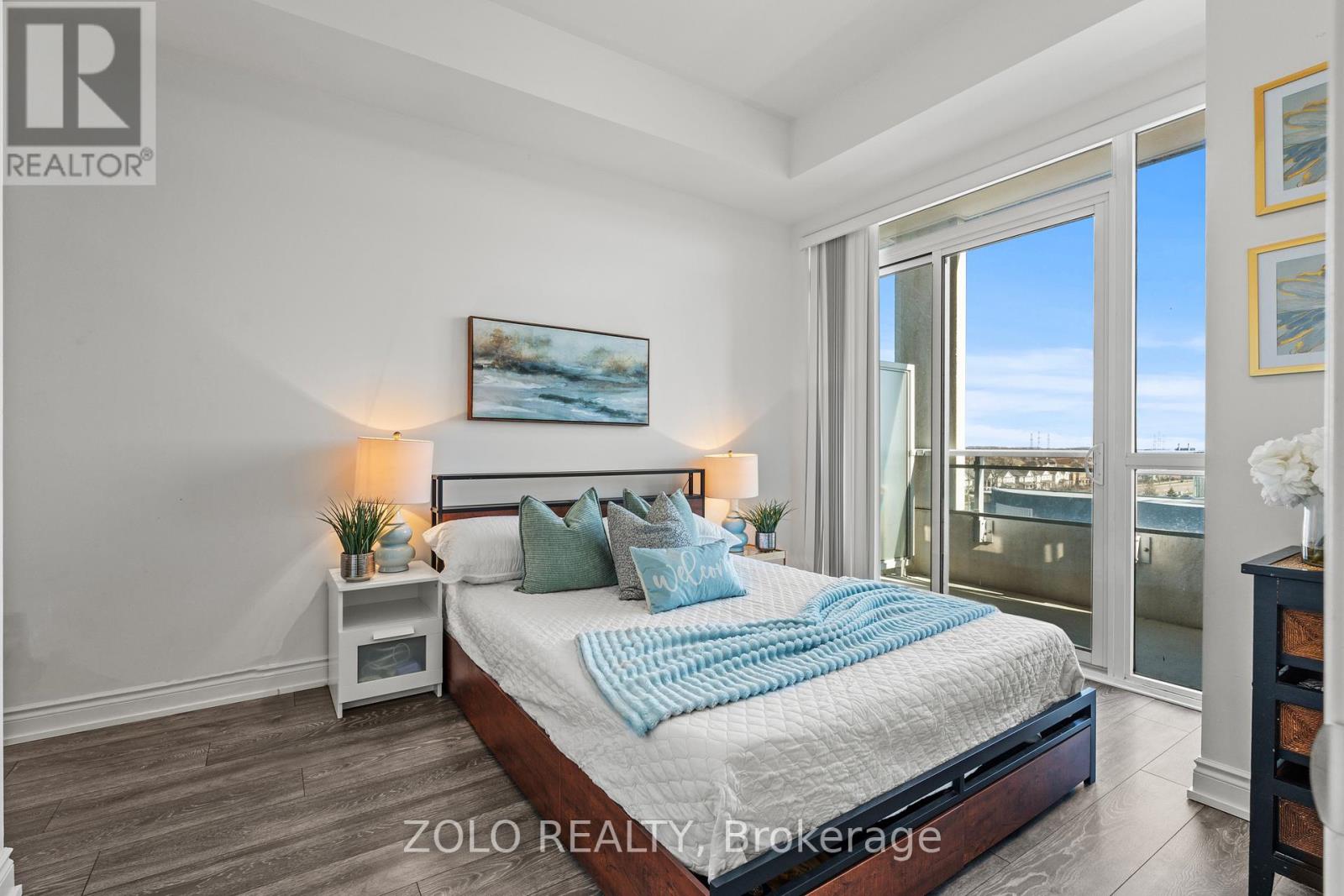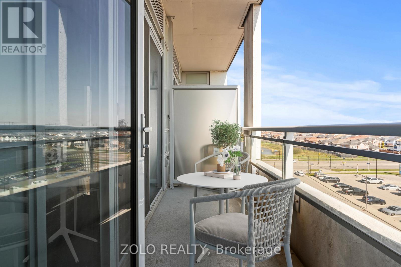 Picture this... It's Saturday morning, the coffee is brewing, sunlight is pouring through the oversized windows, and from your 6th floor balcony you're watching your kids' soccer game unfold at Lions Sports Park right below you. You didn't drive anywhere. You just stepped outside. This is life at Art on Main. Your family has outgrown the smaller apartment but you're not quite ready for the full detached commitment.. This beautifully appointed 2-bedroom + den gives you the space you actually need. Inside this 920+ sqft unit, you're greeted with 10-foot ceilings and beautiful open concept layout. The den has sliding doors and large enough to be a proper kids' bedroom or home office. One of the few units with the luxury of storage locker on the same floor so the stroller, the bikes, and the camping gear are all within reach. With one underground parking spot you never have to scrape windshields in January again! Come summer, the rooftop deck and outdoor pool become your backyard. The gym is downstairs when motivation strikes and when grandparents visit, guest suites mean nobody's sleeping on the pullout. Did your partner take the car today? Doesn't matter. You don't need it. Step outside and everything your family needs couldn't be closer. Milton Commons plaza is steps away. The Leisure Centre, Library, Lions Sports Park, and Bishop Reding are practically in your backyard. And when the city calls, the GO station is under 1km away. This is the chapter between where you were and where you're going. Your next home is waiting. *Virtual staging on balcony* (id:64974)