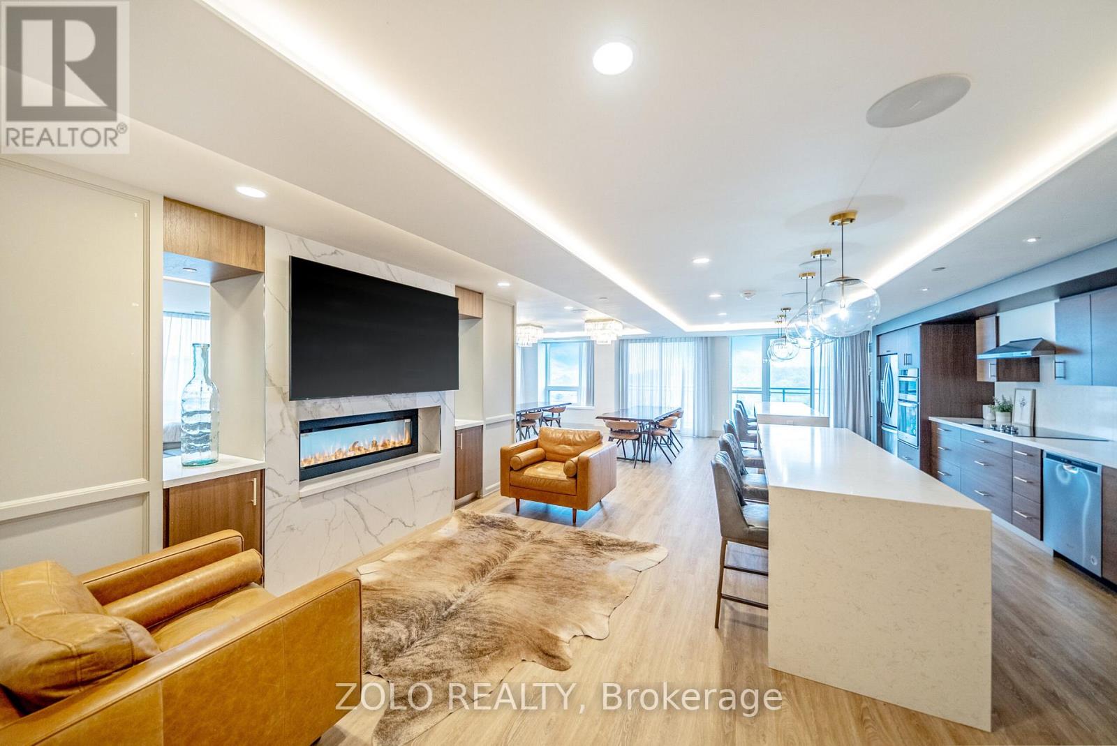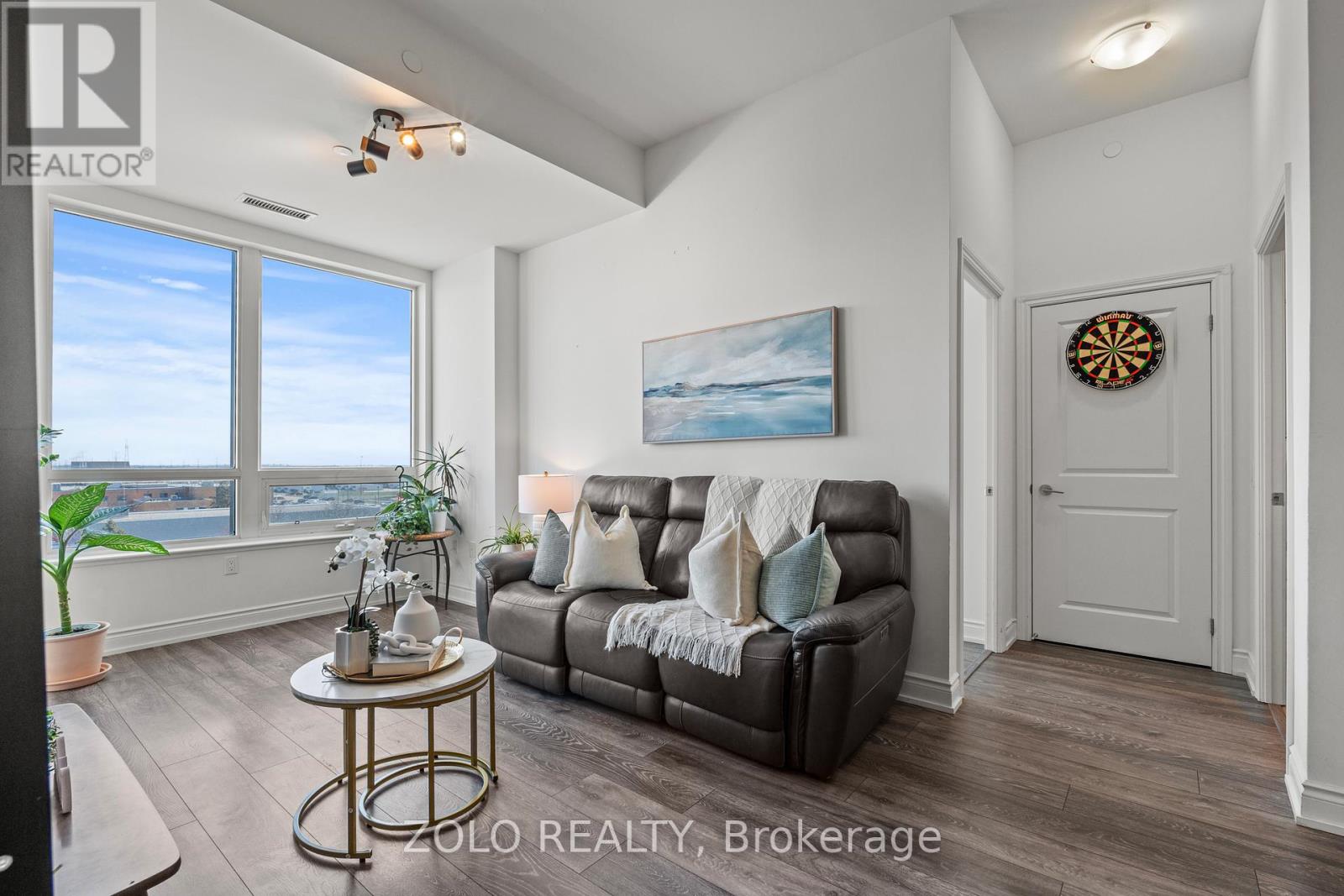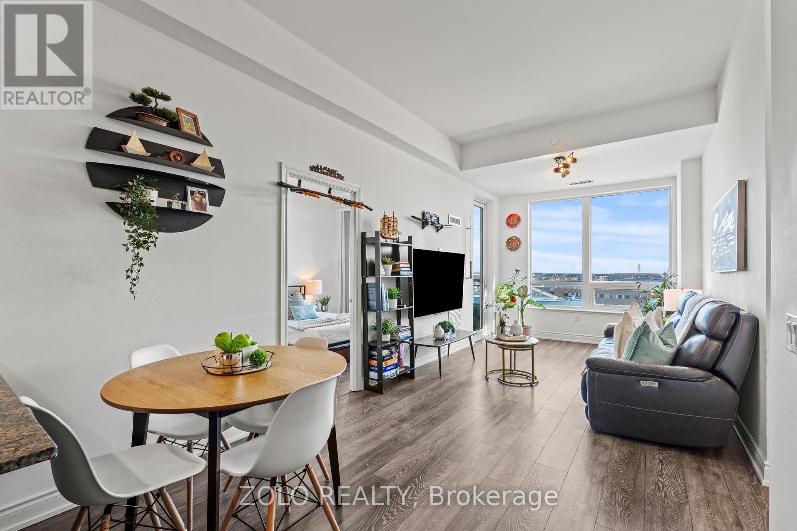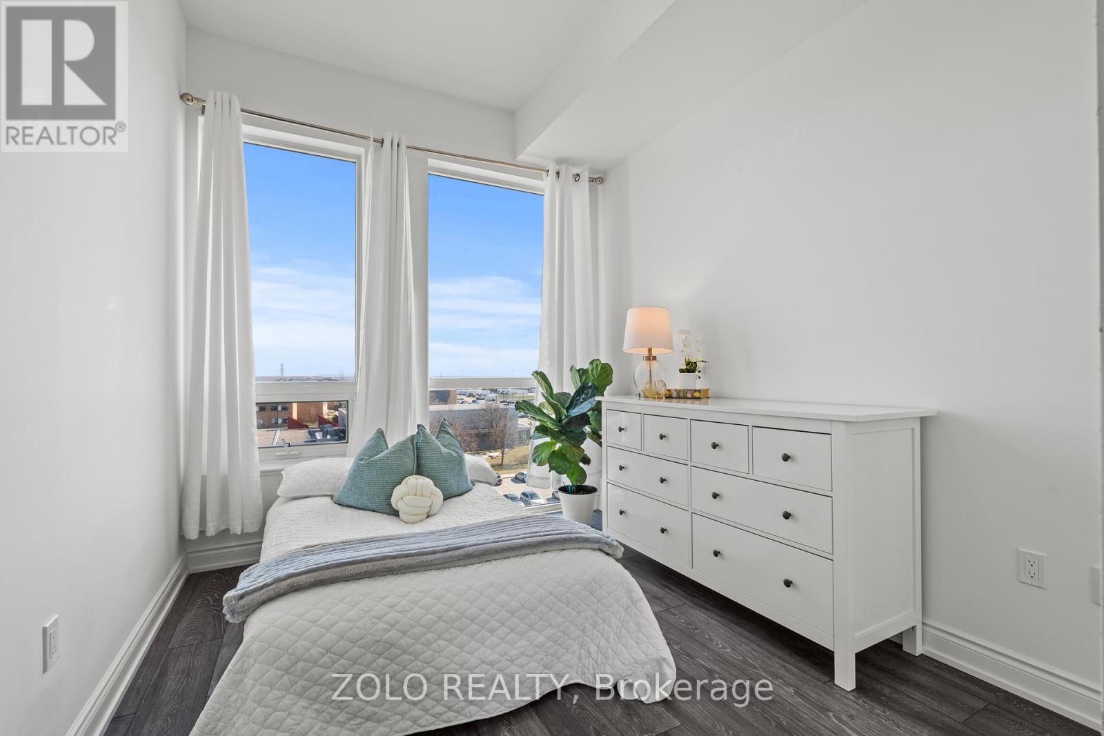 Picture this... It's Saturday morning, the coffee is brewing, sunlight is pouring through the oversized windows, and from your 6th floor balcony you're watching your kids' soccer game unfold at Lions Sports Park right below you. You didn't drive anywhere. You just stepped outside. This is life at Art on Main. Your family has outgrown the smaller apartment but you're not quite ready for the full detached commitment.. This beautifully appointed 2-bedroom + den gives you the space you actually need. Inside this 920+ sqft unit, you're greeted with 10-foot ceilings and beautiful open concept layout. The den has sliding doors and large enough to be a proper kids' bedroom or home office. One of the few units with the luxury of storage locker on the same floor so the stroller, the bikes, and the camping gear are all within reach. With one underground parking spot you never have to scrape windshields in January again! Come summer, the rooftop deck and outdoor pool become your backyard. The gym is downstairs when motivation strikes and when grandparents visit, guest suites mean nobody's sleeping on the pullout. Did your partner take the car today? Doesn't matter. You don't need it. Step outside and everything your family needs couldn't be closer. Milton Commons plaza is steps away. The Leisure Centre, Library, Lions Sports Park, and Bishop Reding are practically in your backyard. And when the city calls, the GO station is under 1km away. This is the chapter between where you were and where you're going. Your next home is waiting. *Virtual staging on balcony* (id:64974)