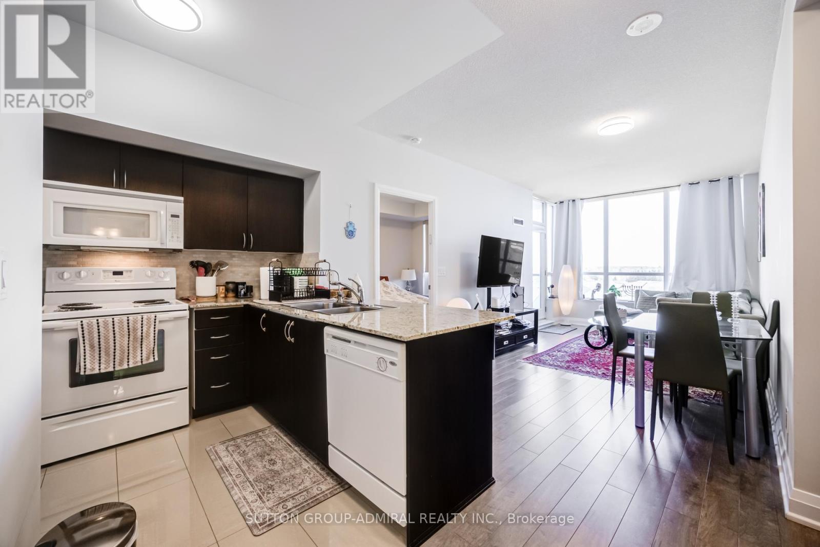 Stunning 1+1 Bed, 2 Bath condo in the heart of Thornhill with unobstructed north-facing views and an abundance of natural light. This spacious unit features 9' ceilings, granite countertops, and an oversized open-concept living and dining area perfect for entertaining. The large den is ideal for a home office or potential second bedroom, offering excellent flexibility. The spacious primary bedroom includes a walk-in closet, providing plenty of storage. Ideally located within walking distance to Promenade Mall, Walmart, schools, restaurants, cafés, public transit, and VIVA bus terminal. A fantastic opportunity in a highly convenient location - a must see! (id:64974)