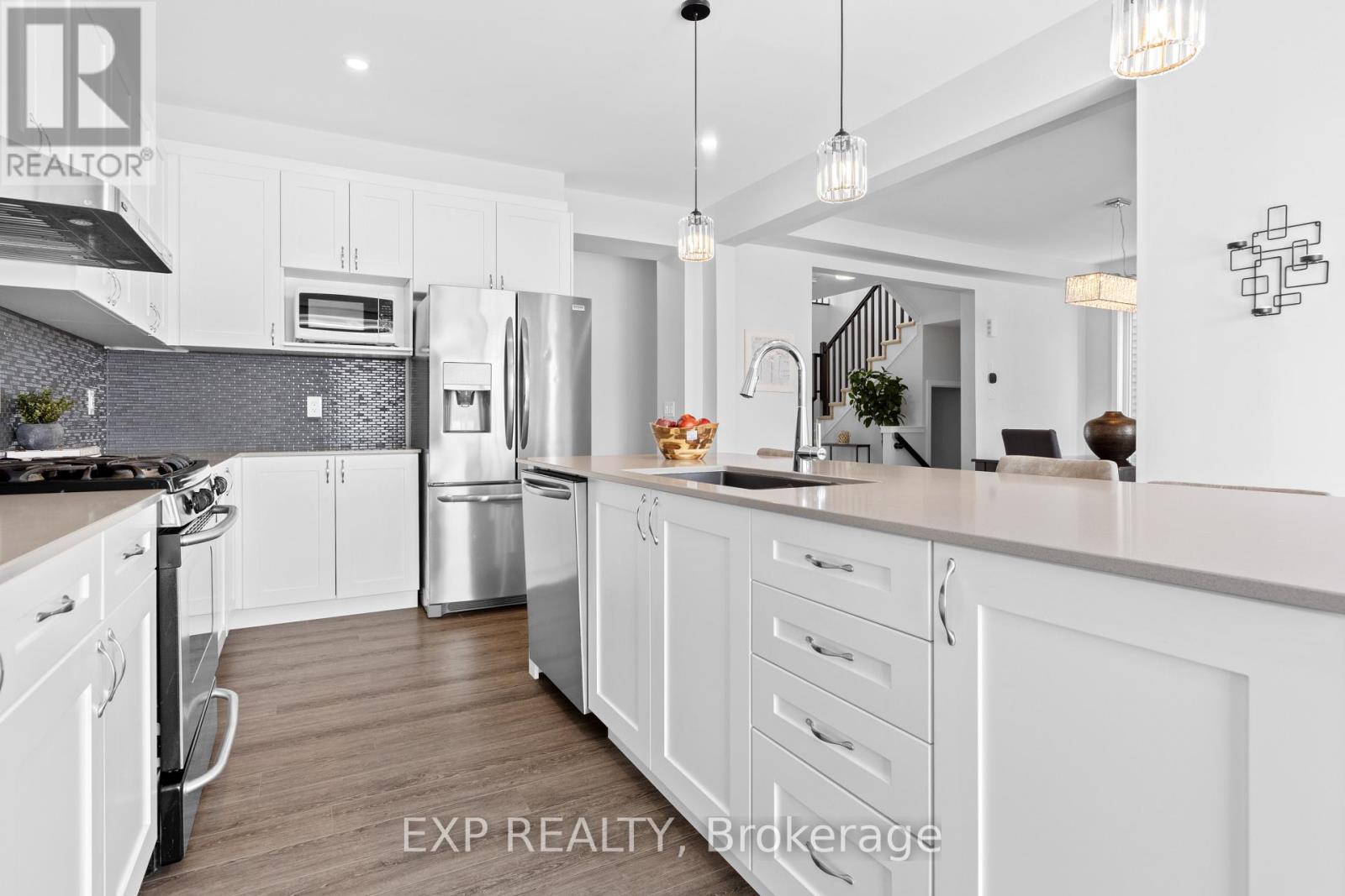 Located in the highly sought-after community of Half Moon Bay, this stunning Mattamy Sycamore model offers over 2,300 sq. ft. of thoughtfully designed living space, perfectly tailored for modern family living. The main level showcases a bright, open-concept layout with stylish luxury vinyl flooring throughout. The upgraded, chef-inspired kitchen is the true heart of the home, featuring stainless steel appliances, abundant cabinetry, upgraded finishes, and a spacious centre island ideal for entertaining or everyday gatherings. Upstairs, retreat to the expansive primary suite complete with a massive walk-in closet and a beautifully appointed 4-piece ensuite with upgraded stone countertops. Two additional generously sized bedrooms and a versatile loft with oversized windows provide plenty of natural light, perfect for a family lounge, play area, or functional home office. Step outside to your own private entertainer's haven. Thoughtfully enhanced with luxury interlock across the front, side, and backyard, the exterior offers exceptional curb appeal and low-maintenance outdoor living. Just steps to schools and parks, and only minutes to the marketplace and everyday amenities, this exceptional home presents an incredible opportunity to join the vibrant Barrhaven community. Don't miss your chance to call this one home! (id:64974)