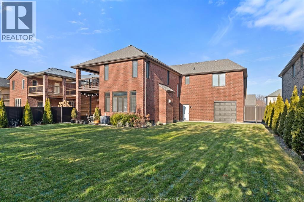 Executive living in the heart of LaSalle! This custom-built 2-storey home offers 4 spacious bedrooms and a thoughtfully designed layout perfect for families and entertaining alike. The luxurious primary suite features a walk-in closet, spa-inspired ensuite, and a private second-floor balcony -- the perfect spot to enjoy your morning coffee in peace. Designed for both everyday living and hosting, the spectacular kitchen anchors the main floor, overlooking a warm and inviting living room with fireplace and a spacious dining area -- an ideal open-concept setting for gathering with family and friends. A junior suite with its own 3-piece ensuite and walk-in closet provides ideal space for guests or multigenerational living. Quality craftsmanship and elegant finishes are showcased throughout the home. Step outside to a beautifully fenced yard lined with mature pine trees for exceptional privacy. A covered patio extends your living space outdoors, making it easy to relax or entertain in any season. Completing the package is a rare 3-car garage offering ample room for vehicles, storage, and hobbies. Located in a prime LaSalle neighbourhood close to top amenities, schools, and parks -- this executive home truly has it all (id:64974)