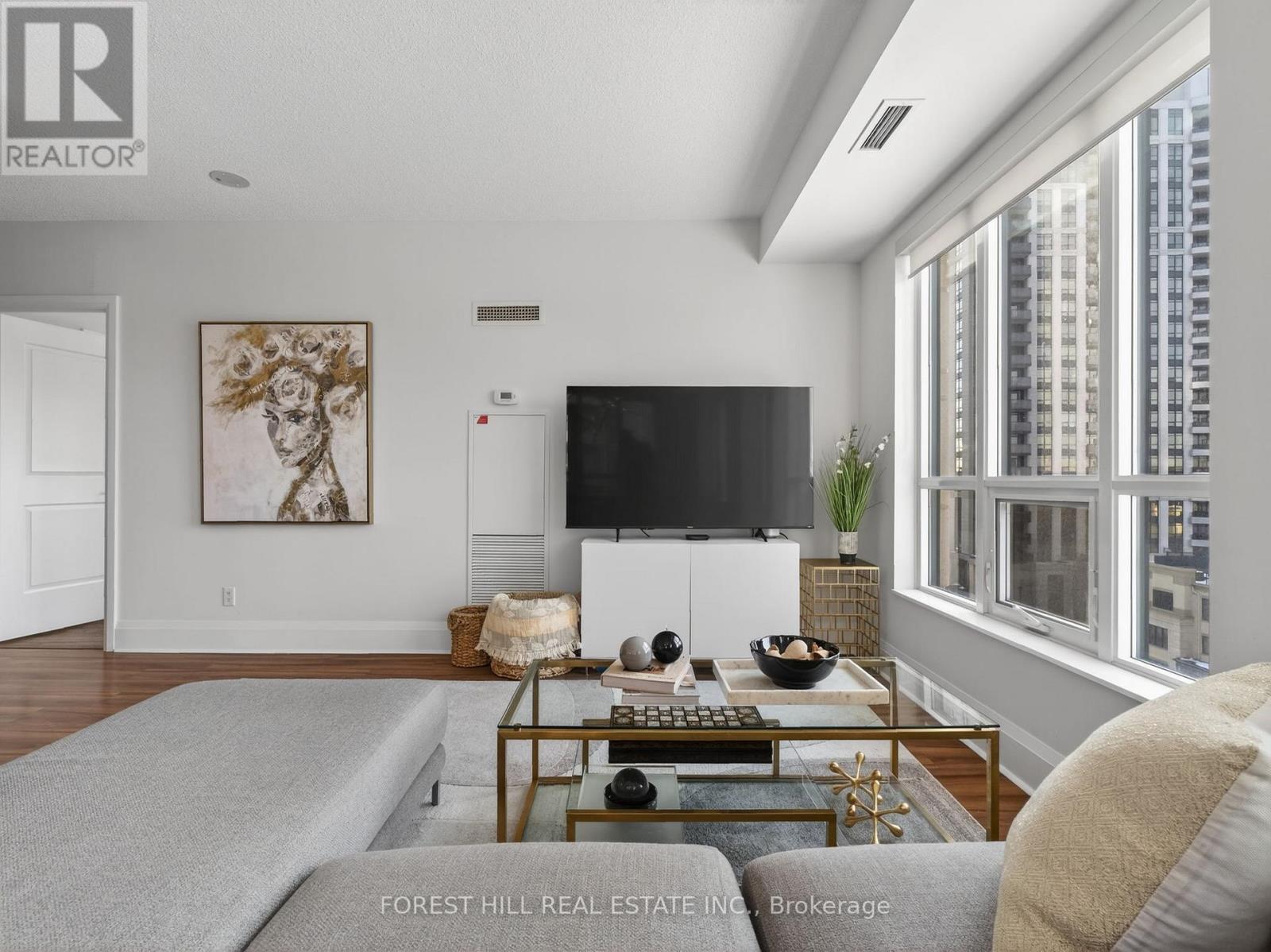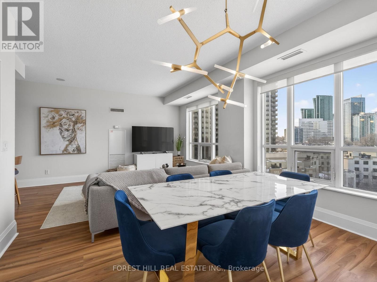 Luxury Avonshire Condo built by Tridel in a prime Yonge & Sheppard location! This bright and quiet corner unit offers 2 bedrooms + den with a premium northeast park view and abundant natural sunlight. Enjoy a fantastic layout with 9 ft ceilings and an open-concept design. Modern kitchen features a center island, quartz countertops, and laminate flooring throughout. Includes 1 parking space and 1 locker. Courtesy shuttle bus service to and from the subway adds exceptional convenience. (id:64974)