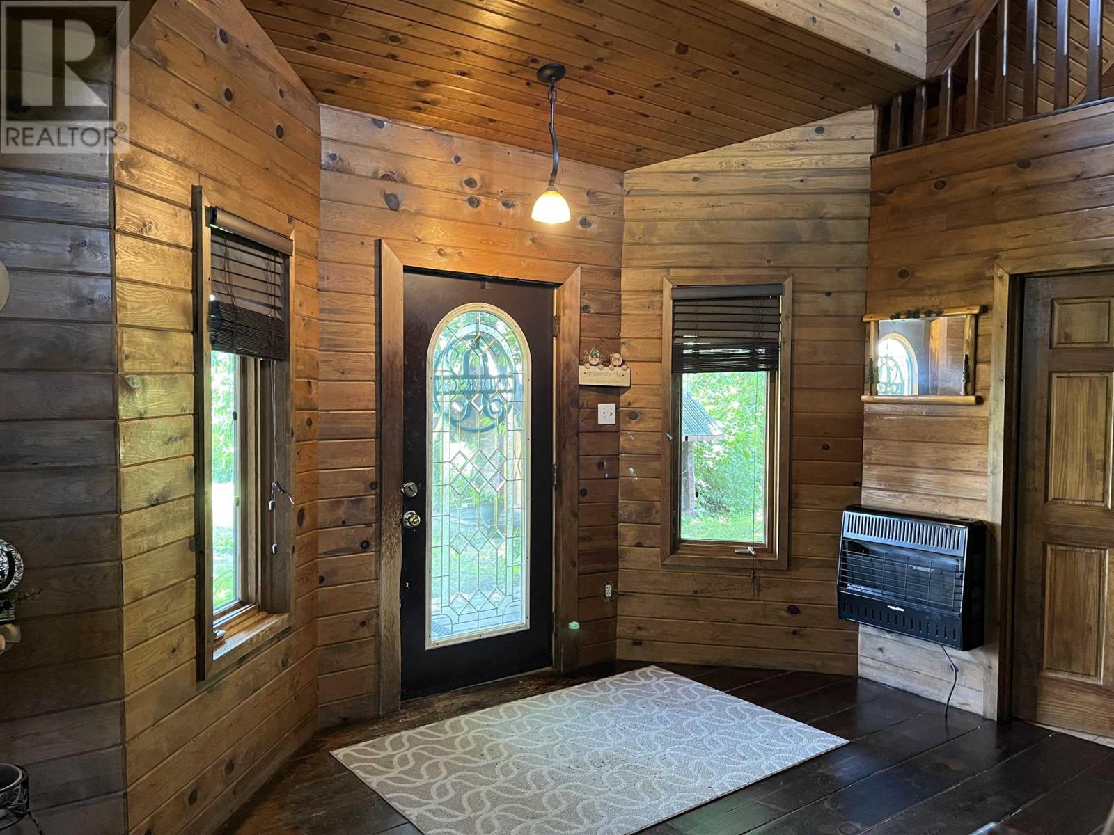 Peace and tranquility. Custom built, off grid home on nearly 160 acres. The home features three bedrooms with 2.5 baths, open kitchen, dining & living room, cathedral ceilings, large entrance, main floor master bedroom with ensuite & walk in closet, and main floor laundry. Up the open staircase are two additional bedrooms, 3 pce bath and den, connected by a walk way that is open to the downstairs living areas. There is an attached two stall garage with attic storage space. Wrap around porch, dormers and wood finishing create a true country feel. The land is well treed with some open fields making it prime habitat for wildlife. Older barn, gardens and fruit trees, to get you started with your home steading dreams. Down a quiet country road that is maintained year round. The home is heated with a wood stove and three direct vent wall mount propane heaters. Flowing well. Solar system with back up generator. (id:64974)