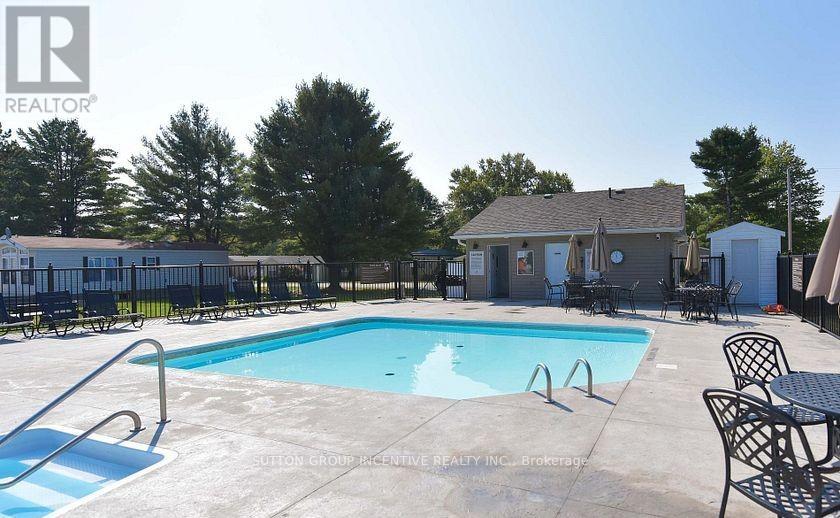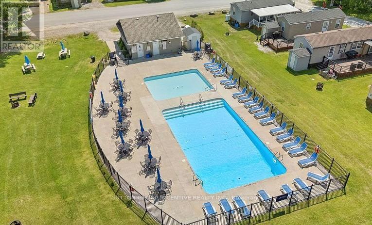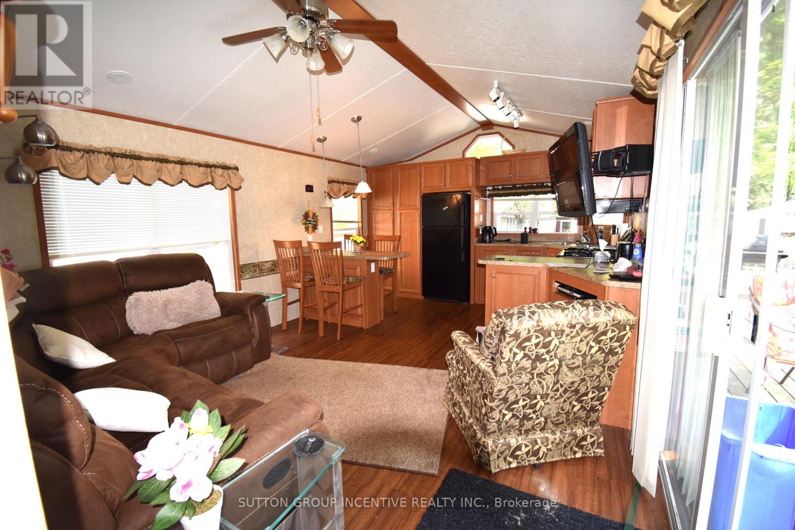 Check out this wonderful 3-season retreat, at Shamrock Bay Resort. Enjoy all that waterfront community living provides including the heated pool, private beach, pickle ball, basketball, horse shoes, community cafe, boat launch/marina. Enjoy the boating life while traveling the waters of Sparrow Lake and the Severn River. The Welcome Centre is a gathering place where information is available and the many resort activities are held especially for kids. Laundry facilities are conveniently located in a separate building a short distance away. The annual fee includes your lot fees, access to all the activities and amenities, hydro, water, sewer, lawn maintenance and of course access to the beach and the Severn River. Shamrock Bay Resort is open from May 1st - October 31st and is a wonderful community. (id:64974)