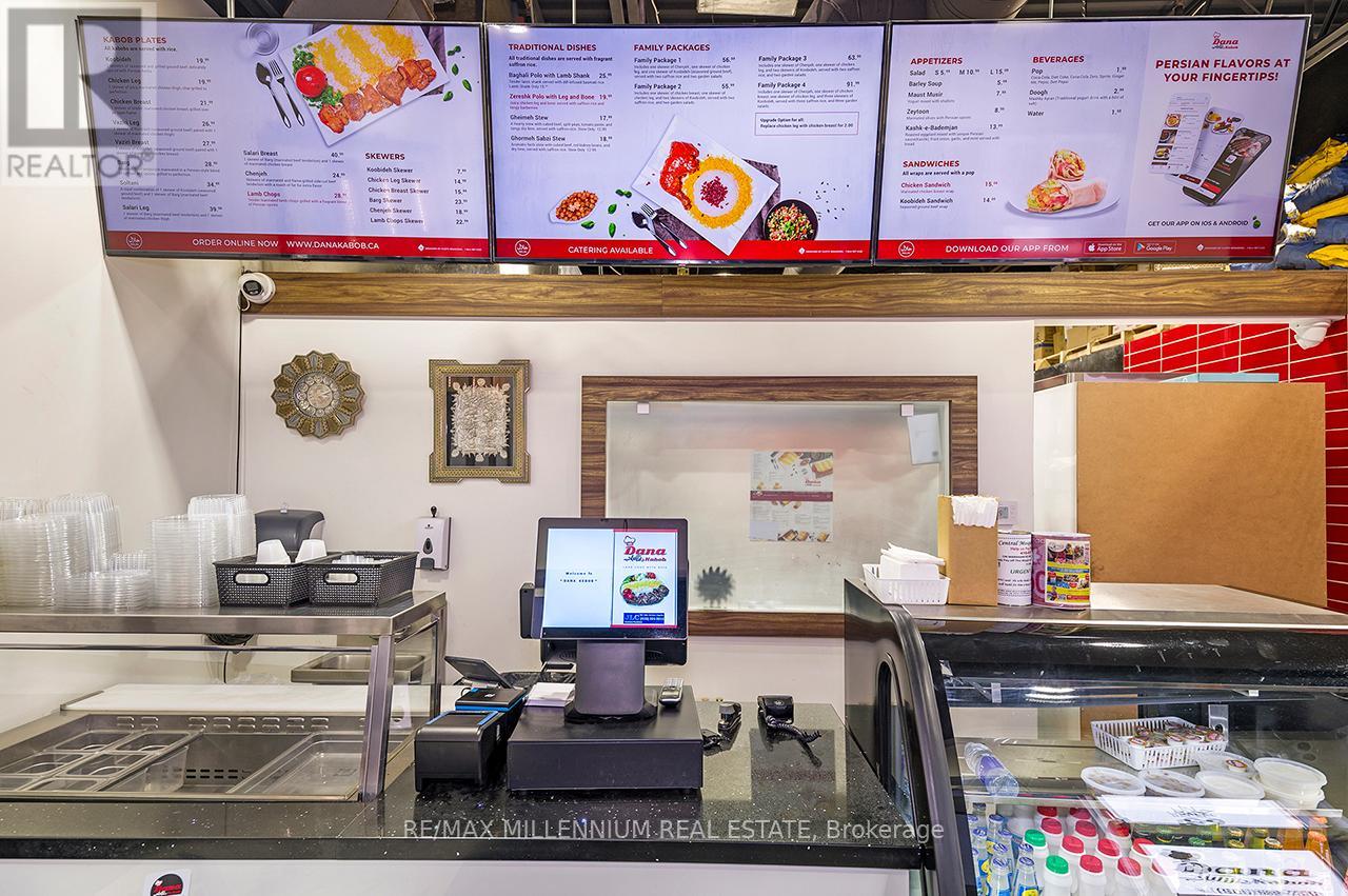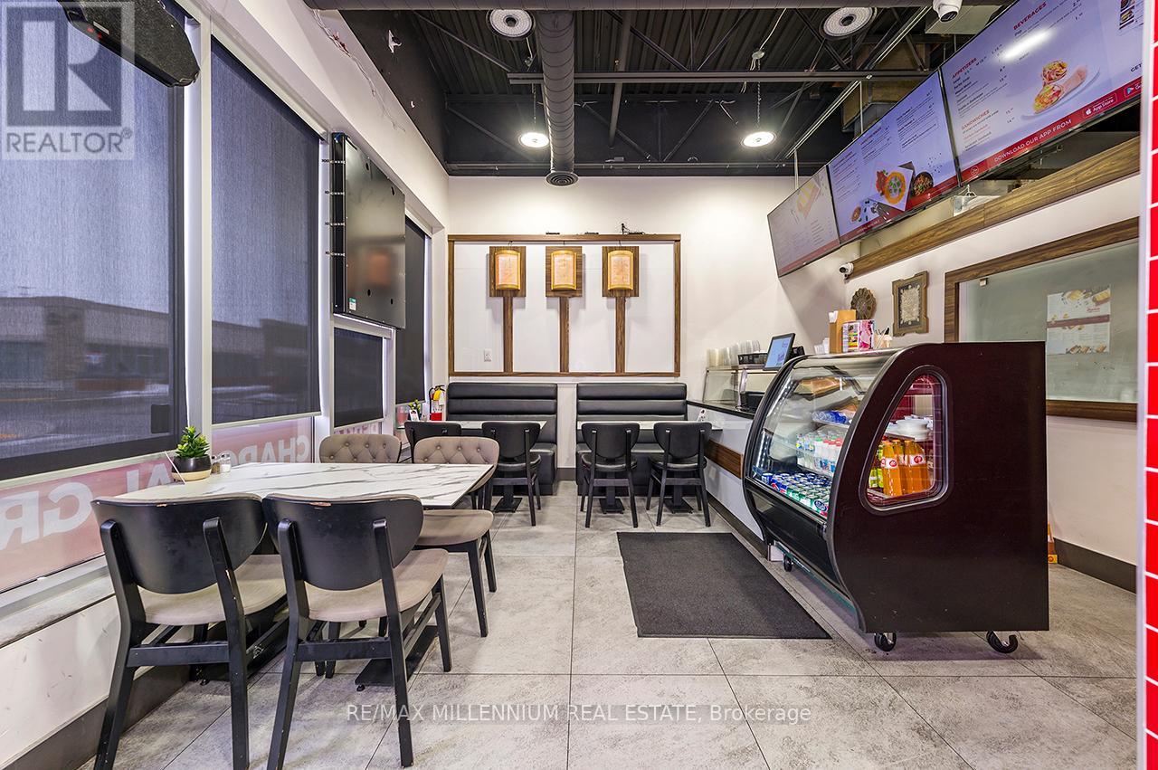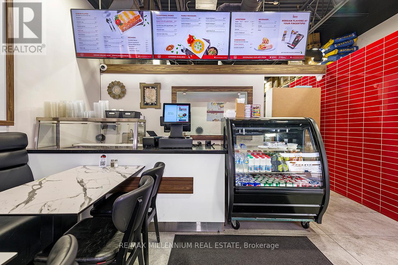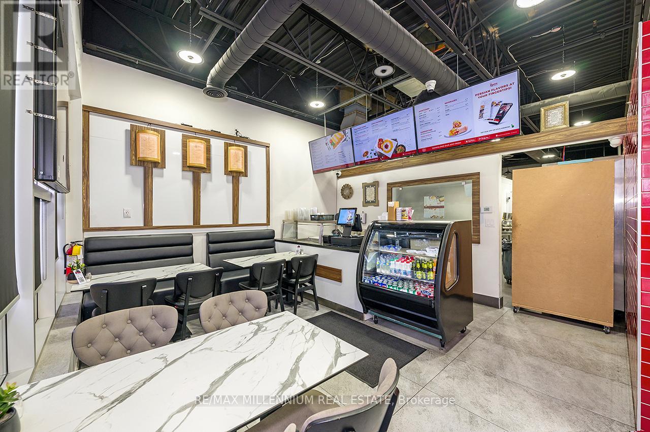 Prestigious Ridgeway Plaza - Exceptional Turnkey Investment OpportunityAn outstanding opportunity to acquire a fully operational, professionally built Persian restaurant in one of Mississauga's most vibrant and high-traffic commercial destinations.Strategically located in the highly sought-after Ridgeway Plaza, this is the only Persian cuisine establishment within the plaza, offering a distinct competitive advantage and strong niche market positioning.The business is exceptionally well-maintained with premium, like-new, high-end equipment throughout. The fully functional commercial kitchen is designed for efficiency and high-volume production, featuring a substantial 14-foot commercial exhaust hood, walk-in freezer, and an impressive 7-foot charcoal grill, along with a comprehensive array of additional top-tier equipment - making this a true turnkey operation.The space also boasts a beautifully designed dining area with elegant finishes and comfortable seating, creating a welcoming atmosphere for guests and supporting strong dine-in, takeout, and delivery revenue streams.Surrounded by dense residential communities, major amenities, and public transit, the location benefits from constant foot traffic and sustained customer flow throughout the day. Favorable lease terms further enhance the investment appeal, supporting healthy margins and long-term profitability.A rare opportunity for investors or experienced restaurateurs to secure a premium asset in oneof Mississauga's most dynamic and in-demand plazas.POSSIBLE TO SELL WITH PROPERTY$$$ (id:64974)