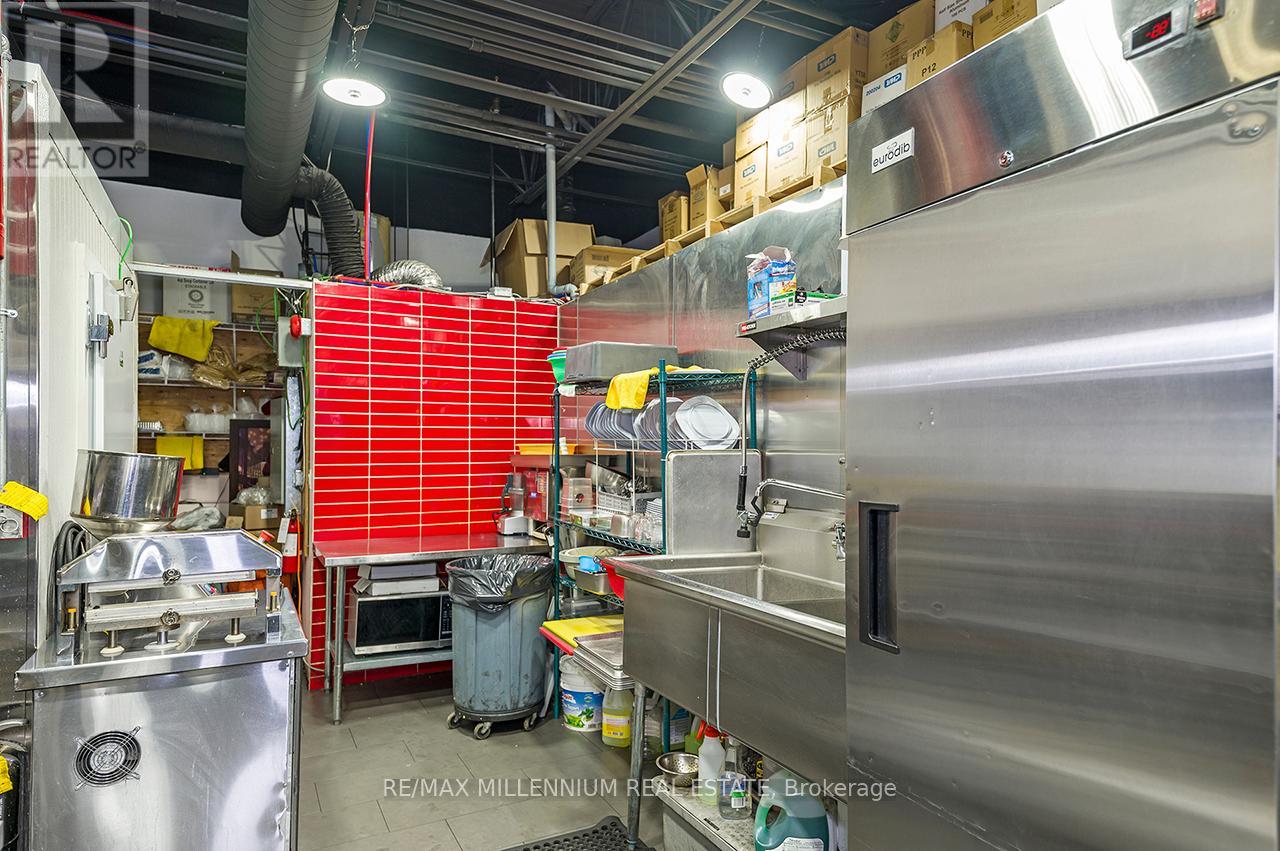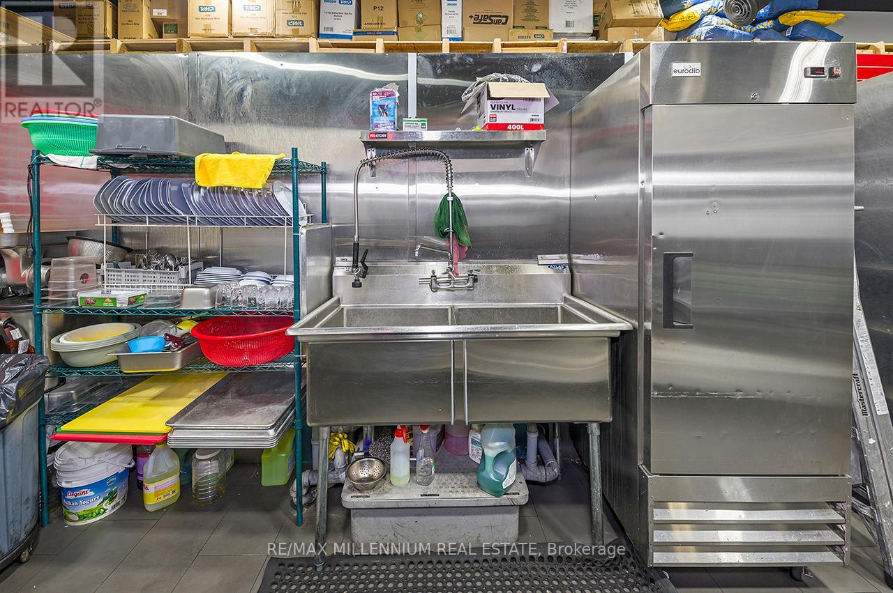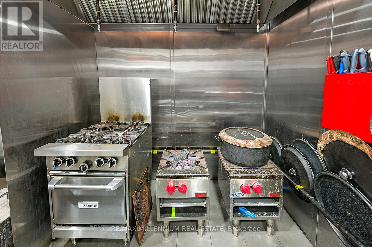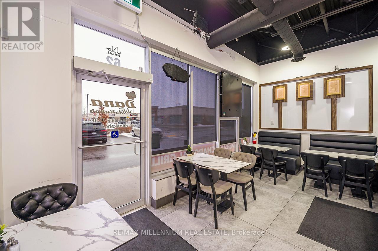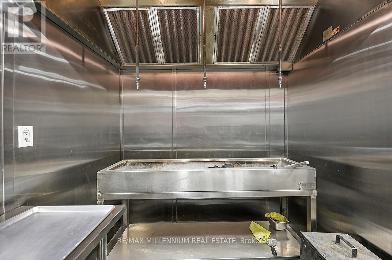 Prestigious Ridgeway Plaza - Exceptional Turnkey Investment OpportunityAn outstanding opportunity to acquire a fully operational, professionally built Persian restaurant in one of Mississauga's most vibrant and high-traffic commercial destinations.Strategically located in the highly sought-after Ridgeway Plaza, this is the only Persian cuisine establishment within the plaza, offering a distinct competitive advantage and strong niche market positioning.The business is exceptionally well-maintained with premium, like-new, high-end equipment throughout. The fully functional commercial kitchen is designed for efficiency and high-volume production, featuring a substantial 14-foot commercial exhaust hood, walk-in freezer, and an impressive 7-foot charcoal grill, along with a comprehensive array of additional top-tier equipment - making this a true turnkey operation.The space also boasts a beautifully designed dining area with elegant finishes and comfortable seating, creating a welcoming atmosphere for guests and supporting strong dine-in, takeout, and delivery revenue streams.Surrounded by dense residential communities, major amenities, and public transit, the location benefits from constant foot traffic and sustained customer flow throughout the day. Favorable lease terms further enhance the investment appeal, supporting healthy margins and long-term profitability.A rare opportunity for investors or experienced restaurateurs to secure a premium asset in oneof Mississauga's most dynamic and in-demand plazas.POSSIBLE TO SELL WITH PROPERTY$$$ (id:64974)