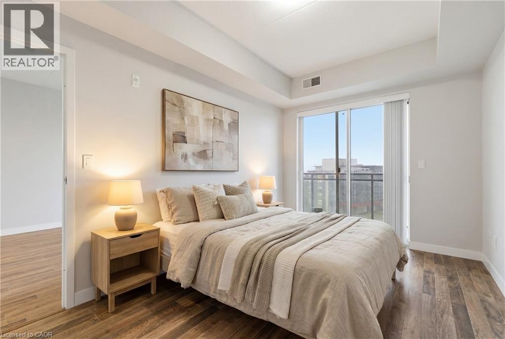 Welcome to an exceptional offering at 62 Balsam Street, Unit H505, a residence that seamlessly blends modern design, convenience, and outstanding investment potential in one of Waterloo’s most sought after locations. Perfectly positioned just steps from Wilfrid Laurier University and within walking distance to University of Waterloo, this is a rare opportunity for both end users and investors seeking strong long term value in a high demand rental market. Inside, you are welcomed by a bright and thoughtfully designed space offering 877 square feet of refined living. Soaring 9 foot ceilings and contemporary finishes create an open and upscale atmosphere throughout. The layout is both functional and stylish, featuring a spacious primary bedroom, an expansive den filled with natural light, and two full bathrooms, an uncommon and highly desirable combination. The kitchen is beautifully appointed with granite countertops, stainless steel appliances, double sinks, and custom cabinetry with soft close detailing, offering the perfect balance of elegance and everyday practicality. One of the most impressive features of this home is the oversized private terrace. This outdoor space is rarely found in condo living and offers two separate walkouts along with sweeping city views. It is the perfect setting for morning coffee, entertaining guests, or simply relaxing above it all. Adding further value and convenience, the unit includes two underground parking spaces and a dedicated storage room, features that are increasingly rare in this prime location. Residents enjoy access to premium building amenities including high speed internet, collaborative study spaces, and a well appointed social lounge. This is more than just a condo. It is a lifestyle opportunity in the heart of Waterloo, where everything you need is just moments away. (id:64974)