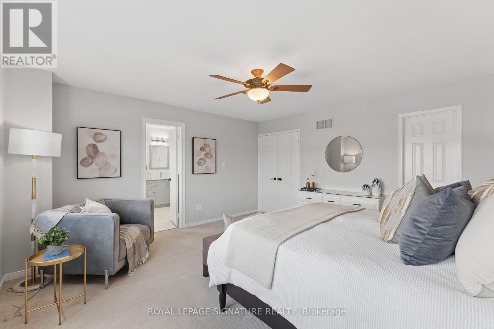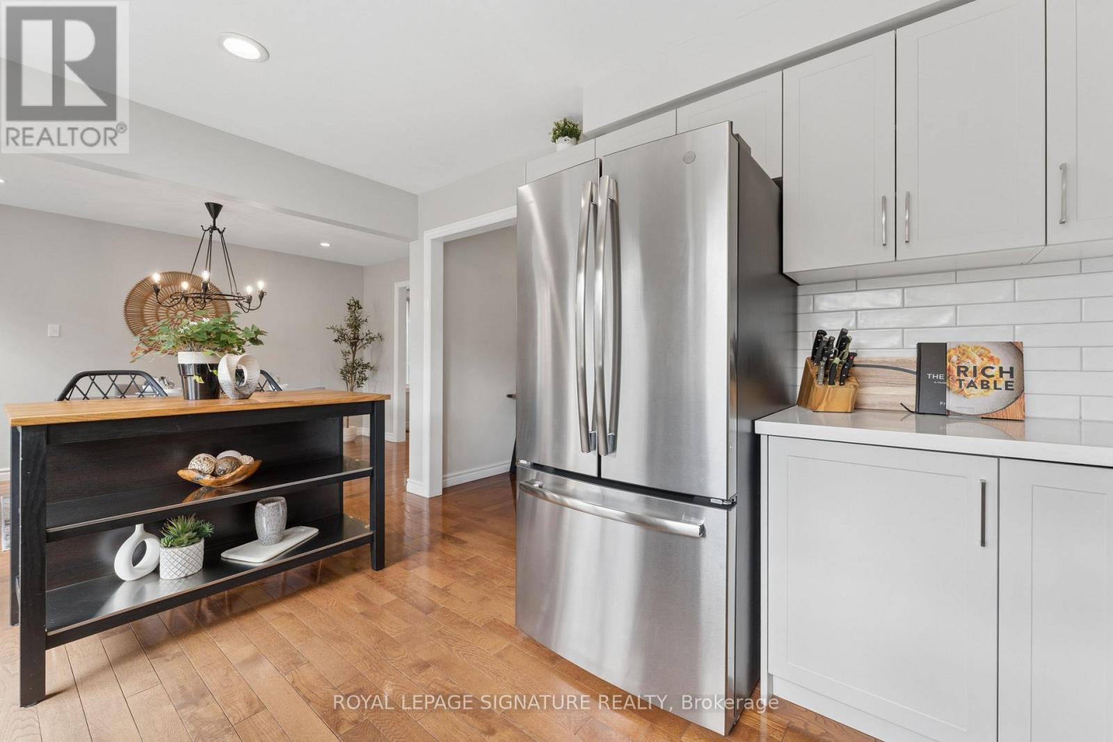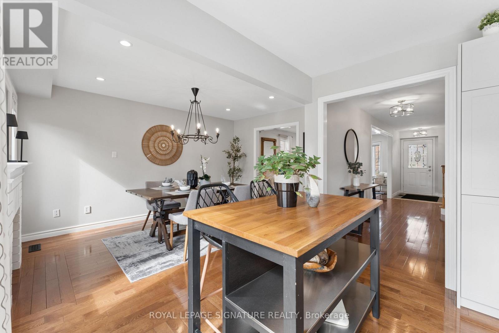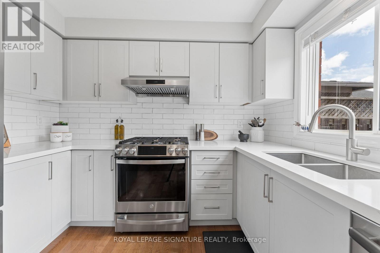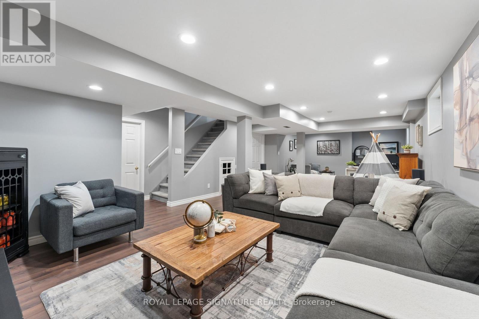 Welcome to 62 Bowles Dr. in beautiful Ajax, just a short walk from the charming shops and restaurants of The Village.This gorgeous, sun-filled two-storey John Boddy home offers 1,779 square feet of above-ground living space, plus an additional 868-square-foot basement that is approximately 65% finished. Meticulously maintained by the original owners, this residence provides both quality and exceptional comfort.The main floor features a Great Room highlighted by a large bay window and pot lights, and a Dining Room anchored by a warm gas fireplace. Exceptional details abound, including gleaming hardwood floors (2006), smooth ceilings, and screwless light switch covers. The stunning updated kitchen (2021) boasts stainless steel GE Profile appliances, quartz counters, a ceramic backsplash, and a walkout to a south-facing backyard patio. For added convenience, the main level includes a laundry room, direct garage access, and a large double closet in the main hall.Upstairs, you will find three spacious bedrooms, each equipped with closet organizers. The primary suite features a walk-in closet and a stunning four-piece ensuite (2021) complete with heated tile floors, a double sink, a glass shower with a rainhead, and ample storage cabinetry.The lower level offers a large, beautifully decorated open-concept recreation room and office area featuring pot lights and laminate flooring, as well as a large unfinished storage area with built-in shelving.The exterior is equally impressive, with lovely landscaping, repaved driveway (2021) front stonework completed (2023). The fully fenced, south-facing backyard is perfect for summer entertaining, featuring a large patio, beautiful gardens, and two vegetable garden boxes.Located just steps from desired schools, parks, walking and bicycle trails, the Riverside Golf Course, and the charming shops and restaurants of the Village, this is not just a great house, but a wonderful neighborhood to raise your family. Welcome Home! (id:64974)