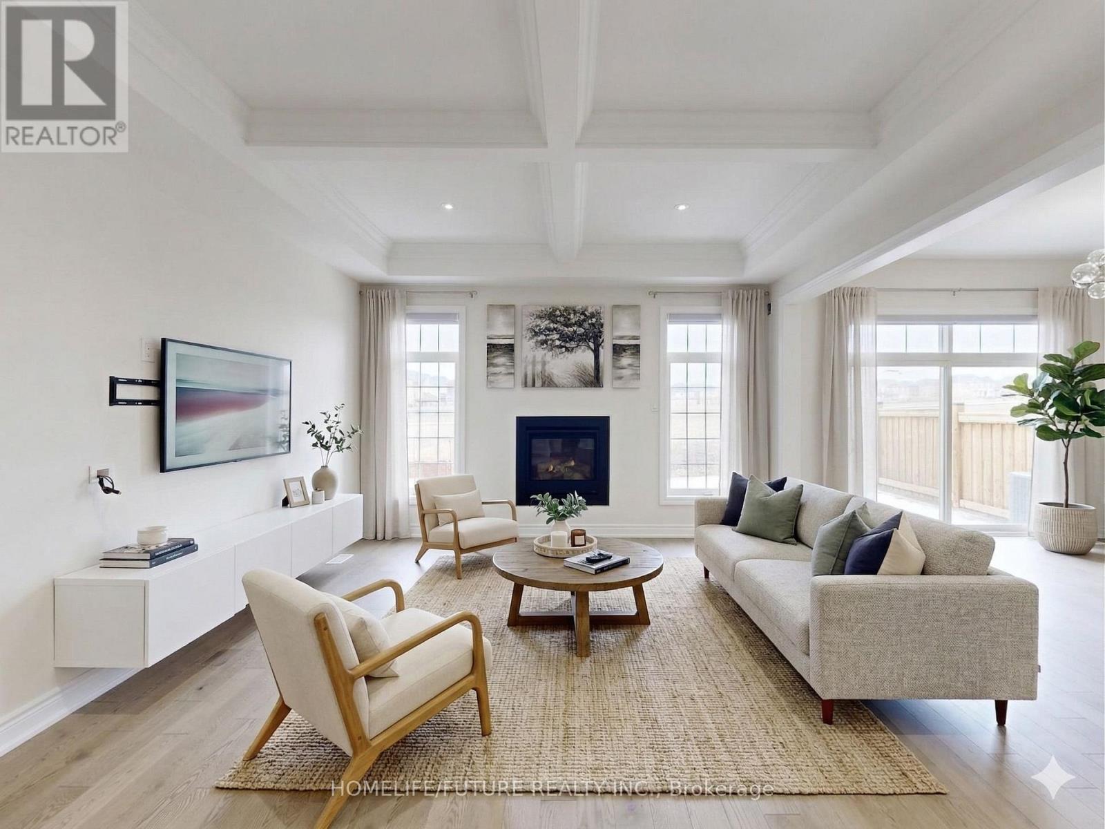 Exceptional one of a kind detached home on a premium 51 ft lot in the highly sought afterHeathwood community of Williamsburg, offering approximately 3,416 sq ft of elegant livingspace including a 728 sq ft finished basement. This beautifully upgraded home features 5spacious bedrooms on the second level and an additional bedroom with a large living area inthe basement, ideal for extended family. The main floor showcases 10 ft ceilings, pot lights,oak hardwood flooring, and stylish iron pickets, complemented by coffered and waffle ceilingsthroughout. The chef's kitchen is upgraded with Caesarstone countertops, maple cabinetry, andpremium Thermador appliances. Enjoy 4 fully upgraded bathrooms and a convenient laundry roomdesigned for modern living. The interlocked front and backyard provide low maintenance outdoorspace with great curb appeal. Ideally located near top rated schools, parks, and all amenitieswith easy access to Highways 407, 412, and 401. A rare opportunity to own a truly refined homein one of the area's most desirable neighbourhoods. (id:64974)