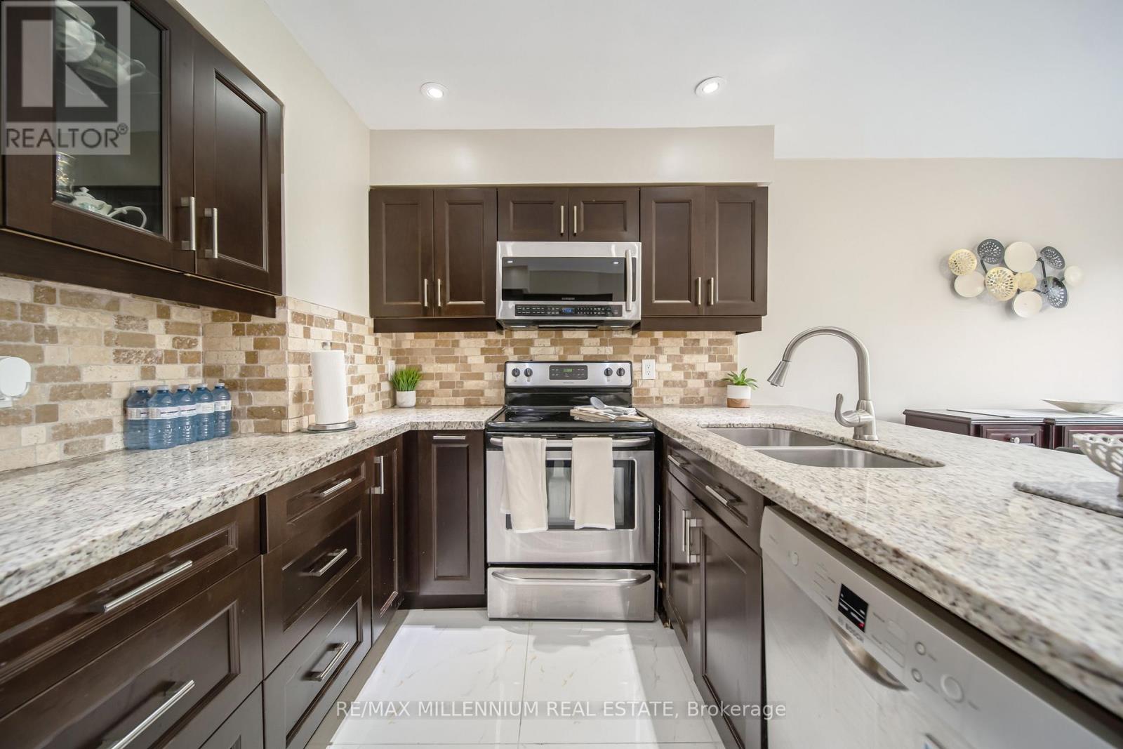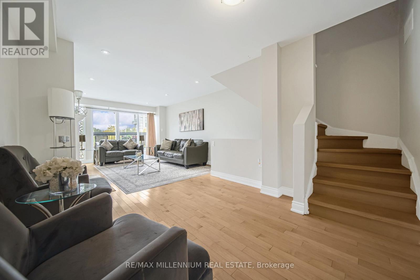 Take advantage of this rare opportunity to own a beautiful 3 level townhouse in the heart of Ajax, just steps from the lake! The maintenance fee includes water, high-speed internet, and cable TV. Featuring 3 spacious bedrooms and a custom gourmet kitchen perfect for entertaining. Enjoy the convenience of a main floor bedroom with a walkout to a private backyard ideal for relaxing or hosting guests. This is the only unit in the complex offering a full 3 piece bathroom on the main level. A new furnace (2022) provides added peace of mind. Includes 2 private parking spaces plus plenty of visitor parking. Residents enjoy resort style amenities including a fully equipped gym, indoor pool, sauna, hot tub, and a large party room. Be part of a vibrant, welcoming community offering yoga, water aerobics, walking groups, dances, card nights, and summer BBQs. This home truly combines location, lifestyle, and value. An incredible opportunity to own near the lake schedule your showing today! Explore the video walk through showcasing the beautiful property and its amazing amenities in the link below. Enjoy the tour! https://f.io/1meExxEa (id:64974)