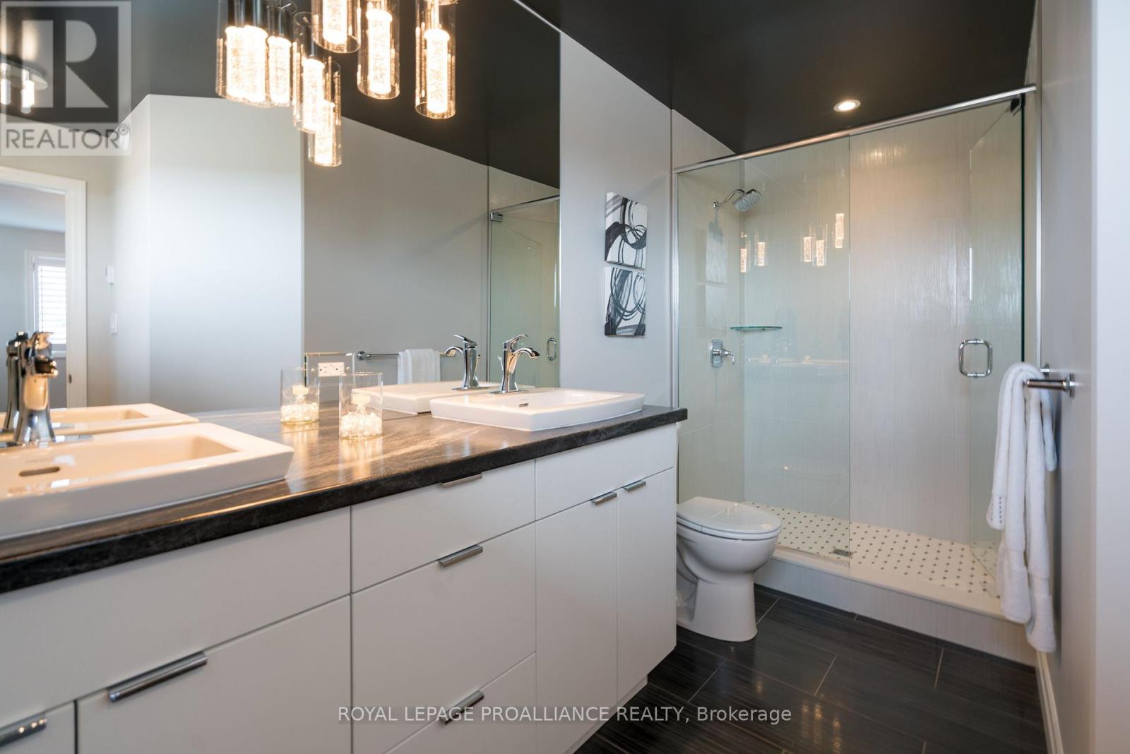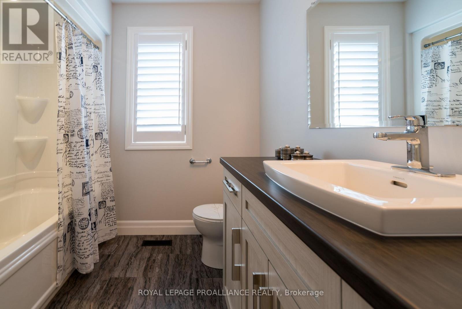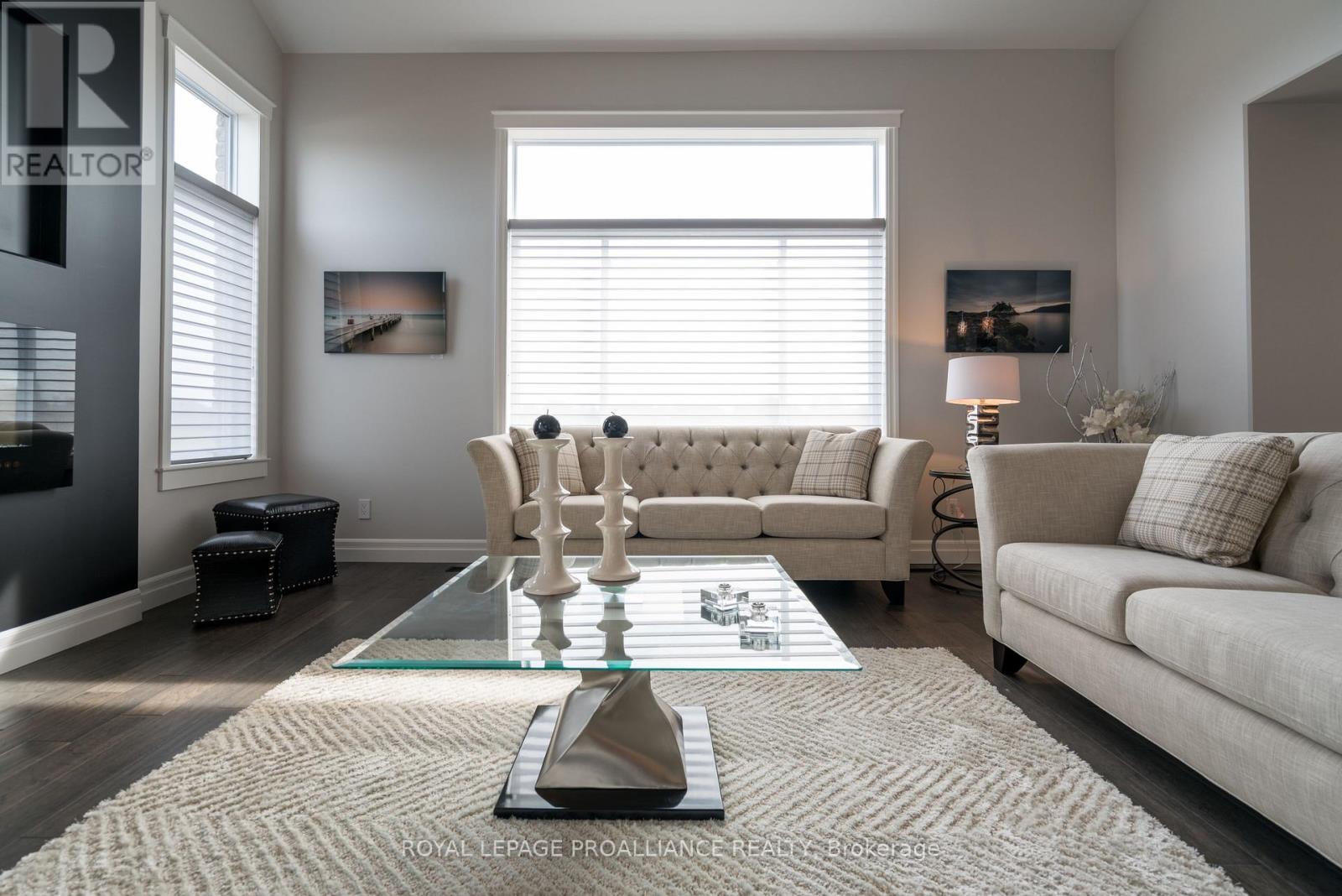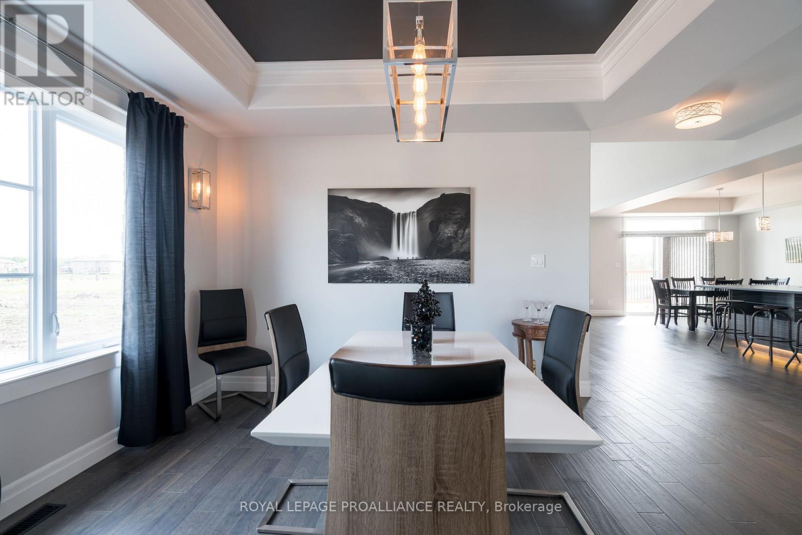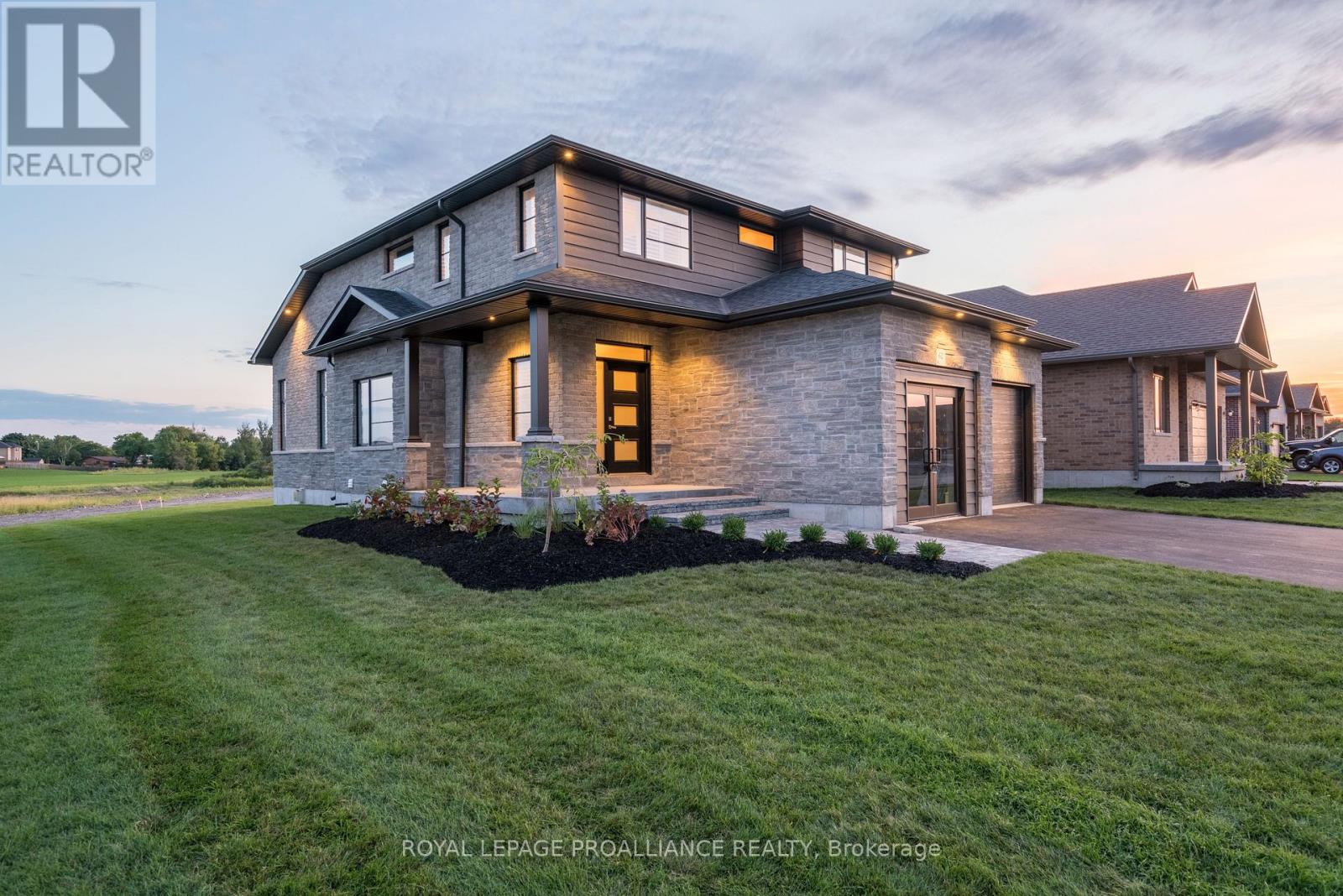 DUVANCO MODEL HOME OPEN SUNDAY 2-4PM - Step into your dream home where elegance meets comfort in this stunning 4+1 bedroom, two-storey brick masterpiece! The heart of this Newport design is the open-concept main floor featuring a spectacular great room crowned with soaring vaulted ceilings and warmed by an electric fireplace. The white kitchen dazzles with a corner pantry, hard surface counters, stainless appliances, and a generous island perfect for morning coffee or Friday night entertaining with breakfast area. Your guests will be impressed by the dedicated dining room showcasing sophisticated coffered ceilings. You will love the spacious dedicated mudroom that connects seamlessly to your double-car garage. Upstairs, convenience reigns with second-floor laundry and a luxurious primary suite boasting a spa-like ensuite with double vanity, glass and tile shower, plus a generous walk-in closet, 3 spacious guest room with a 4pc bath. The fully finished basement transforms into your personal retreat with a cozy recreation room anchored by a natural gas fireplace, bonus bedroom, and three-piece bath. Nestled in the desirable Settler's Ridge community, you'll enjoy Bird Park practically at your doorstep and easy access Quinte Mall, and Black Bear Ridge Golf Resort. With shopping and dining nearby, plus quick highway access and just fifteen minutes to Canadian Forces Base Trenton or the bridge to Prince Edward County this location truly offers the best of both worlds. (id:64974)
