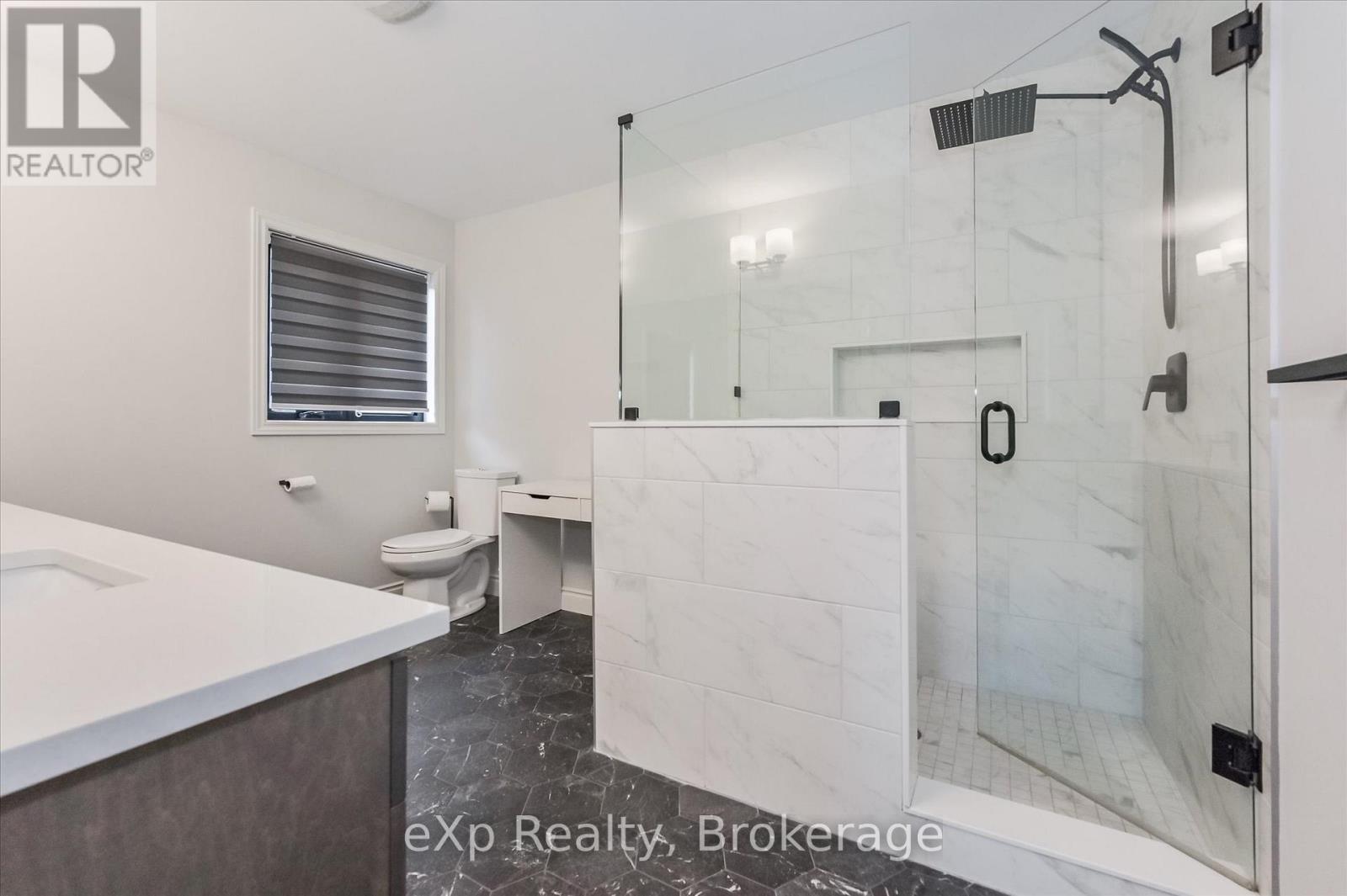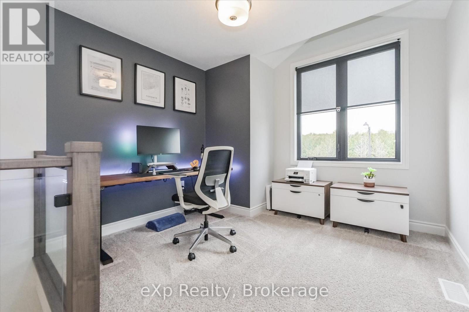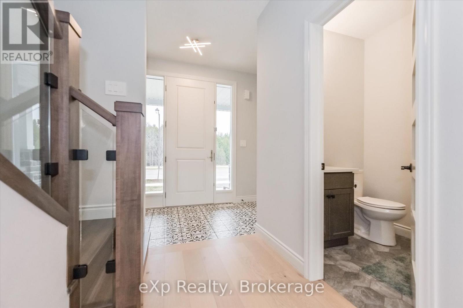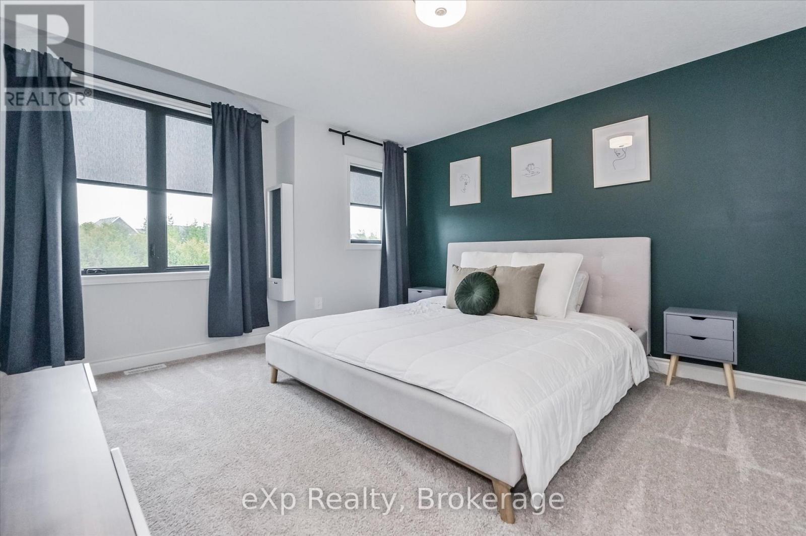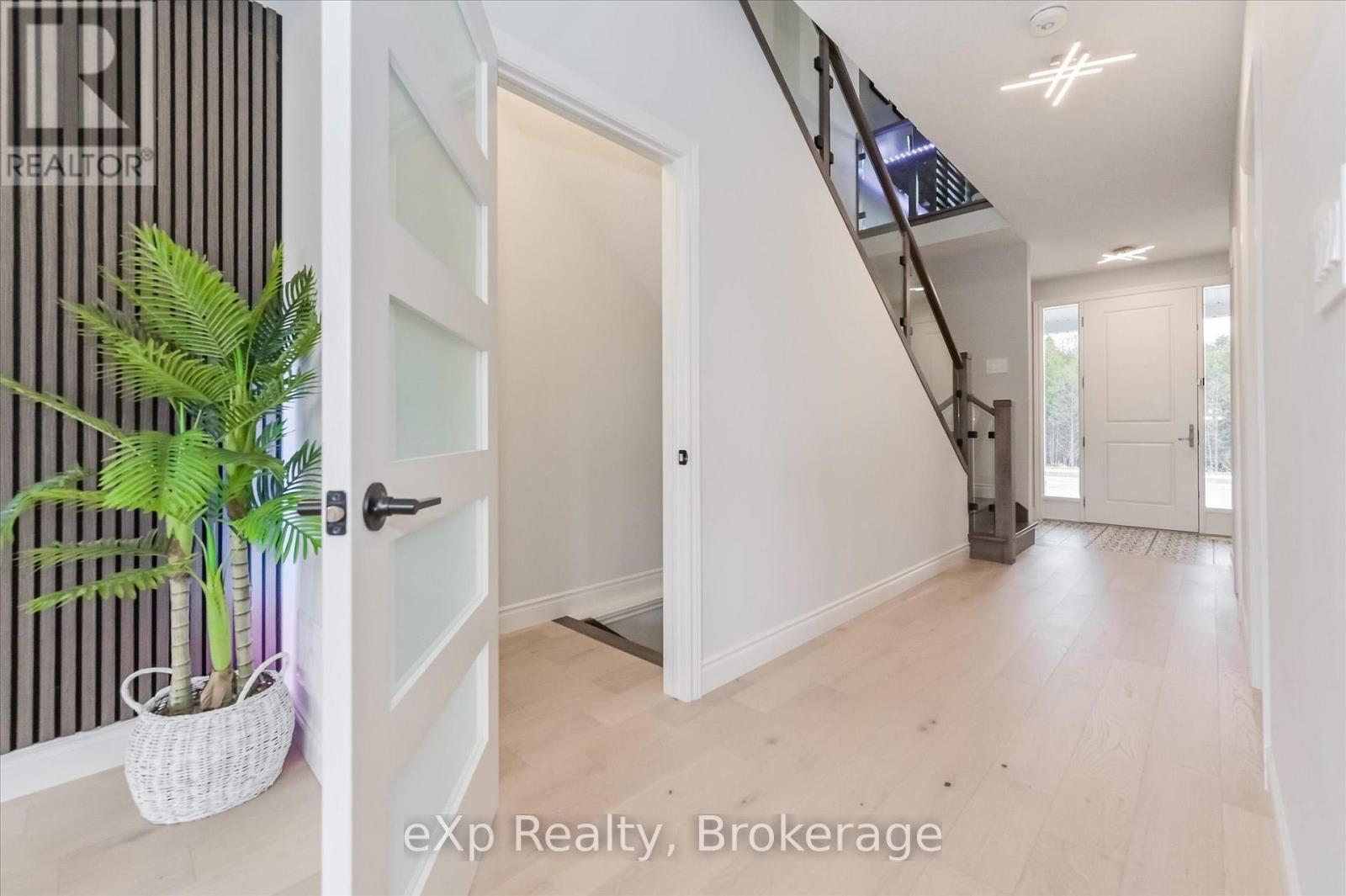 Overlooking a tranquil pond in Elora's highly sought-after South River community, this 2023 Granite Home build offers a seamless blend of modern design and relaxed, nature-inspired living. With 4 bedrooms, 3 full bathrooms and a powder room, this home is thoughtfully laid out for both everyday comfort and stylish entertaining, just a short walk to downtown Elora and nearby trails including the Trestle Bridge Trail.Inside, every detail has been carefully considered. The kitchen stands out with a herringbone backsplash, two-tone cabinetry featuring cream uppers and light grey lowers and island, waterfall quartz countertops, sleek black hardware, a gas stove, and a custom coffee bar. The family room is warm and inviting, highlighted by a gas fireplace, walnut slat feature walls, and coffered ceilings that add depth and character. A striking glass staircase leads to the upper level, where a spa-like bathroom features a waterfall shower with niche and glass surround. White oak flooring and black window frames carry a clean, modern feel throughout.The finished walkout basement is bright and functional, offering additional living space with direct access to the backyard and peaceful water views. Complete with a double car garage and refined finishes throughout, this home presents a beautifully finished opportunity in one of Elora's most desirable neighbourhoods. Quick closing available. (id:64974)