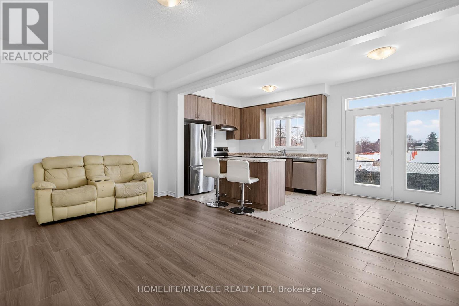 New built community, Located In The Desirable Area Of Waterdown,3 Bedroom Semi-Detached, Main floor has 9 feet ceiling, Entry To Garage Through Foyer. Open Concept Living And Dining Room, Adequate Size Kitchen With Centre Island overlooking Backyard view.(No houses at the back) Large Breakfast Area W/O To backyard. Electric Fireplace in living area, Primary Bedroom with 4 pc Ensuite and double door closet. Second and Third bedroom has 4 piece common washroom, main floor has powder room. Reasonable Size Bedrooms With Lots of Sunlight. Easy Commute To The Highway and Go station. Pictures virtually staged, Enjoy the uploaded 3 D-Tour and Video to see more details of this house. (id:64974)