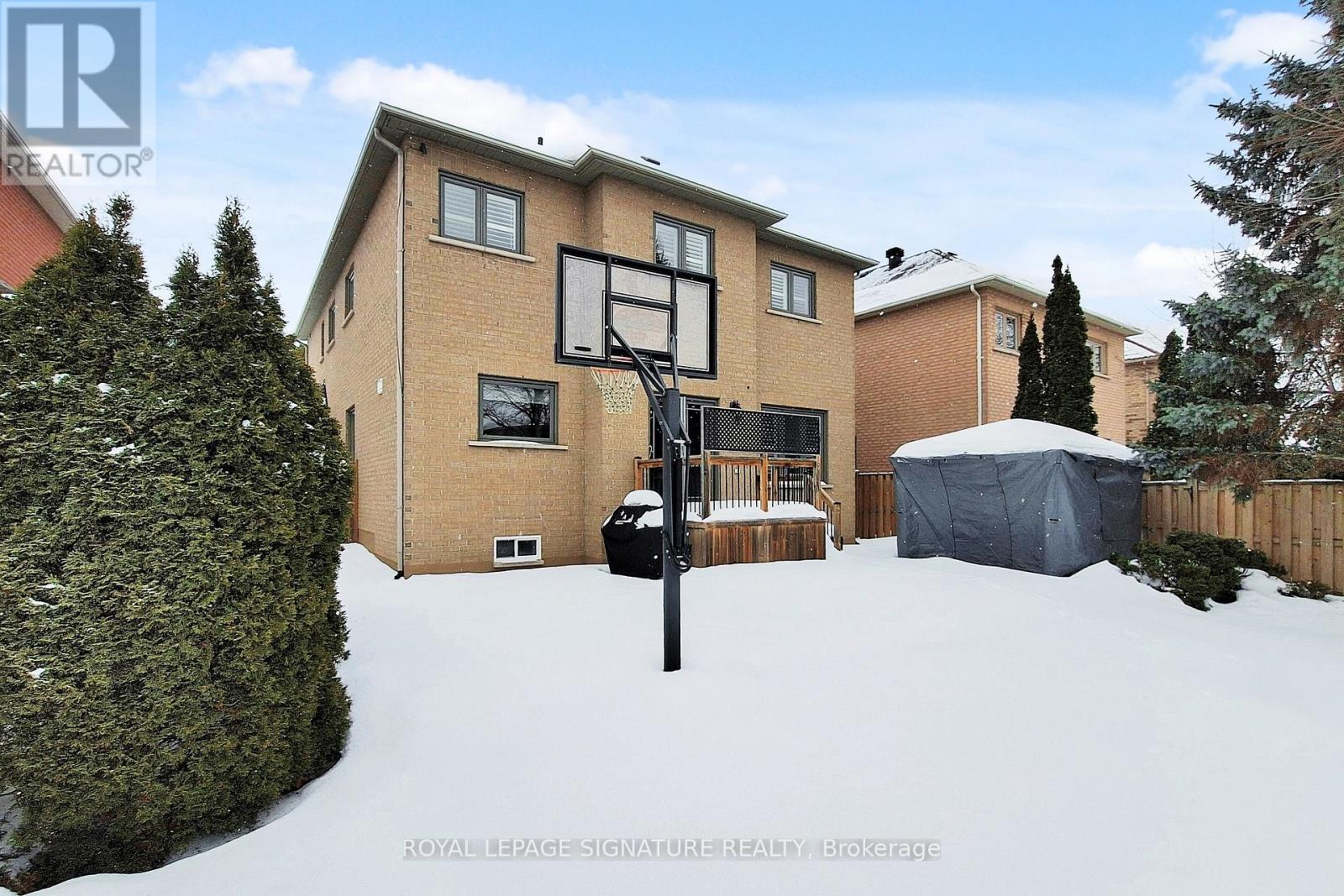A Stunning Family home offering a whole Lotta Love! Welcome to this Upgraded and Much-loved Executive home in Prestigious +Legacy Estates+ in Markham. So much to love about this Meticulously Maintained Gem! Perfectly located across from beautiful Legacy Park with baseball diamonds, basketball courts and green space right at your doorstep. This Immaculate Chiavatti-built home offers over 2,800 sq. ft. plus a fully finished basement, showcasing pride of ownership and thoughtful upgrades throughout the years. In total you have over 4000 Sq ft to Enjoy! The main level features a dramatic Grand Entrance and a two-storey living room, 9 Foot Ceilings, a Spacious family room with Gas fireplace, built in Cabinets, and a renovated family-size eat-in kitchen with granite countertops, custom cabinetry, and a built-in table with stools. Walk out to a private, fully fenced backyard, professionally landscaped with an anchored Gazebo, garden shed, and a built-in basketball court area. Upstairs, you'll find four spacious bedrooms and beautifully maintained baths, including a primary suite with a Walk in Closet and a large renovated ensuite with separate shower & heated floors. The finished basement adds exceptional versatility with an additional bedroom, walk-in closet, 3-piece bath, tons of storage and extended family space-ideal for guests or multi-generational living. Exterior highlights include a custom stone driveway and front steps, soffit lighting, upgraded garage floor (epoxy flooring), In ground sprinkler system, and beautifully landscaped front and back yards. Updates include Roof, windows and central vacuum. A rare opportunity to own a meticulously maintained home in one of Markham's most sought-after family communities, just steps to parks, schools, and everyday amenities. Minutes to the 407 and 404, Markville Mall, several Hockey arenas, Soccer fields, Great Schools & Tons of Great Restaurant options! (id:64974)
