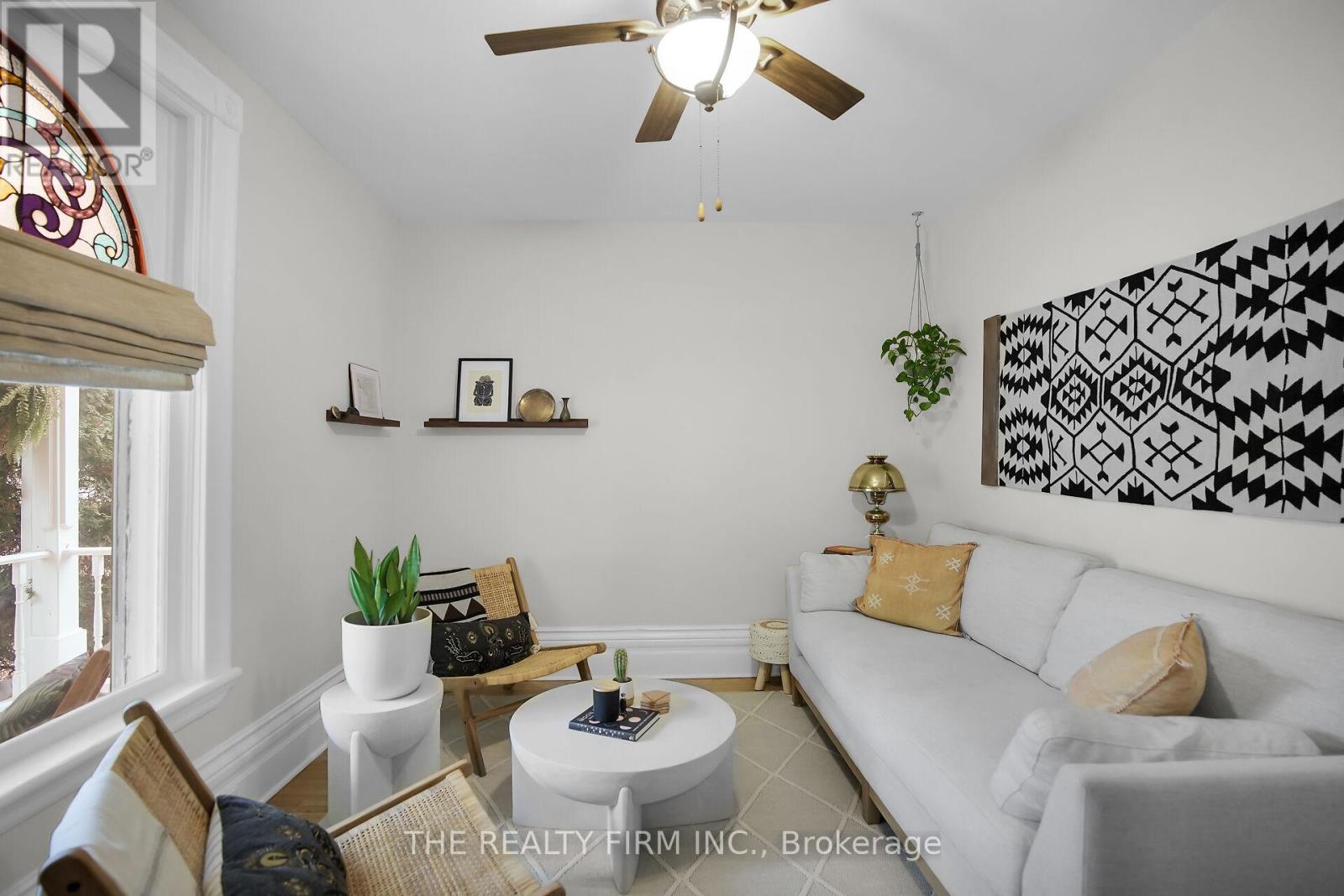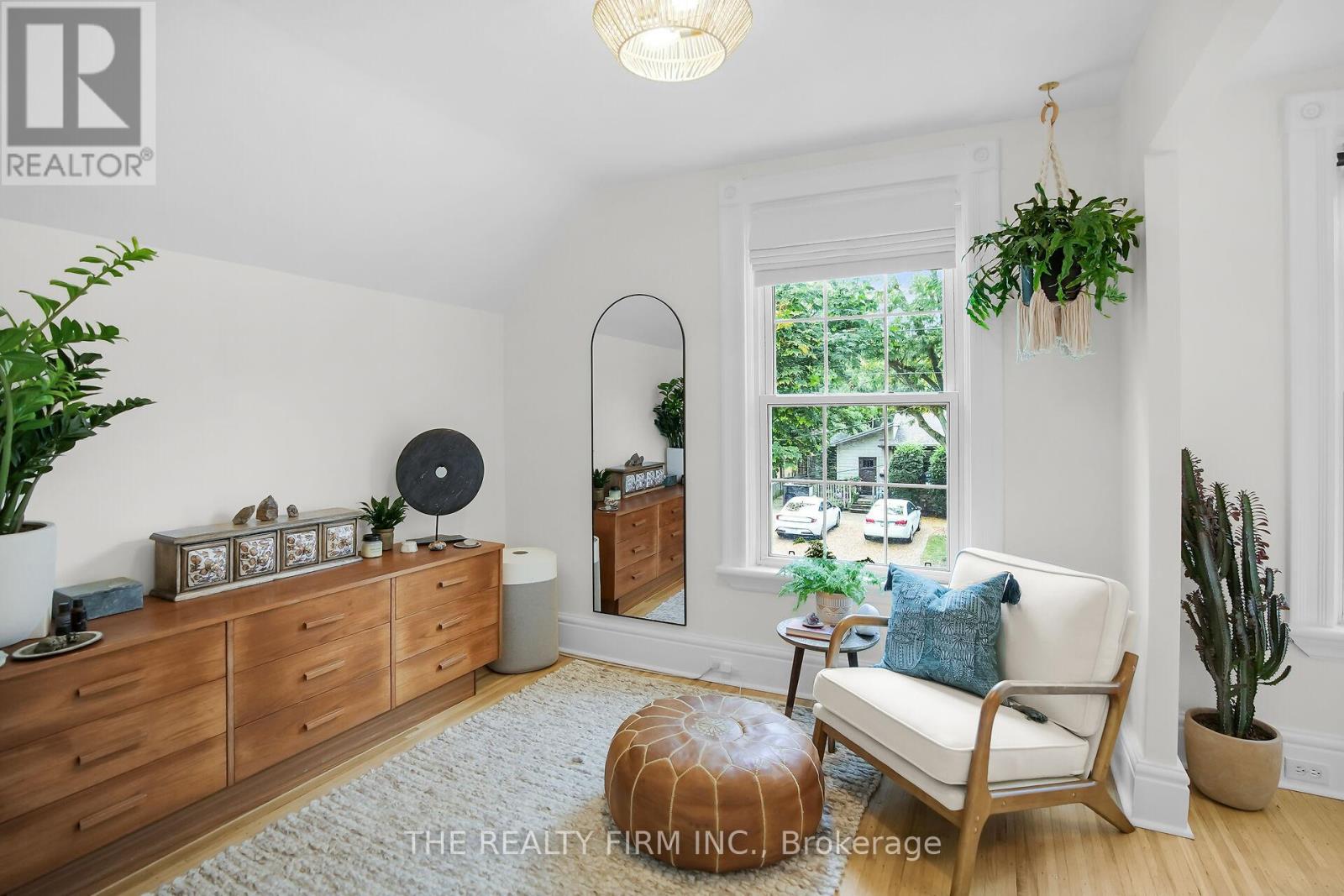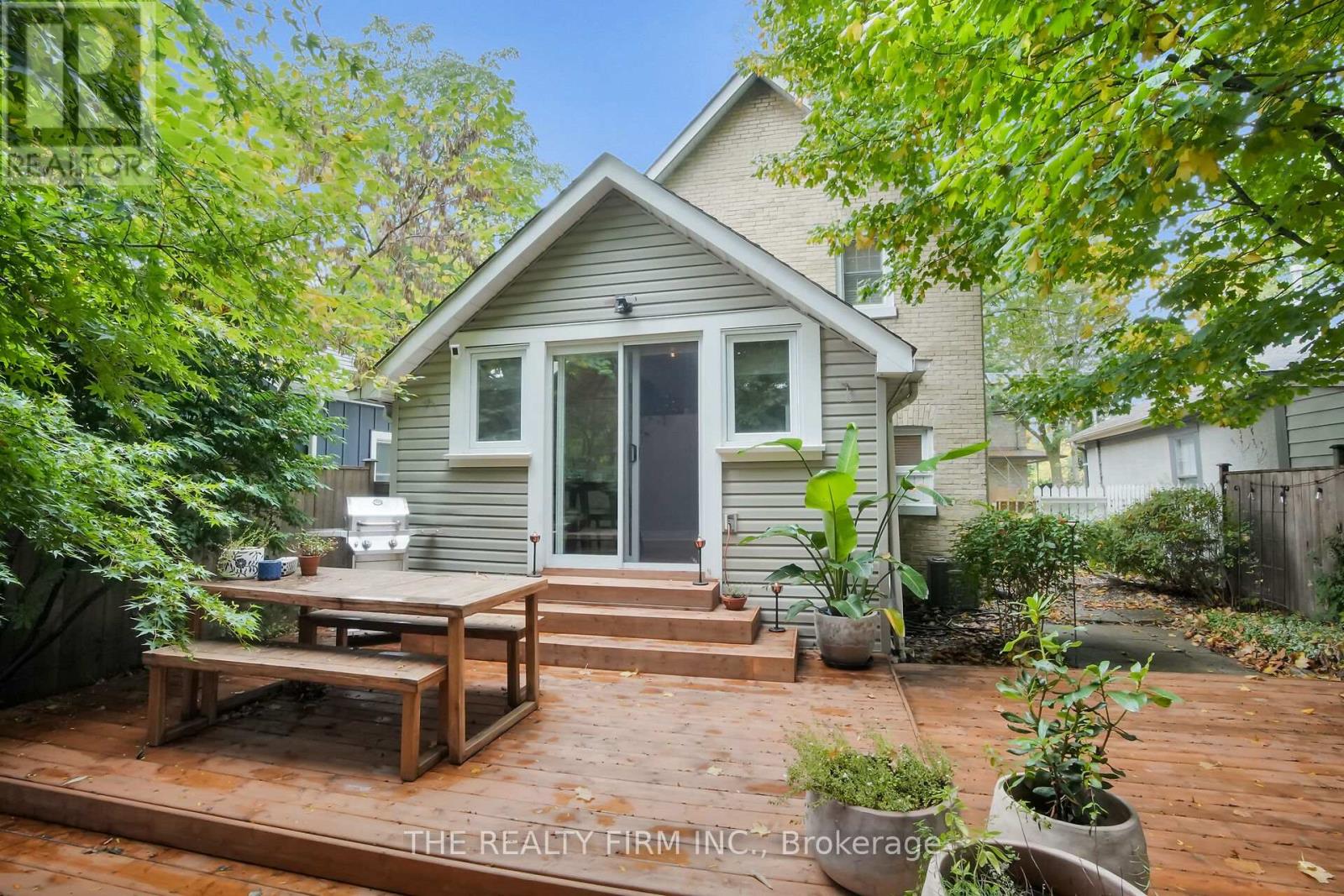 Character and Location close to Old North - without the Old North price tag. Is this London's Prettiest homes Under $600k? Are you someone who doesn't want condo fees...doesn't want to renovate...doesn't need four bedrooms... but who does want to host your friends and family without cleaning 3,000 square feet afterward? Do you love the charm, character, and walkability of a historic neighbourhood? Then Stop Scrolling! This charming yellow brick two-storey in the heart of Woodfield blends timeless character with thoughtful updates throughout. It's the perfect fit for someone who wants space where it matters - without wasted square footage.The home offers two upstairs bedrooms, a main-floor den (or 3rd bedroom), and 1.5 bathrooms, providing a flexible layout for modern living. The main floor features a formal living room at the front of the home, a family room or traditional dining space leading into a bright eat-in kitchen with pantry, breakfast nook, and two skylights and a versatile main-floor bedroom/den/office and a convenient two-piece bath. Upstairs are two bedrooms and a four-piece family bath, including a generous primary bedroom that was previously two smaller bedrooms and could easily be reconfigured if desired. Original details such as stained glass, vintage heat vents, and wood floors highlight the home's heritage, while numerous updates offer real peace of mind. Outside, enjoy a fully fenced, beautifully landscaped backyard with a tranquil fish pond and multi-level deck - ideal for entertaining friends or unwinding after a walk to downtown or Victoria Park. Updates include roof shingles (2014), furnace and A/C (2019), kitchen remodel (2013), rebuilt porch, skylights, most windows, fencing, appliances, full interior paint, custom blinds, updated lighting, tiled entryway, wool sisal stair runner, exterior painting (2024), basement improvements, and a fully rebuilt back deck (2025). (id:64974)