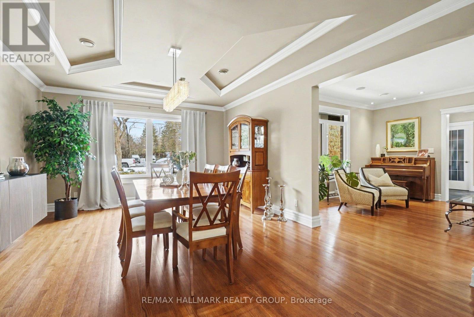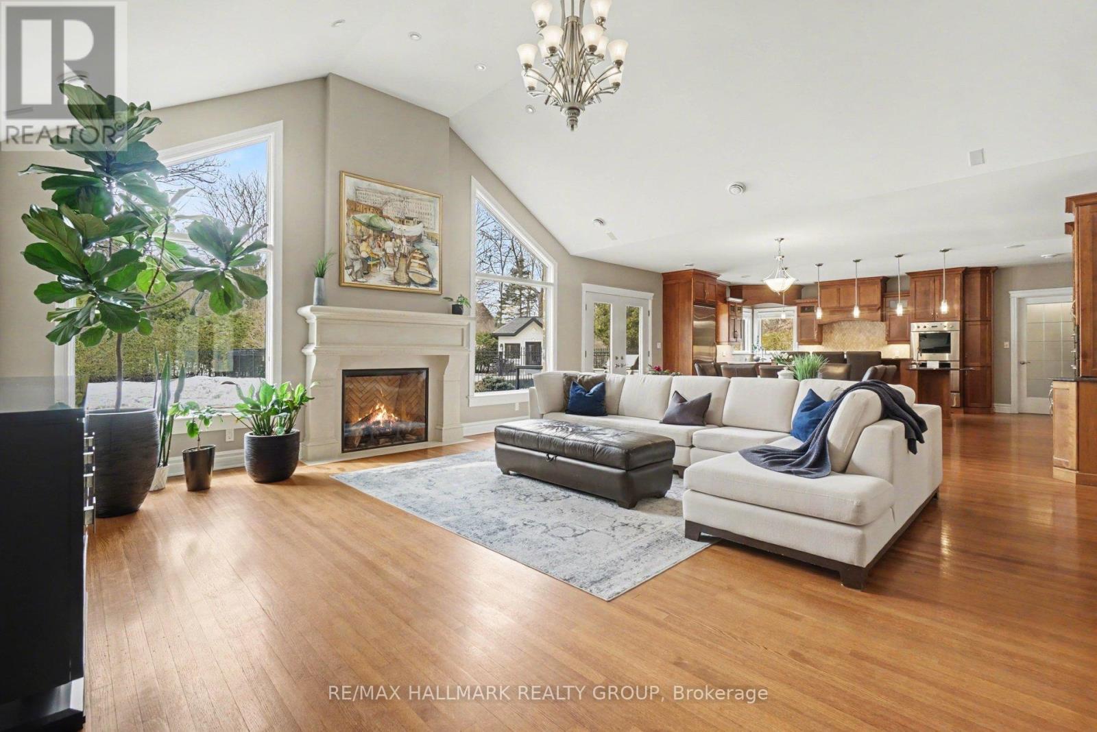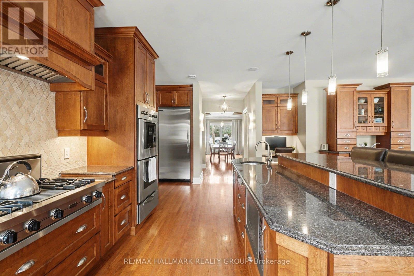 62 Rebecca Crescent enjoys an extra-deep premium lot and location on the sought-after river level of Rothwell Heights. Imagine owning a private resort-style home right in the city, just steps away from the Ottawa River. This exceptional, fully stone-clad bungalow has just hit the market, and homes like this rarely last long. The elegant floor plan shines with traditional entertaining space: grand living and dining rooms, followed by the ultimate family area featuring a fully open kitchen, pull-up eating nook, and spacious family room that overlooks the private manicured backyard oasis. Just off the grand foyer sits a practical 2-person den, perfect for meeting clients or running a home business without disturbing the remainder of the home. The clearly defined bedroom wing offers a luxurious primary suite which opens to a private patio area, also enjoying a luxury ensuite and a walk-in closet, three additional large bedrooms, a family-sized bathroom, and a conveniently located laundry room. 12 zone radiant heated floors throughout, ground source cooling, 9-foot ceilings, and grand windows create a bright, warm, and upscale feel in every room. The triple-car garage is exceptional-two extra-deep bays allow space for up to five cars or three vehicles plus bikes and family recreational gear. Rough-in ready to connect up to 64 amp EV charging. Outside, discover your true backyard oasis on .52 acres: interlocking patios, a sparkling 20x40 pool, and a full pool house with bathroom, shower, and change rooms. The bright basement is a blank slate, prepped for a fully self-contained suite with separate side-yard/garage access and large windows. Luxury, privacy, and resort-style living in Ottawa, with radiant heated floors, soaring ceilings, resort backyard, professional office space, EV-ready garage, and future multi-generational potential. Opportunities this rare don't come around often. Don't miss your chance to live this dream lifestyle. Schedule your private viewing today. (id:64974)