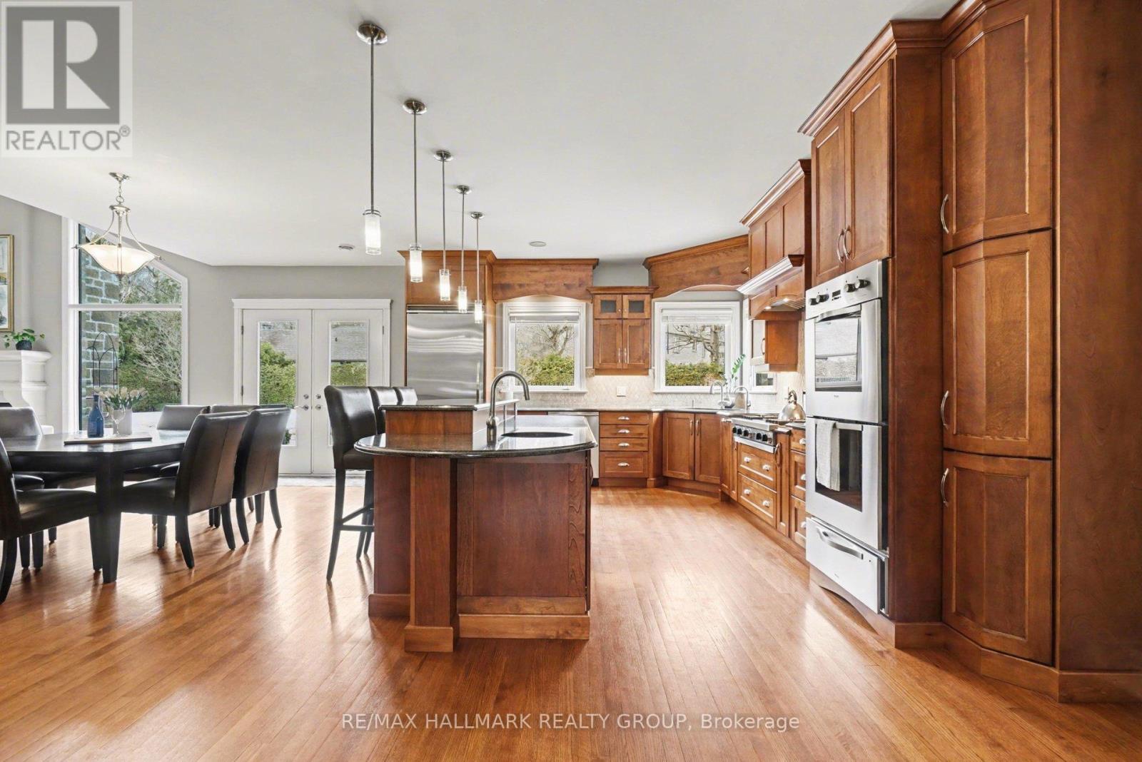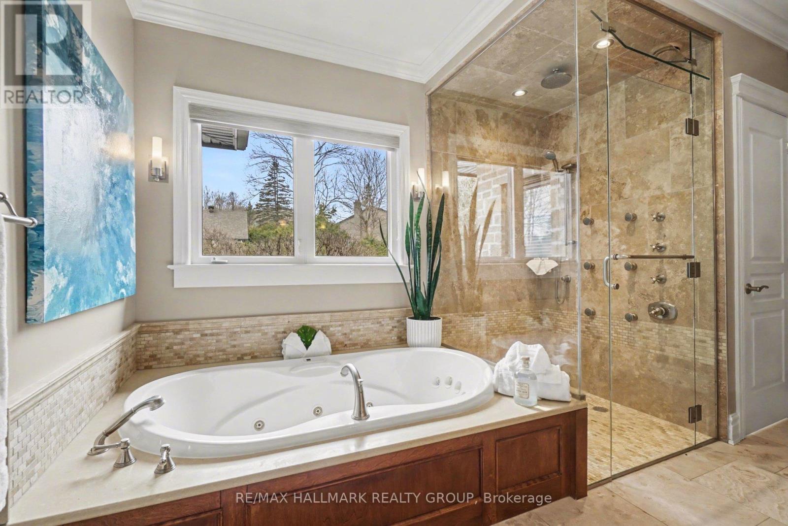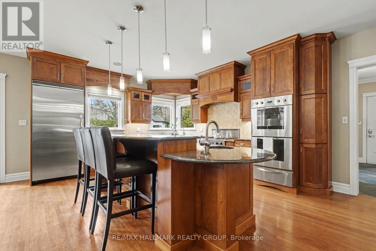 62 Rebecca Crescent enjoys an extra-deep premium lot and location on the sought-after river level of Rothwell Heights. Imagine owning a private resort-style home right in the city, just steps away from the Ottawa River. This exceptional, fully stone-clad bungalow has just hit the market, and homes like this rarely last long. The elegant floor plan shines with traditional entertaining space: grand living and dining rooms, followed by the ultimate family area featuring a fully open kitchen, pull-up eating nook, and spacious family room that overlooks the private manicured backyard oasis. Just off the grand foyer sits a practical 2-person den, perfect for meeting clients or running a home business without disturbing the remainder of the home. The clearly defined bedroom wing offers a luxurious primary suite which opens to a private patio area, also enjoying a luxury ensuite and a walk-in closet, three additional large bedrooms, a family-sized bathroom, and a conveniently located laundry room. 12 zone radiant heated floors throughout, ground source cooling, 9-foot ceilings, and grand windows create a bright, warm, and upscale feel in every room. The triple-car garage is exceptional-two extra-deep bays allow space for up to five cars or three vehicles plus bikes and family recreational gear. Rough-in ready to connect up to 64 amp EV charging. Outside, discover your true backyard oasis on .52 acres: interlocking patios, a sparkling 20x40 pool, and a full pool house with bathroom, shower, and change rooms. The bright basement is a blank slate, prepped for a fully self-contained suite with separate side-yard/garage access and large windows. Luxury, privacy, and resort-style living in Ottawa, with radiant heated floors, soaring ceilings, resort backyard, professional office space, EV-ready garage, and future multi-generational potential. Opportunities this rare don't come around often. Don't miss your chance to live this dream lifestyle. Schedule your private viewing today. (id:64974)