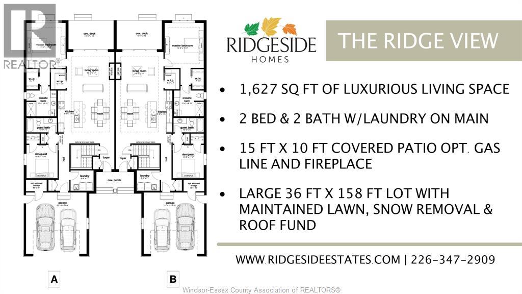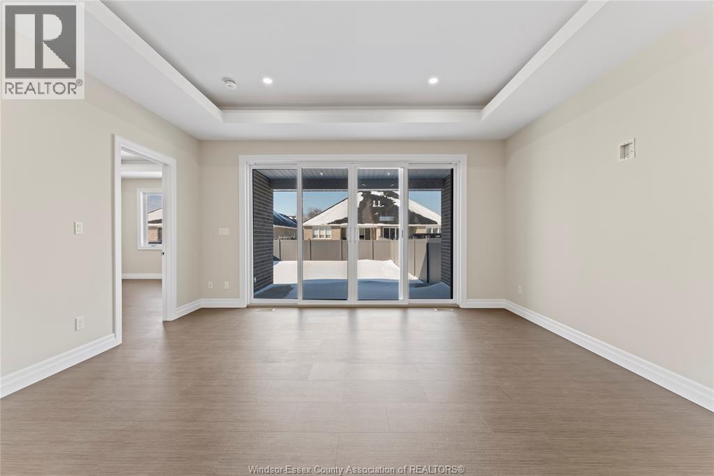 MODEL HOME OPEN EVERY SUNDAY 1-4PM - QUALIFIED FIRST-TIME HOMEBUYERS SAVE TENS OF THOUSANDS OFF LIST PRICE - ASK FOR DETAILS! - Welcome to Cottam, just 18 mins to Windsor! These luxurious ranch-style Twin Villas by Ridgeside Homes offer 2 floorplans and are built with the highest quality of materials and craftsmanship. Incredible curb appeal with full brick/stone exterior, 4 car conc. driveway, rear privacy fencing, sodded yard & front yard sprinkler system incl. Enjoy 9ft ceilings w/10ft tray & ambient LED lighting, LVP flooring and porcelain tile, custom cabinetry, 9ft island w/quartz counters, walk-in pantry, ceramic b-splash, living rm w/opt. N.G. fireplace & 12ft patio doors to cov'd conc. patio, main-floor laundry, prim. suite w/tray ceiling, walk-in clst, dble vanity, ceramic/glass shower. Opt. finished bsmnt pck. incl. 2 bdrms, 1 full bthrm, opt. wet bar and opt. N.G. fireplace. Note: Approx. $160/month for lawn maint., snow removal & roof fund. HST Incl. w/rebate to builder. Peace of mind with 7 Yrs of New Home Warranty w/Tarion! (id:64974)