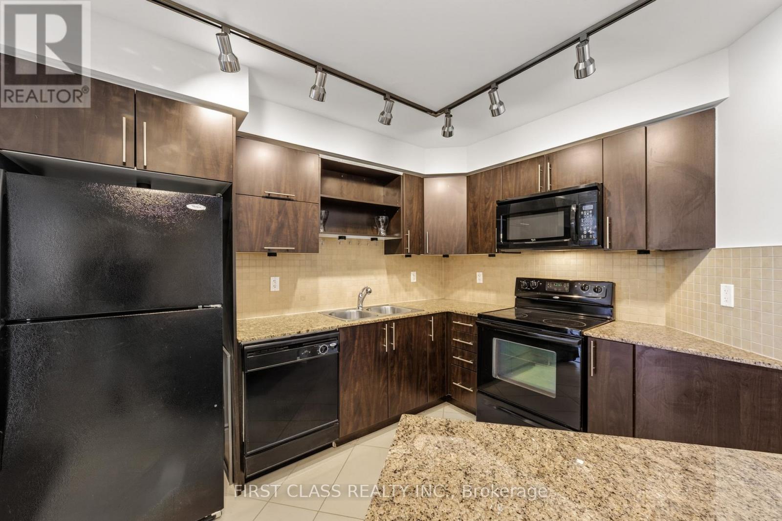 Discover sustainable urban living at Majestic Court, a premier LEED Gold certified residence offering exceptional energy efficiency and low carrying costs. This sun-drenched 1+1 suite features a functional open-concept layout, recently refreshed with modern paint and upgraded flooring throughout. The kitchen is equipped with full-scale appliances, and the versatile den is ideal for a home office. Includes one parking space and one storage locker. (id:64974)