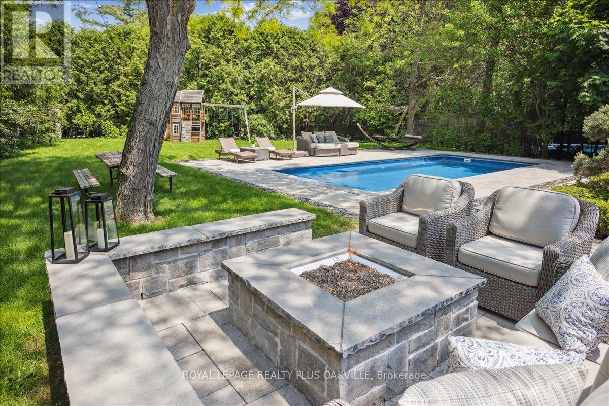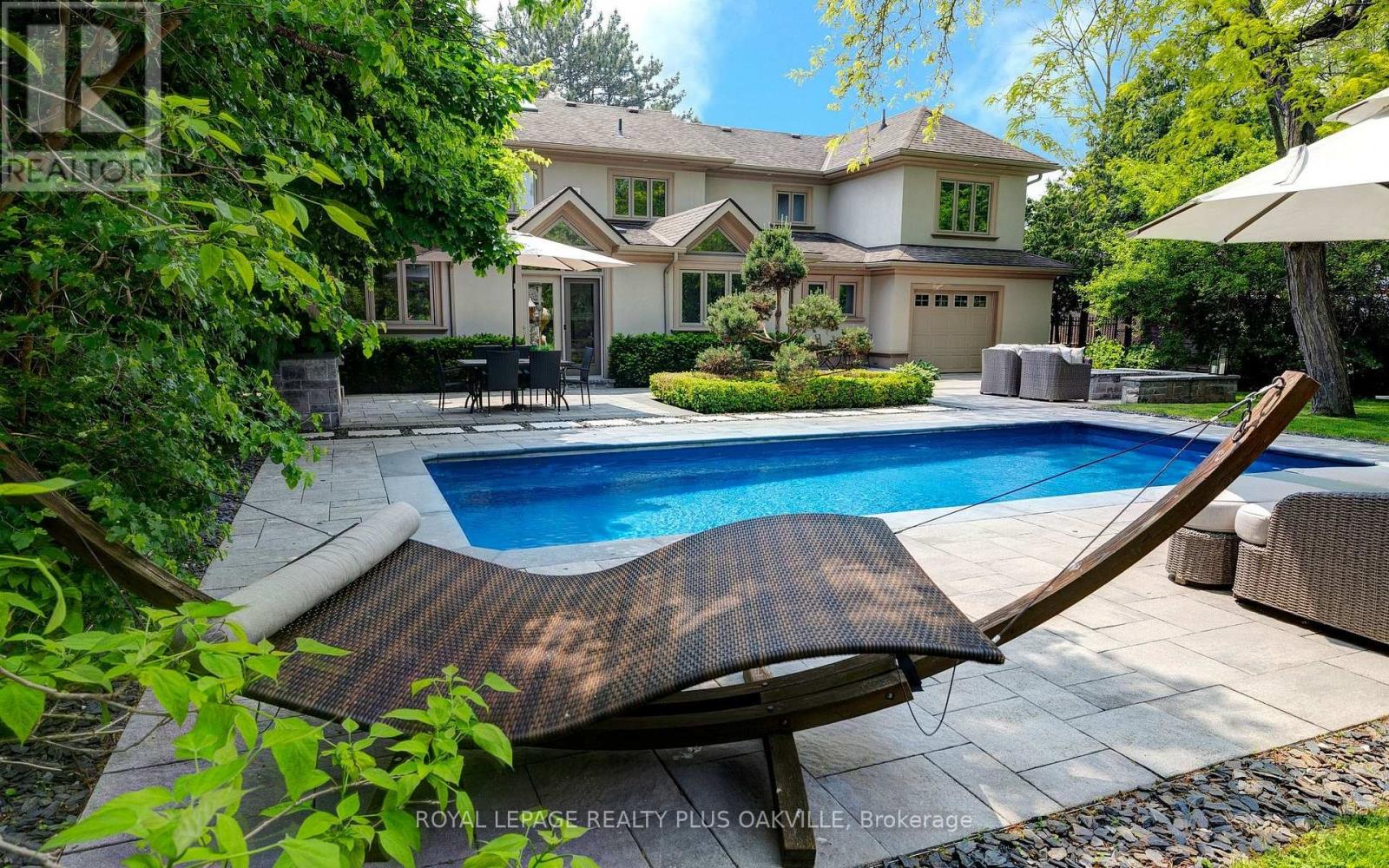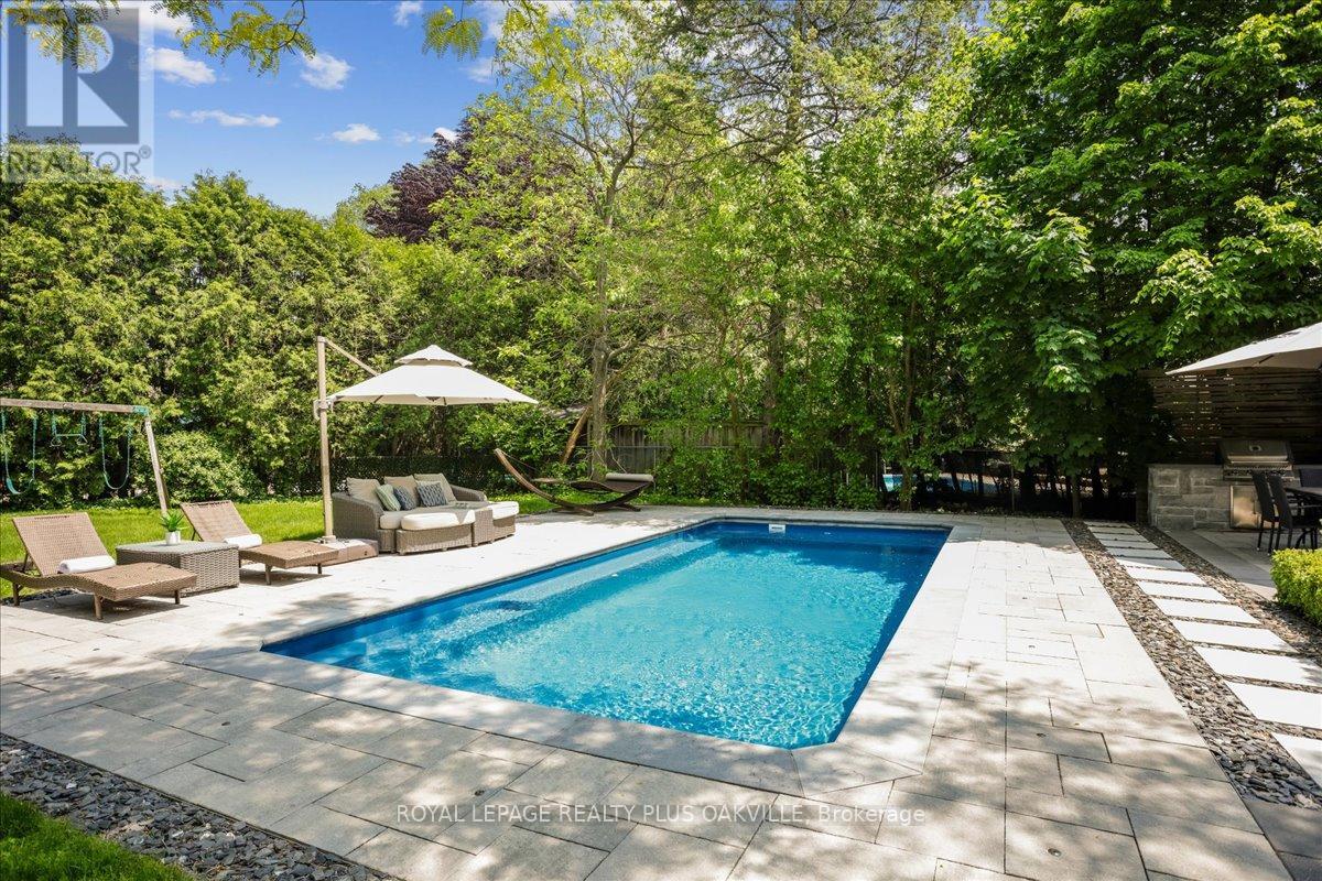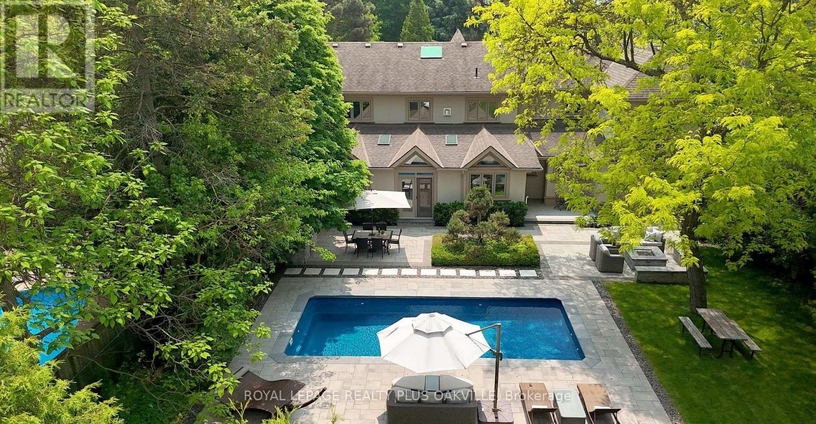 Architecturally designed and beautifully crafted 4-bedroom, 5-bath builders own custom home in South Burlington offering over 3,740 sqft of luxurious living space on the above ground levels. Nestled in a mature treed setting on a rare 86' x 193' deep lot, this stunning property features an 8-car driveway with hammerhead parking, 3-car garage (with roll-up rear door for backyard access), and exceptional curb appeal. Inside, enjoy hardwood flooring, crown mouldings, and elegant formal living/dining rooms. The open-concept gourmet kitchen boasts granite counters, a large island, stainless steel appliances, pot lights, bright skylights and timeless finishes. The spacious family room is enhanced by vaulted ceilings and a double-sided stone fireplace, perfect for cozy evenings. A rare find, the main floor office with separate entrance offers great flexibility for professionals or multi-generational living. Upstairs, the impressive primary suite features vaulted ceilings, double walk-in closets, a luxurious 5-pc ensuite, and peek-a-boo lake views. Additional bedrooms are generously sized, with ensuite access and skylights providing abundant natural light. The fully finished lower level adds even more living space for recreation or home theatre. Outside, the extra-deep private backyard is an entertainer's dream, featuring a resort-style setting complete with an in-ground salt-water pool, lush landscaping, custom stone gas fire pit with built-in seating, custom stone gas bbq island with granite counter, and multiple seating areas, with separate access through a backyard mudroom with shower. With almost 5000 sqft of living space, there is plenty of room to enjoy this magnificent property! Located just minutes to downtown Burlington, waterfront, beaches, Burlington Golf & Country Club, LaSalle Park Marina, top-rated schools, hospital, parks, and highway access. A rare opportunity to own lakeside luxury in one of Burlington's most sought-after locations. (id:64974)
