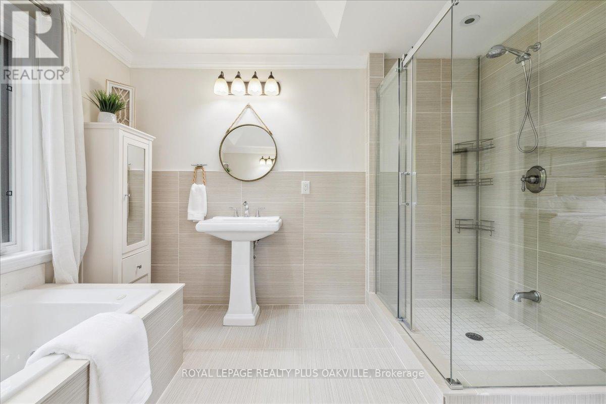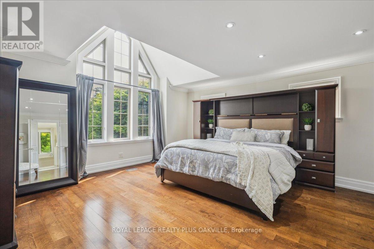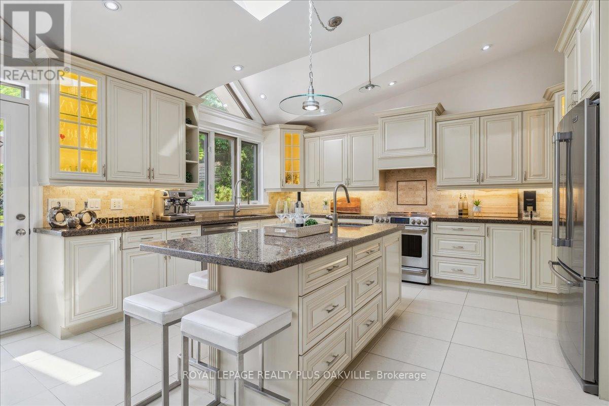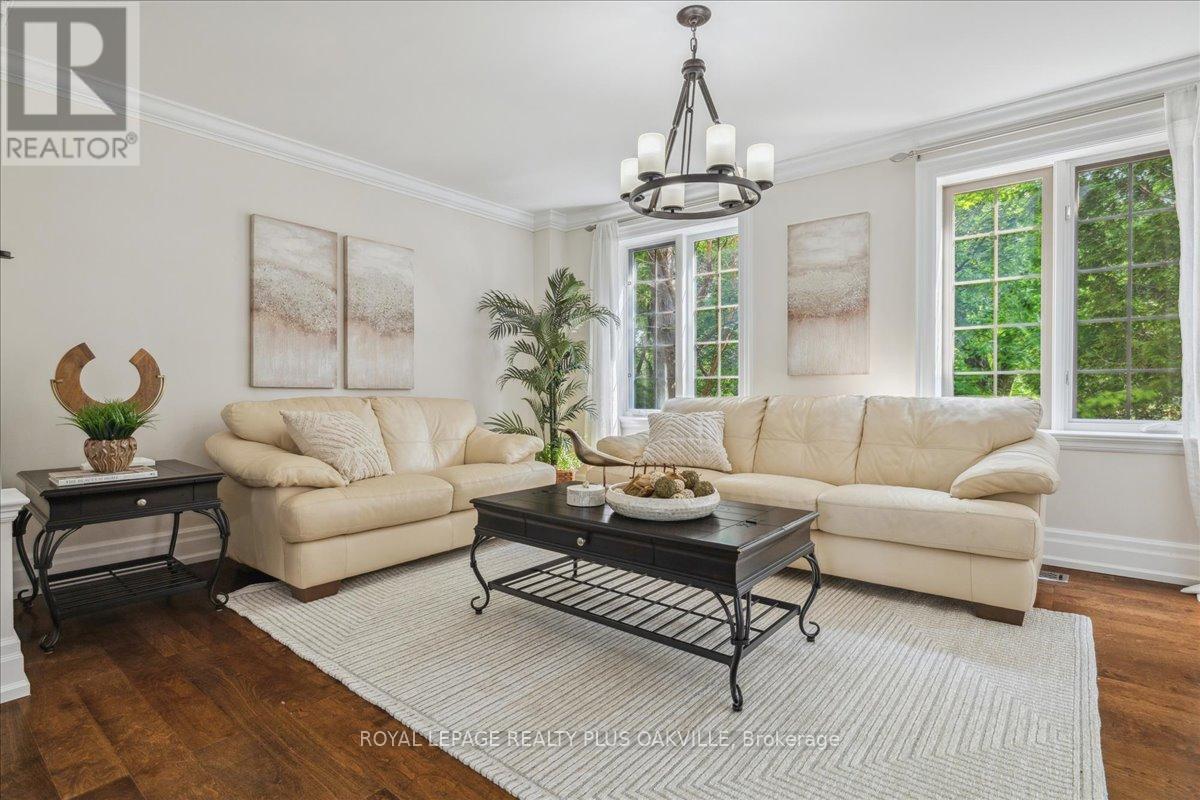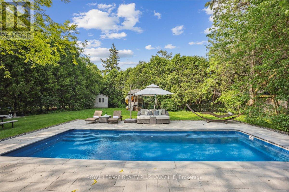 Architecturally designed and beautifully crafted 4-bedroom, 5-bath builders own custom home in South Burlington offering over 3,740 sqft of luxurious living space on the above ground levels. Nestled in a mature treed setting on a rare 86' x 193' deep lot, this stunning property features an 8-car driveway with hammerhead parking, 3-car garage (with roll-up rear door for backyard access), and exceptional curb appeal. Inside, enjoy hardwood flooring, crown mouldings, and elegant formal living/dining rooms. The open-concept gourmet kitchen boasts granite counters, a large island, stainless steel appliances, pot lights, bright skylights and timeless finishes. The spacious family room is enhanced by vaulted ceilings and a double-sided stone fireplace, perfect for cozy evenings. A rare find, the main floor office with separate entrance offers great flexibility for professionals or multi-generational living. Upstairs, the impressive primary suite features vaulted ceilings, double walk-in closets, a luxurious 5-pc ensuite, and peek-a-boo lake views. Additional bedrooms are generously sized, with ensuite access and skylights providing abundant natural light. The fully finished lower level adds even more living space for recreation or home theatre. Outside, the extra-deep private backyard is an entertainer's dream, featuring a resort-style setting complete with an in-ground salt-water pool, lush landscaping, custom stone gas fire pit with built-in seating, custom stone gas bbq island with granite counter, and multiple seating areas, with separate access through a backyard mudroom with shower. With almost 5000 sqft of living space, there is plenty of room to enjoy this magnificent property! Located just minutes to downtown Burlington, waterfront, beaches, Burlington Golf & Country Club, LaSalle Park Marina, top-rated schools, hospital, parks, and highway access. A rare opportunity to own lakeside luxury in one of Burlington's most sought-after locations. (id:64974)