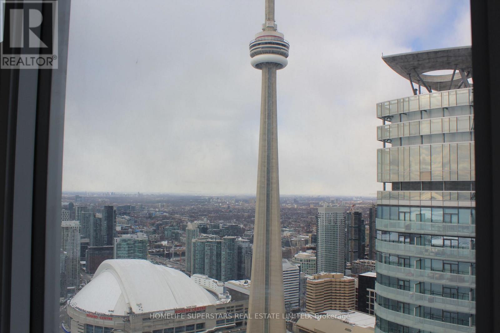 Tridel Signature Series, Best Location, Steps From Union Station, Subway, Scotiabank Arena, Shopping, Grocery, Harbourfront++, 24 Hr Concierge. Keyless Building. Spa, Huge Gym, Guest Suites, Theatre, Party Rm, Billiards Rm, Outdoor Pool, Steam Room, Sauna. Laminate Throughout, Upgraded Kitchen, Upgraded Washroom And Much More....Rogers Lte Speed Internet Included In Rent, Unobstructed Complete Cn Tower View From Living & Bedroom. Spacious 1 bedroom , high ceiling, beautiful condo with breath taking views (id:64974)