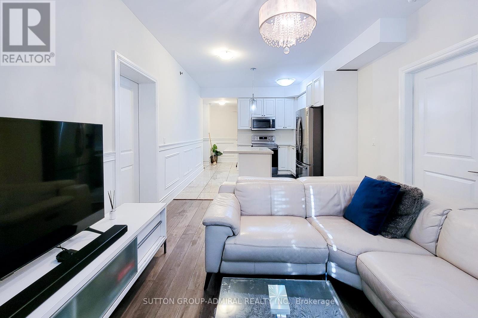 Luxurious End-Unit suite in the prestigious Mint Condos. This stunning Spacious 900+ Sq Ft unit is fully upgraded with high end finishes incl. Neutral Newly Fresh Unique Paint, Stylish Fixtures, Spacious Cabinet laminate floors through out, quartz countertops, breakfast bar, upgraded baths & efficient Geothermal heating. Large windows let in the natural light.The primary suite boasts a spa like en-suite feat. double length one of a kind Bathroom and huge W/l closet. Relax on your large balcony at the end of the day, or the rooftop terrace! Enjoy the convenience of same floor huge Locker, 2 # Parking, Very rare in this area without premium Costs Other amenities incl. gym, party room, bike storage and lots of visitor parking. Located close to excellent schools, parks, shopping, GO, major highways make this the perfect place to call home, or to invest in. (id:64974)